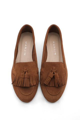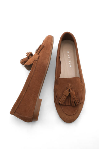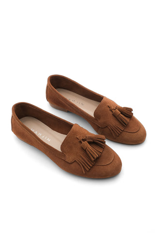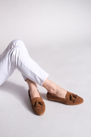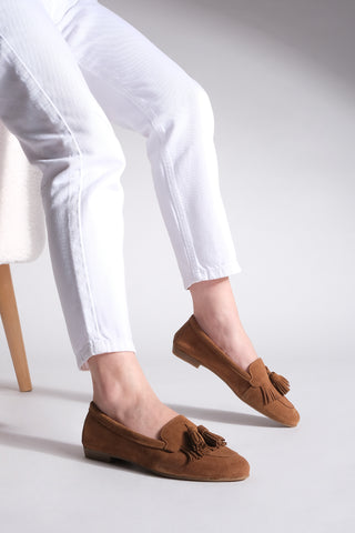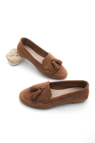 Kadın Hakiki Deri Püsküllü Loafer Günlük Ayakkabı Deviz - Taba