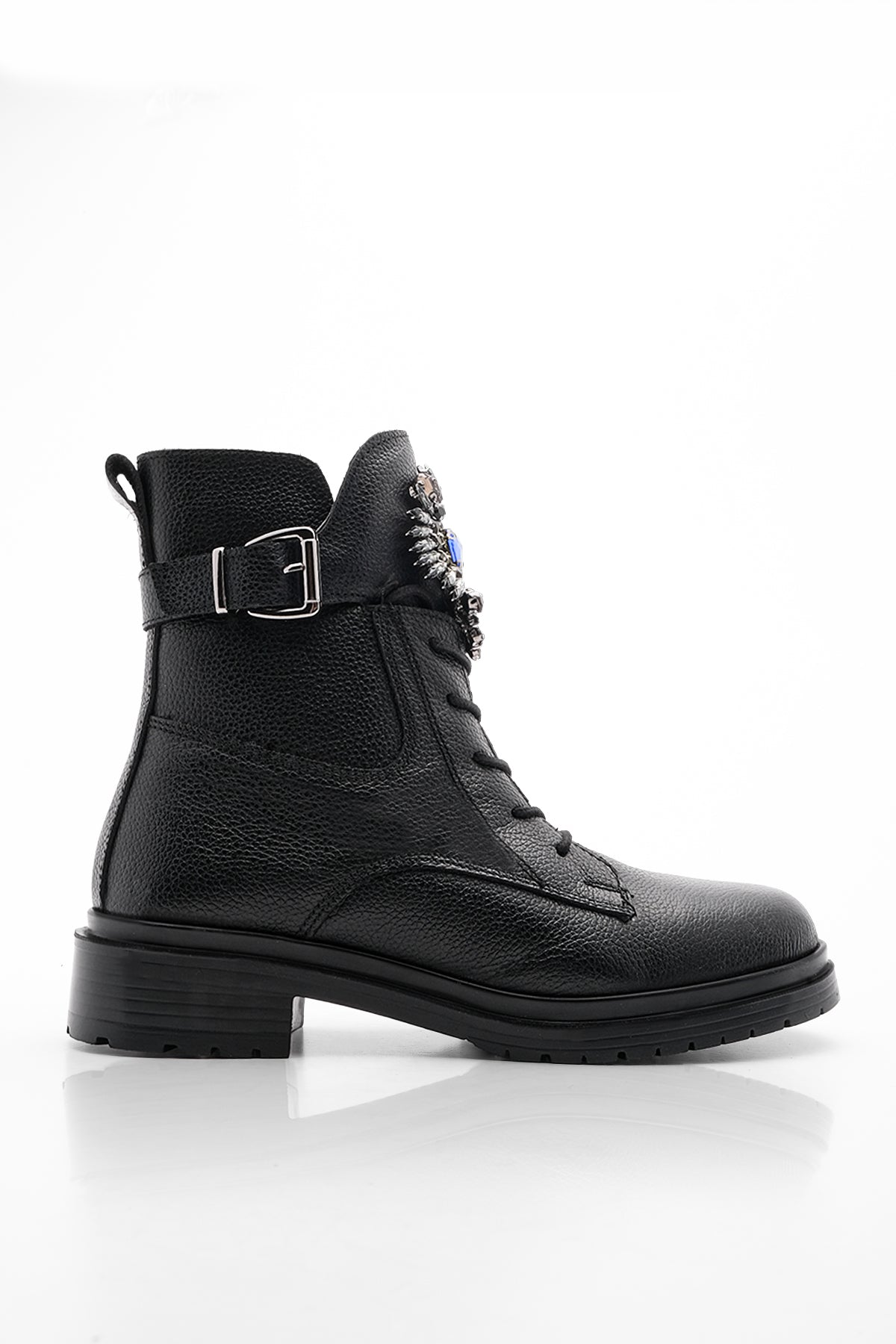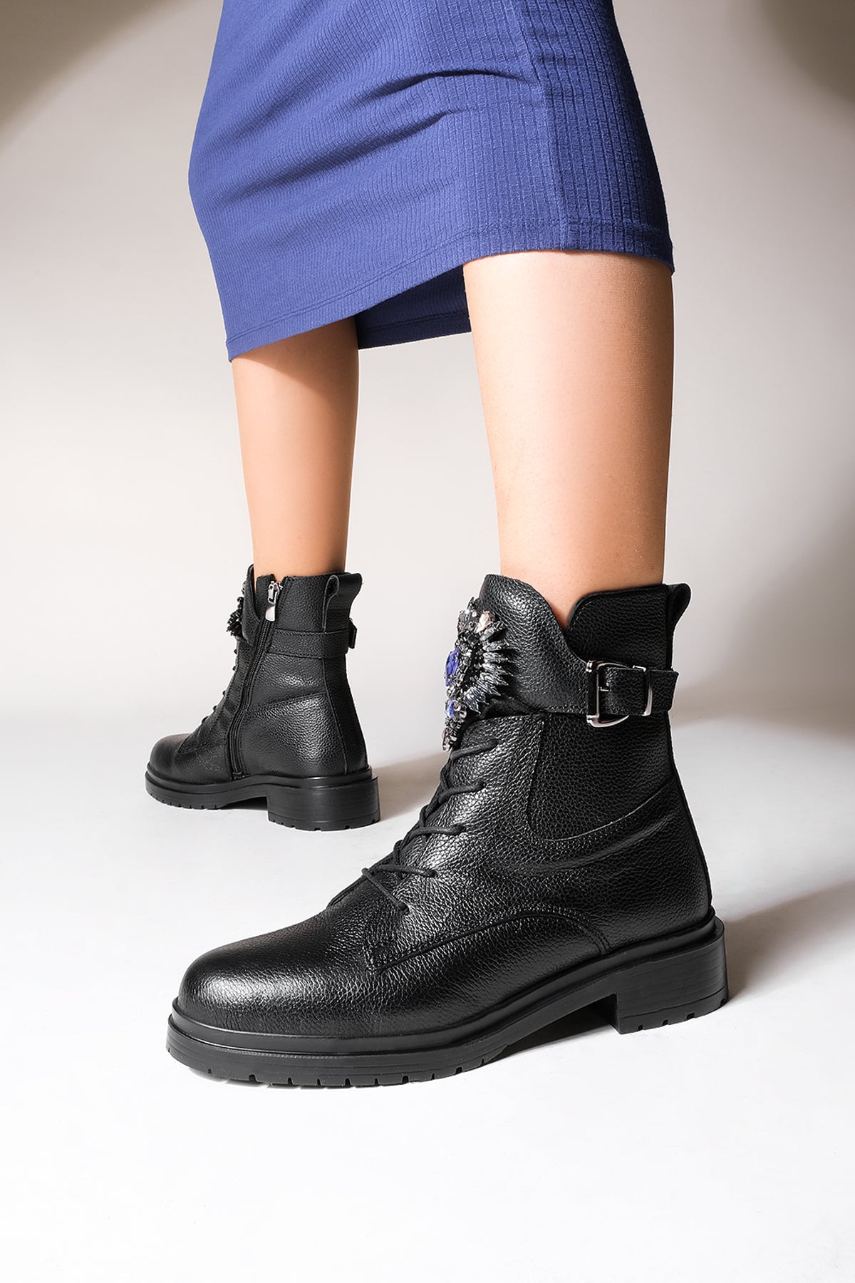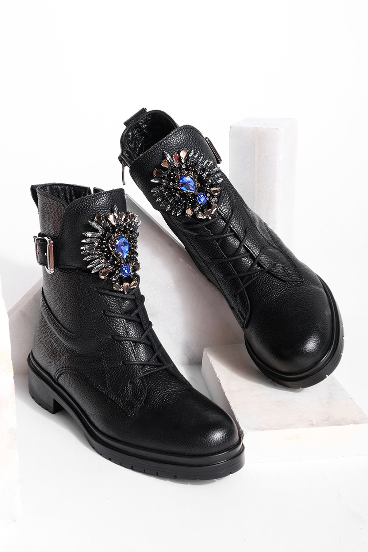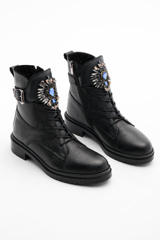 Kadın Hakiki Deri Taşlı Postal Bot Albinas - Siyah