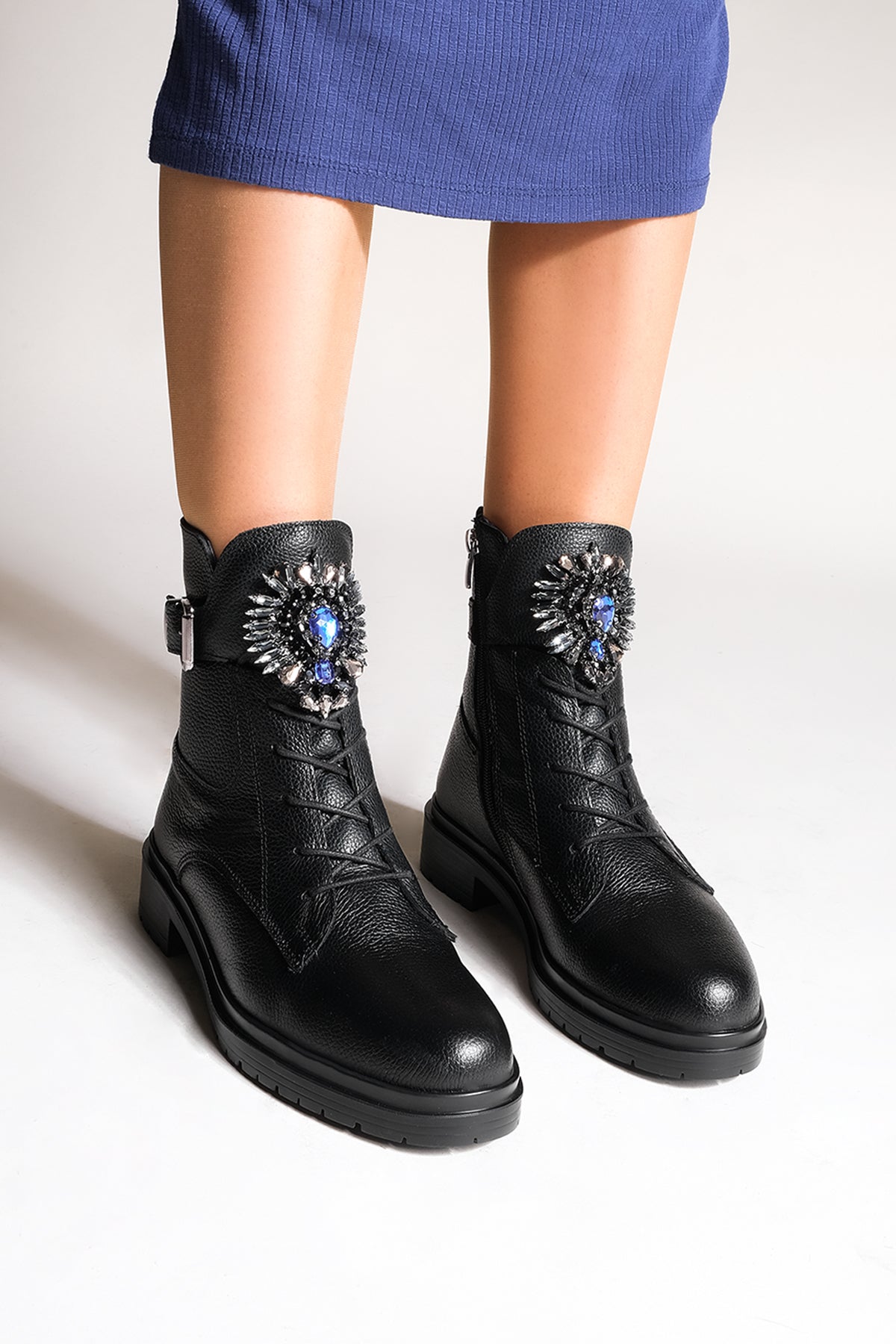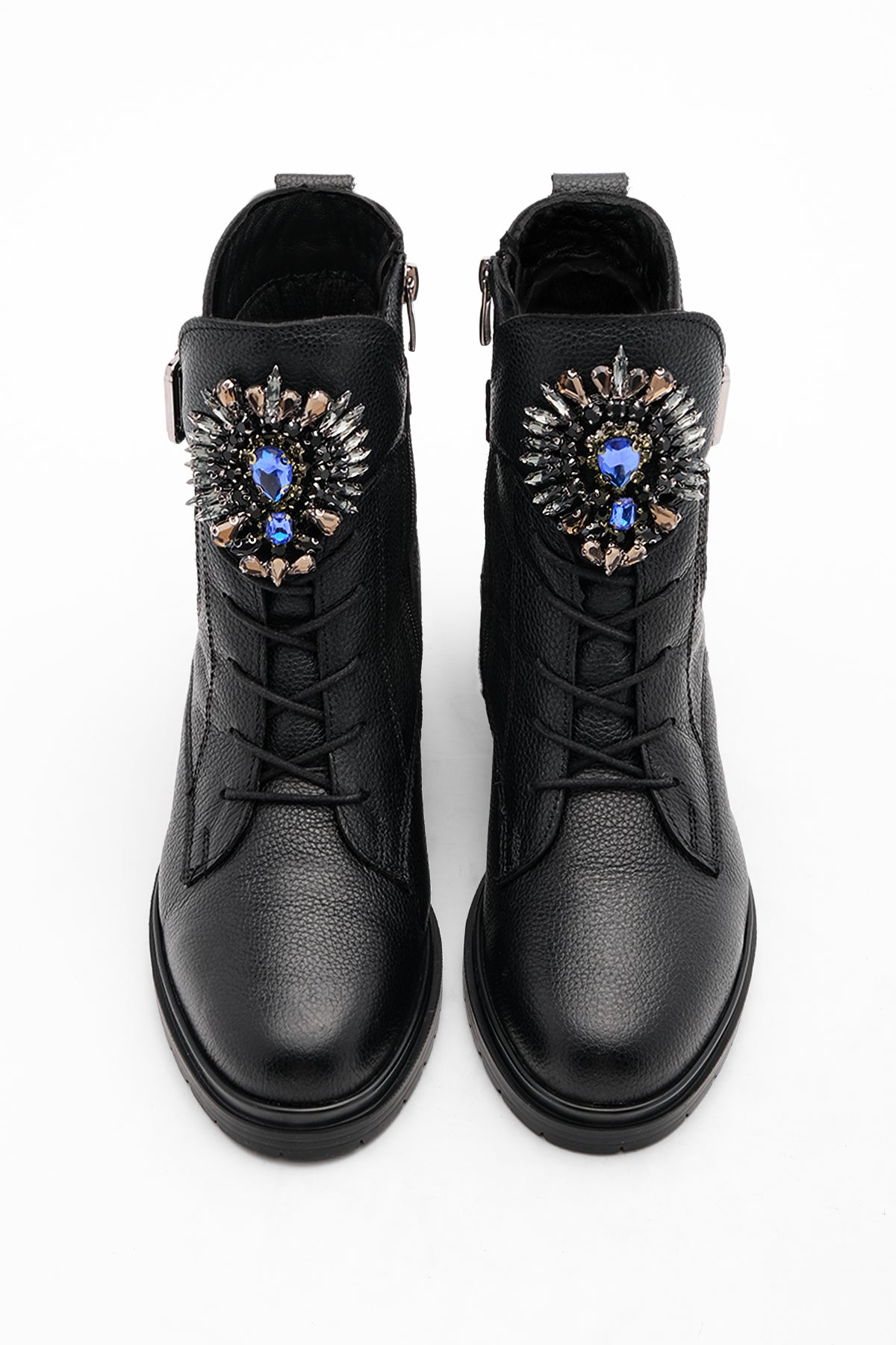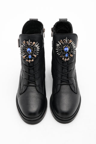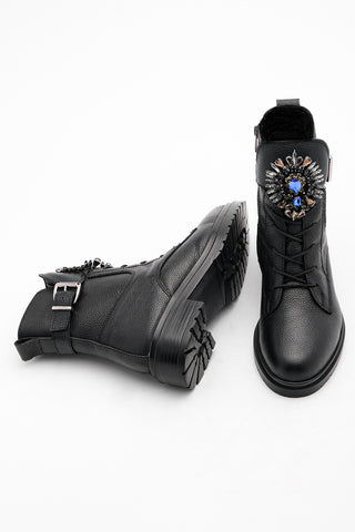 Kadın Hakiki Deri Taşlı Postal Bot Albinas - Siyah