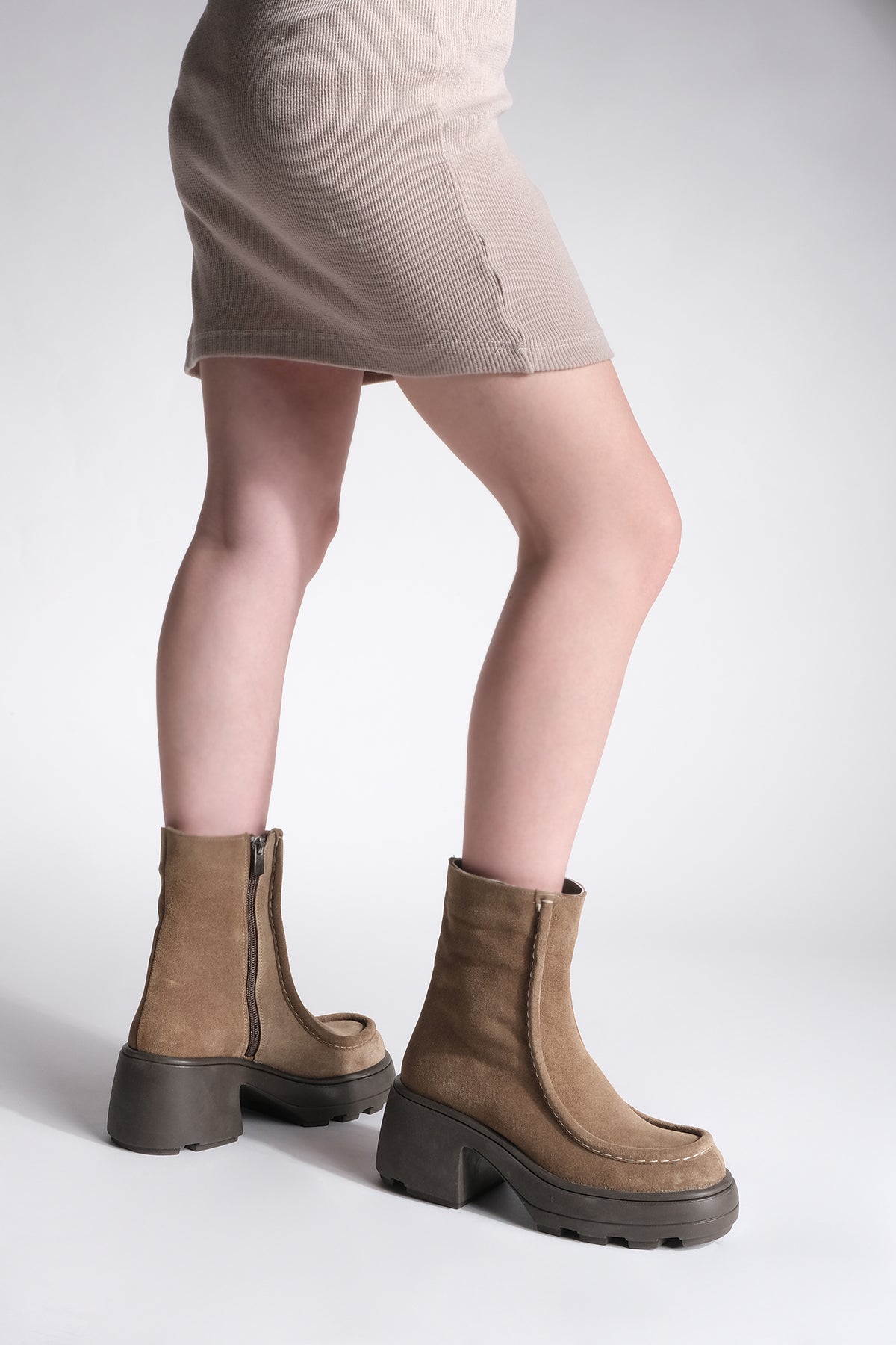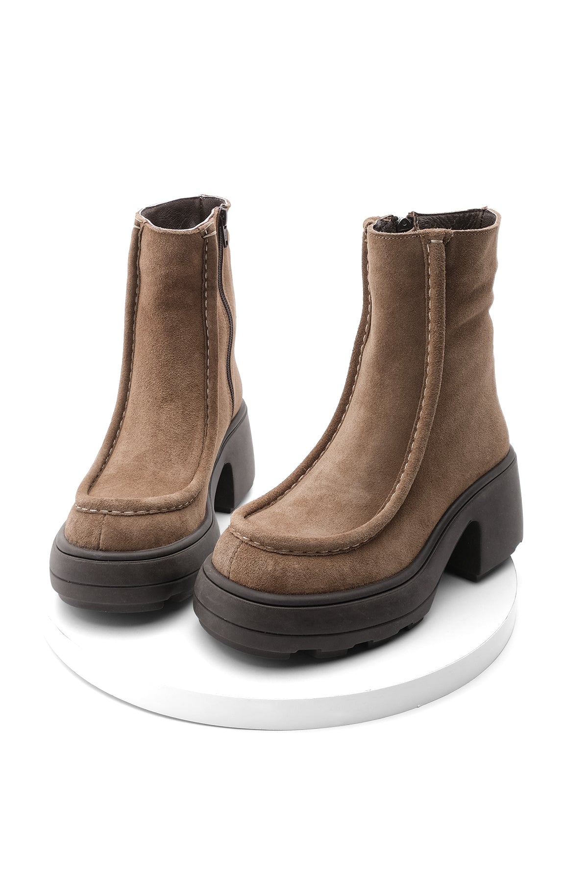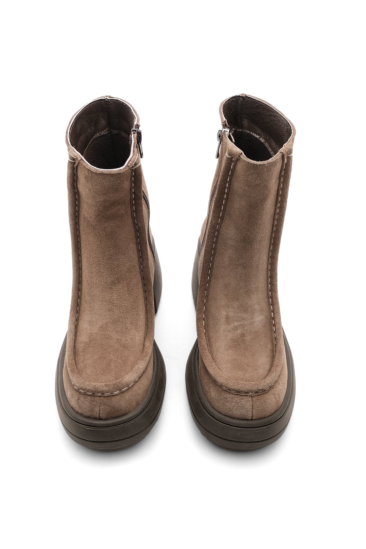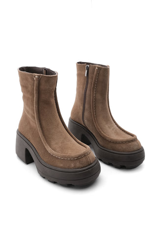 Kadın Küt Burun Topuklu Bot Sivet - Taba Süet