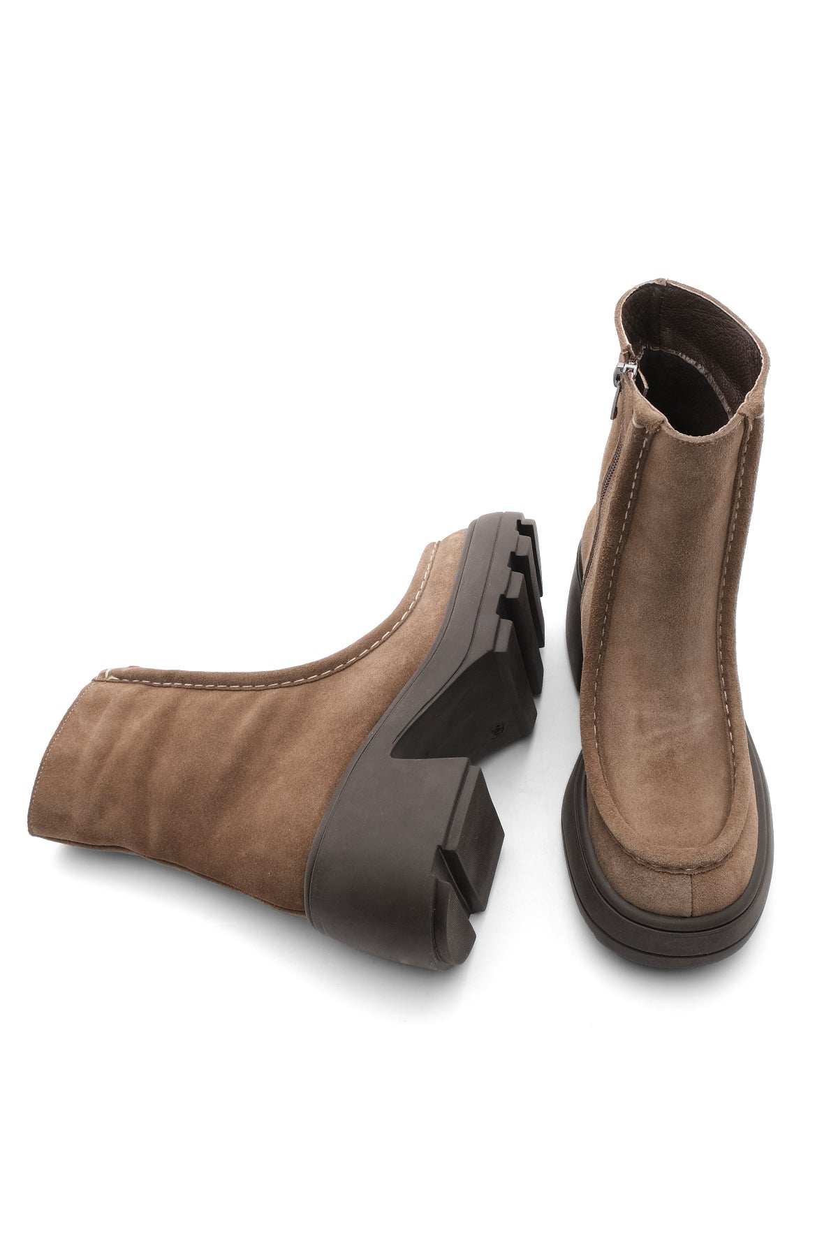 Kadın Hakiki Deri Topuklu Bot Bevaz - Taba Süet