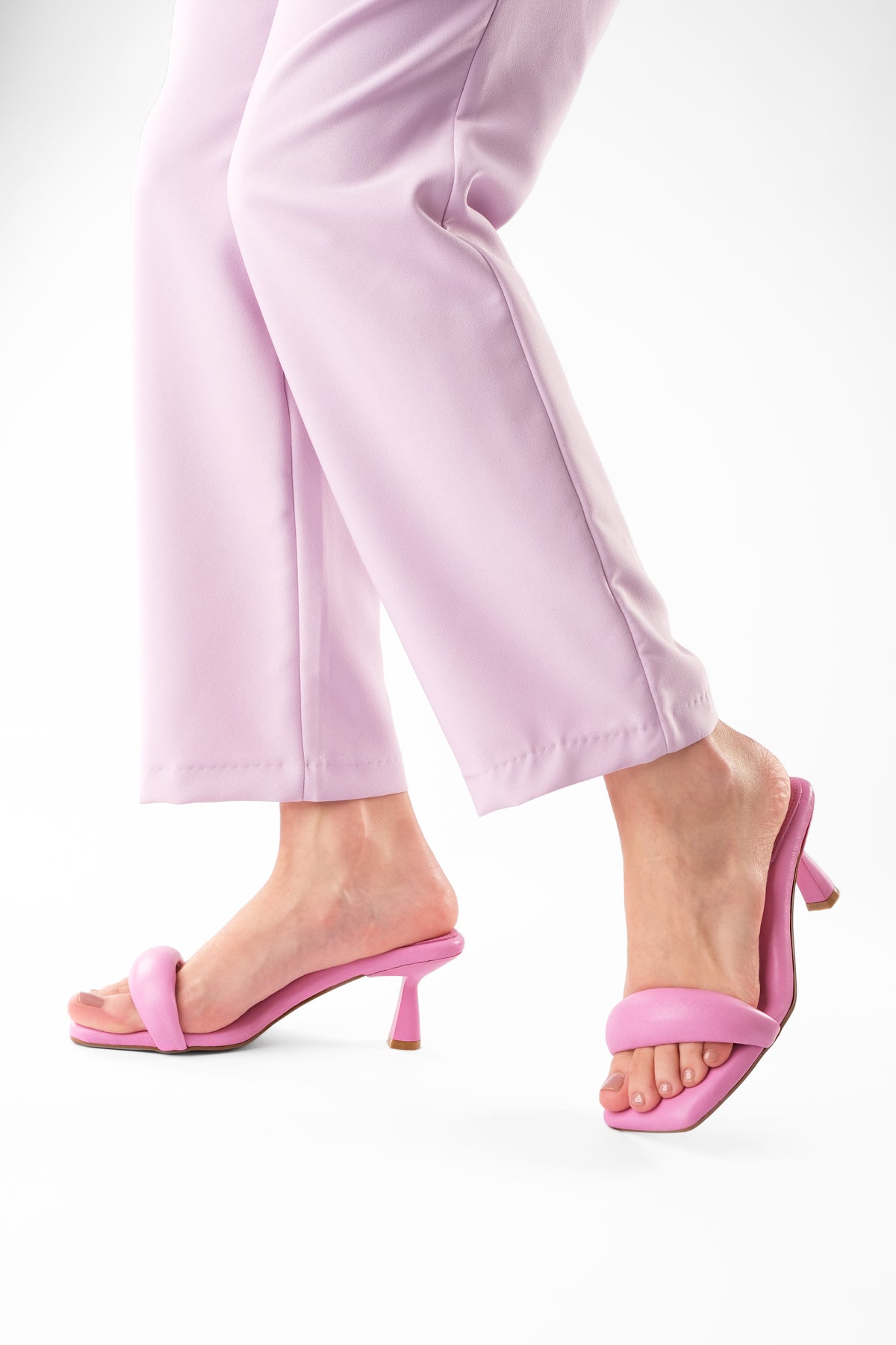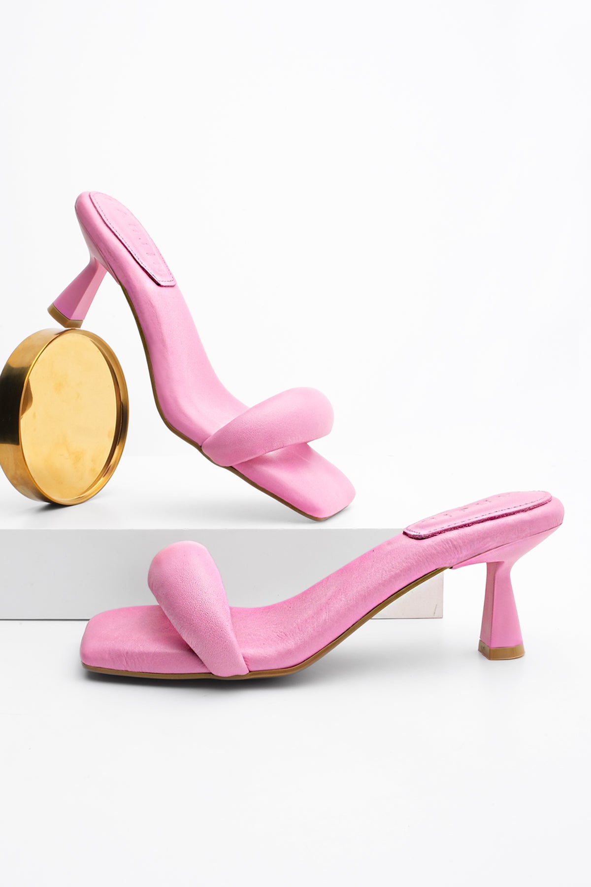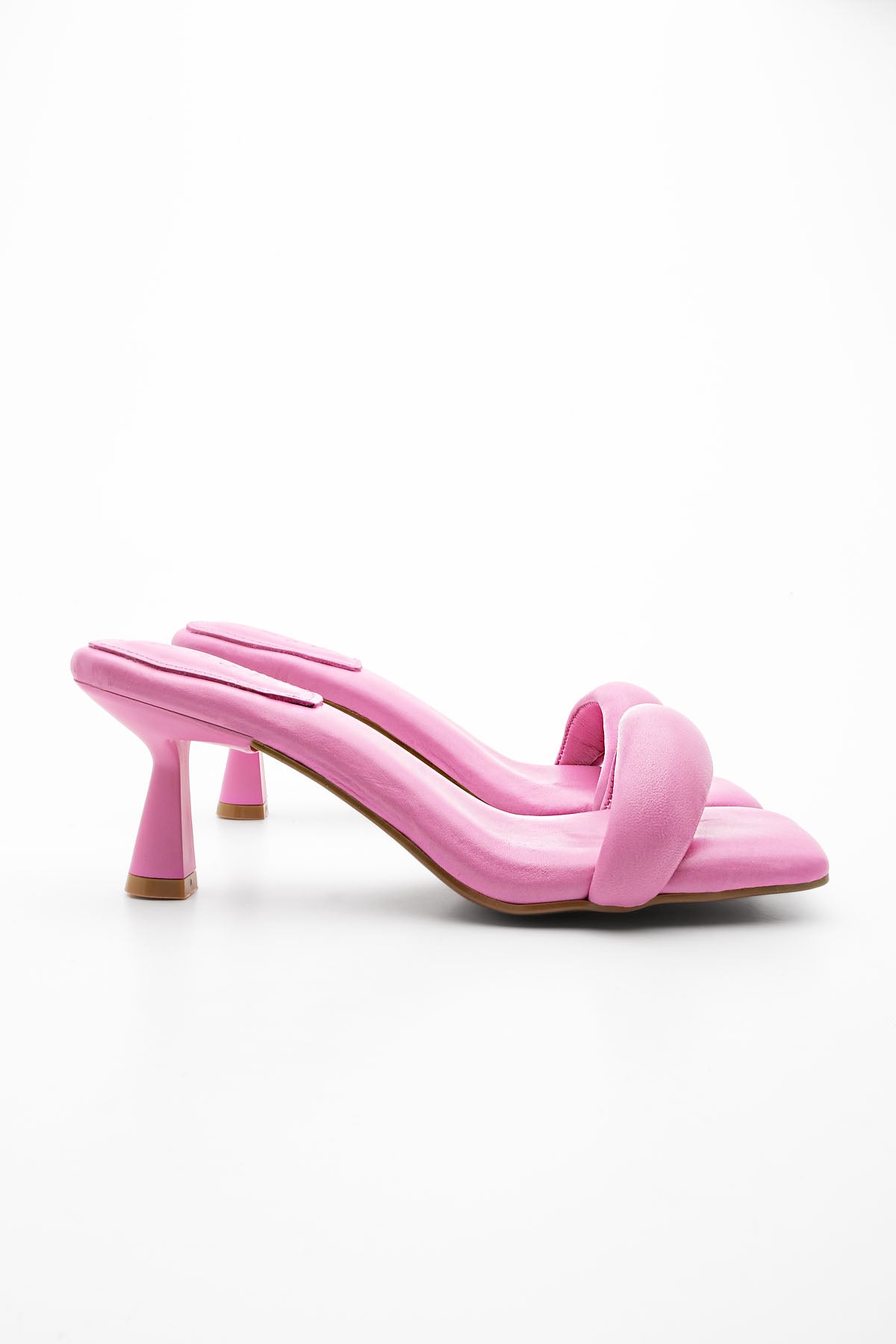 Kadın Hakiki Deri Topuklu Terlik Memory Hafıza Taban Ponez - Pembe