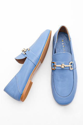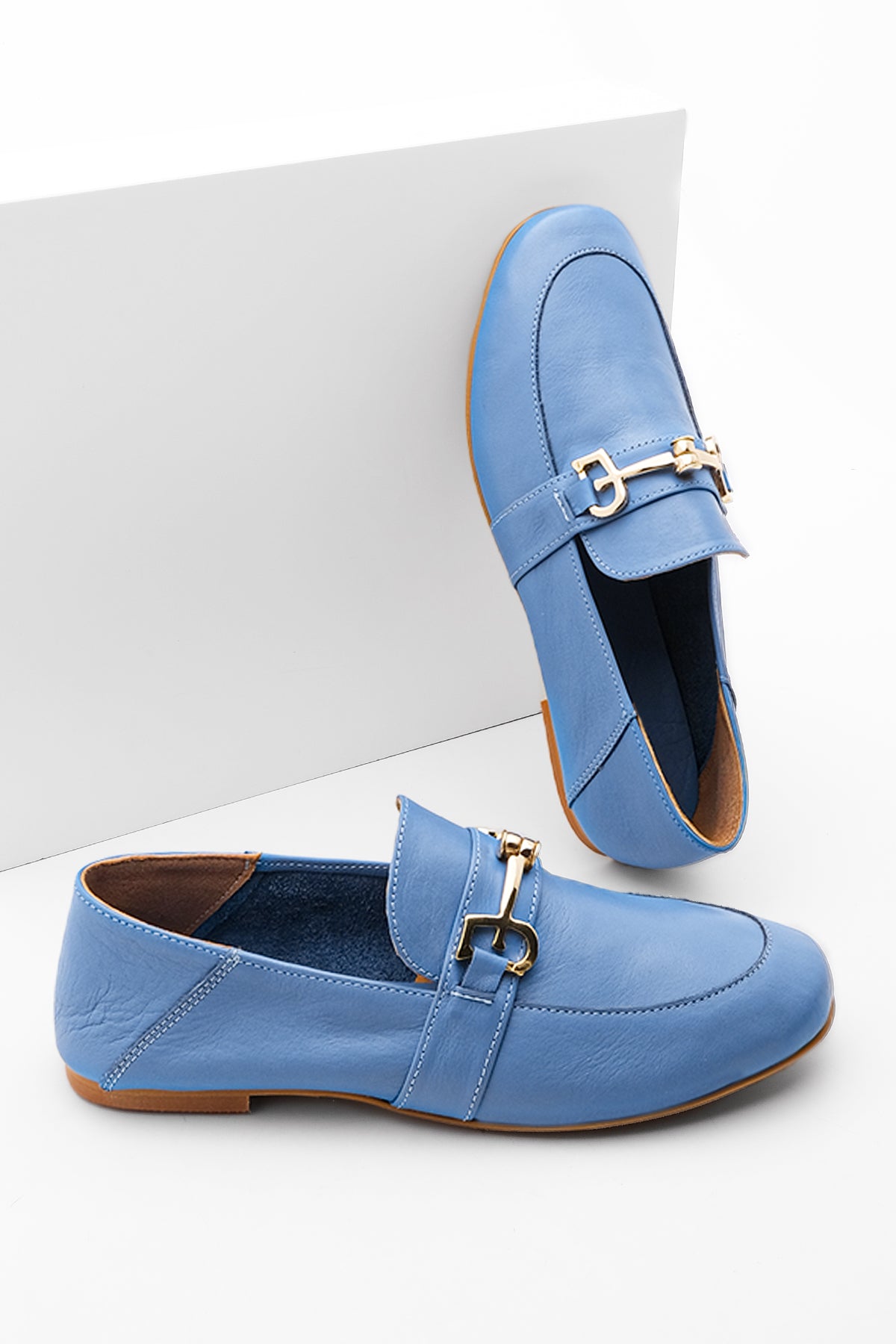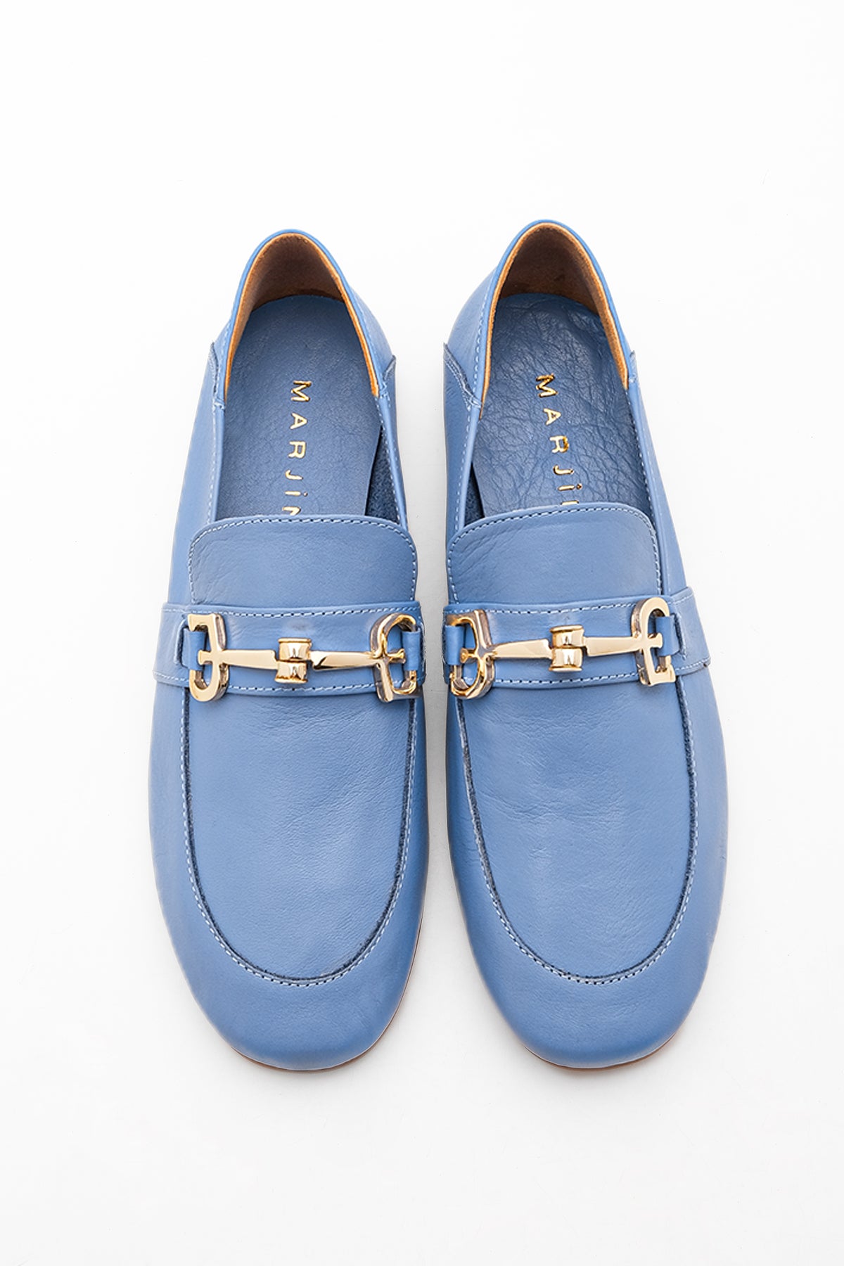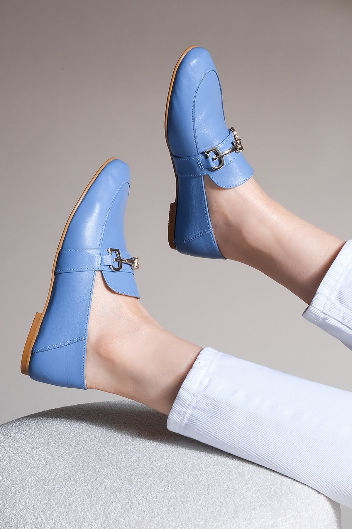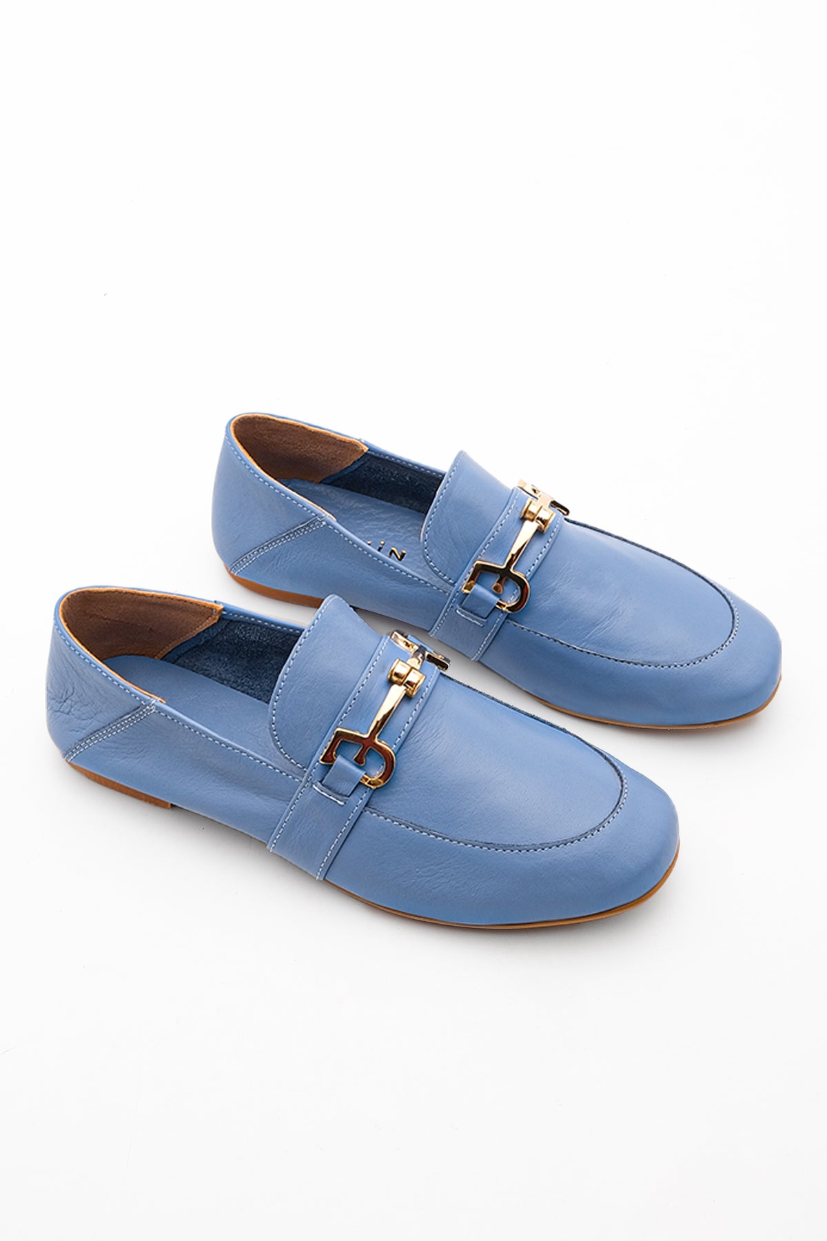 Kadın Hakiki Deri Zincirli Loafer Ayakkabı Tabıl - Mavi