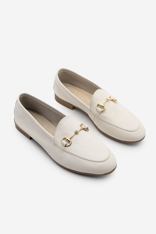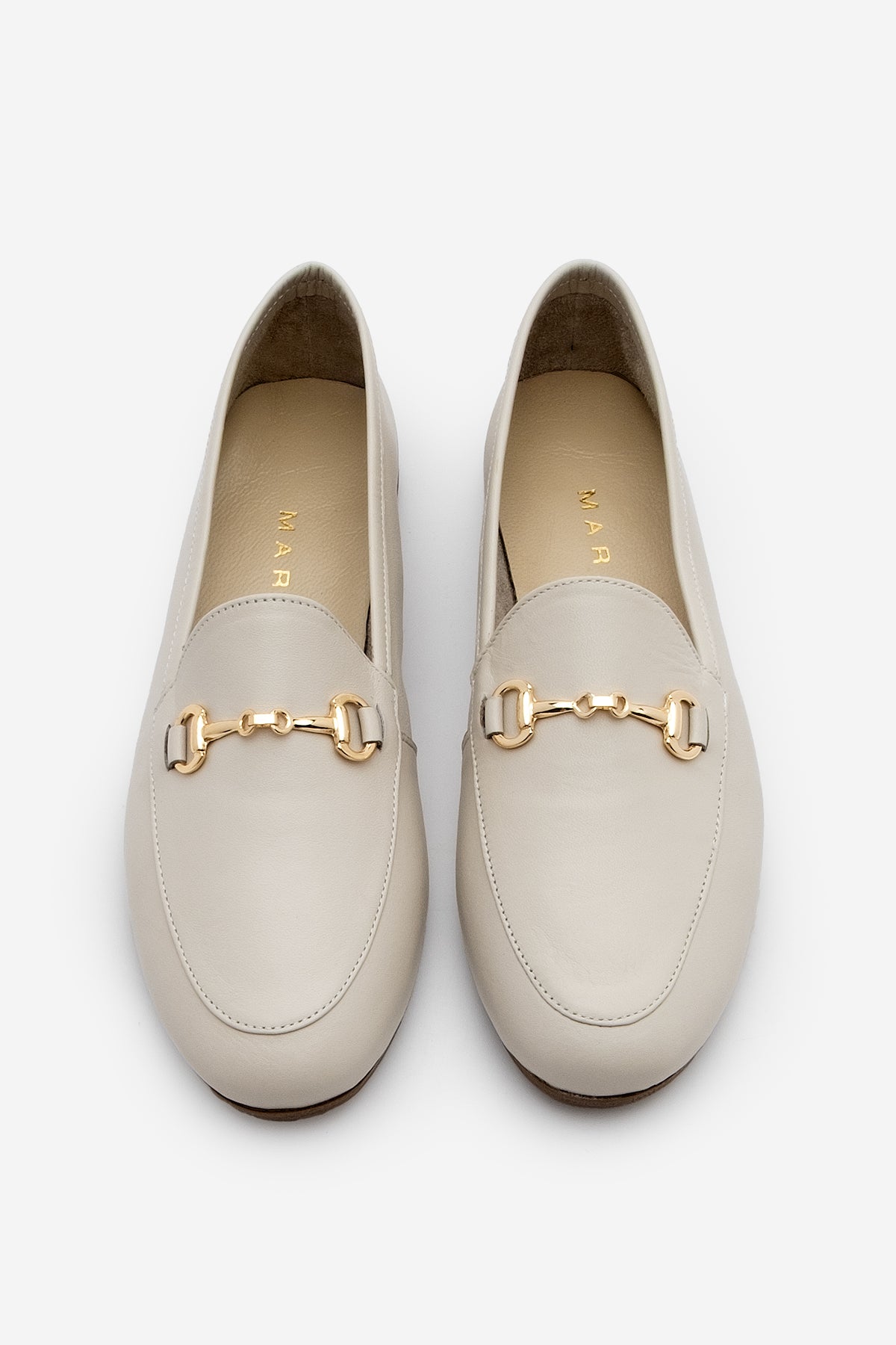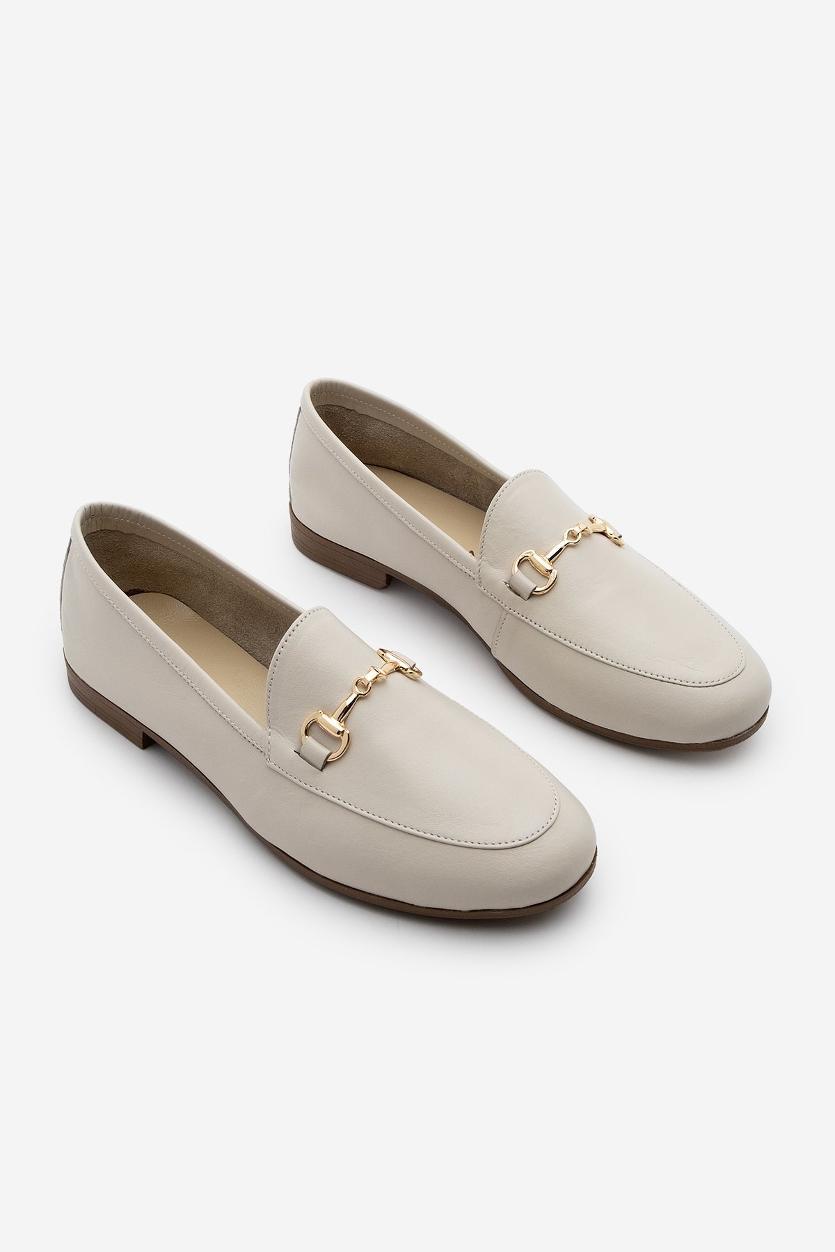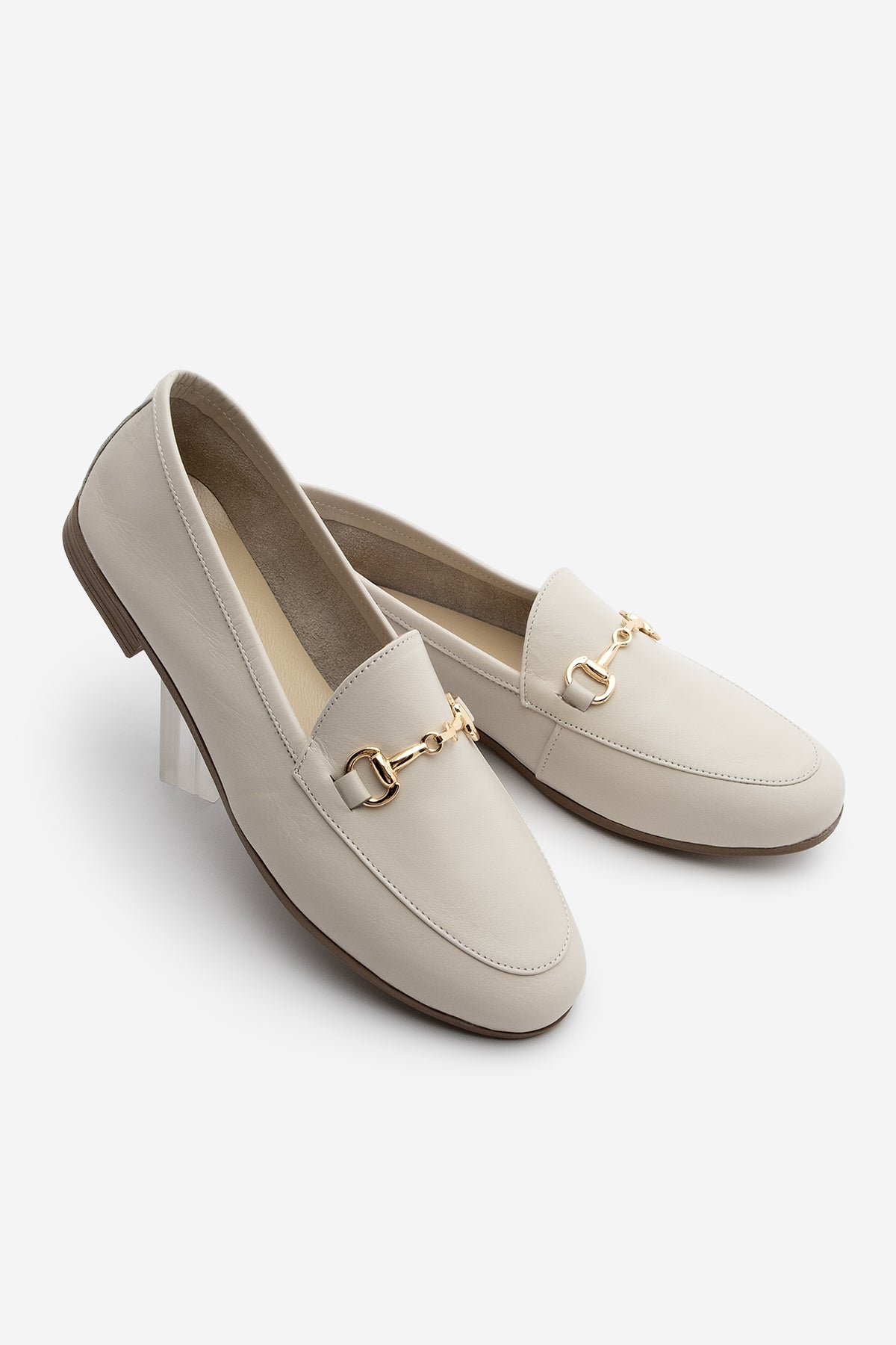 Kadın Hakiki Deri Zincirli Loafer Ayakkabı Tanle - Bej