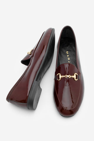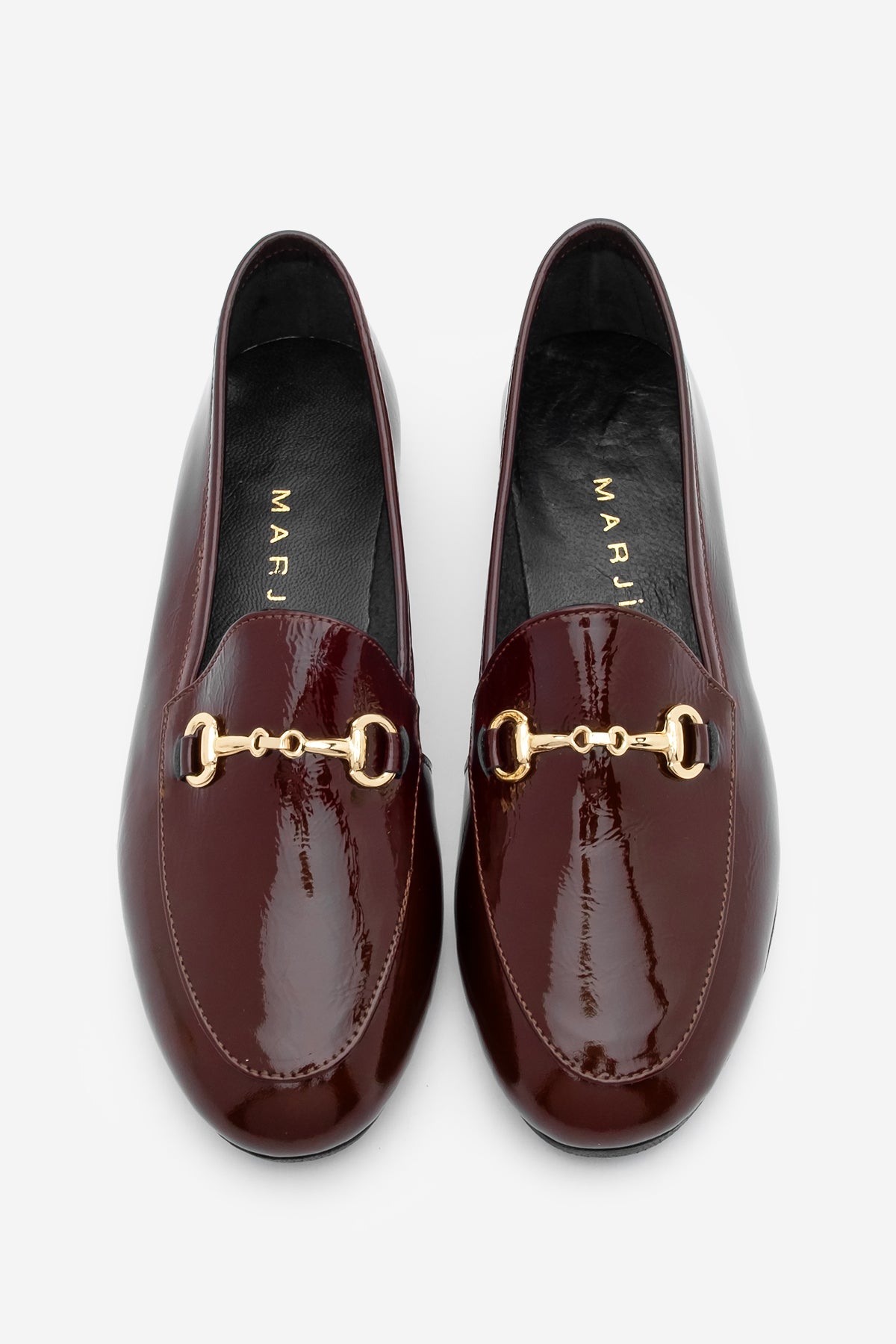 Kadın Hakiki Deri Zincirli Loafer Ayakkabı Tanle - Bordo Rugan