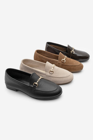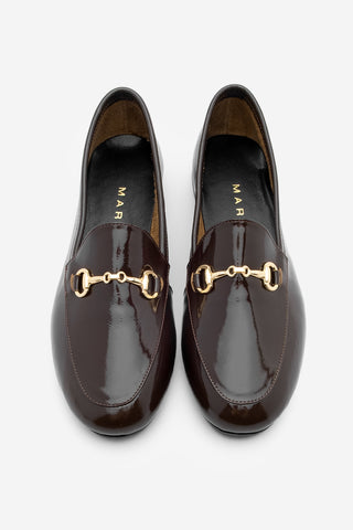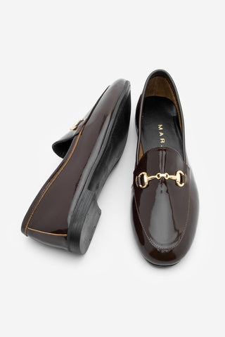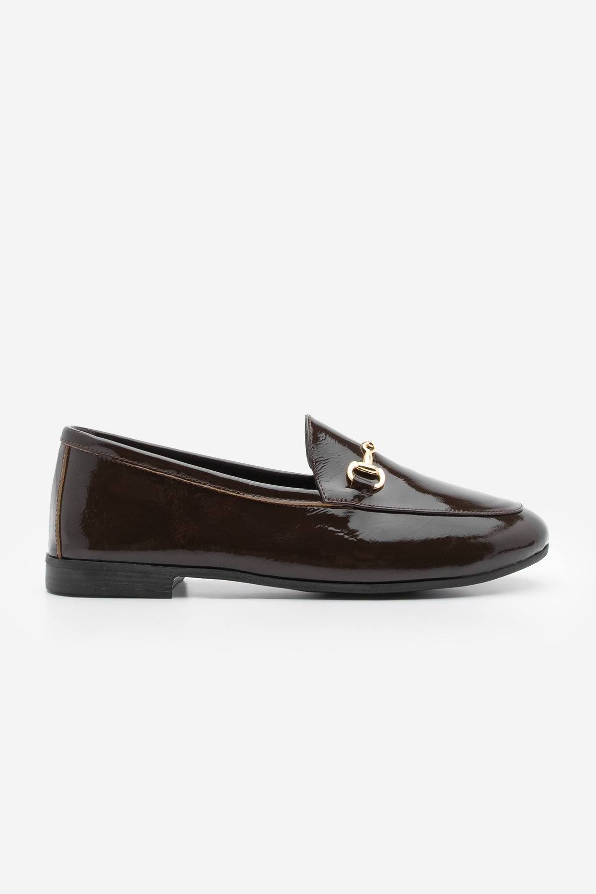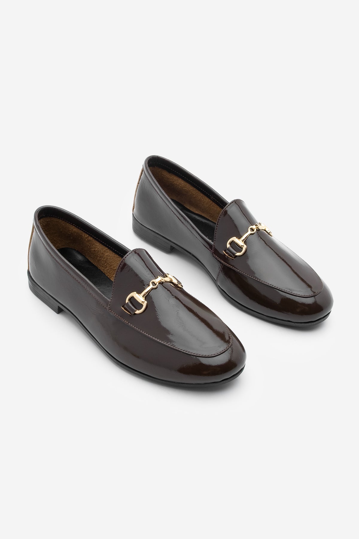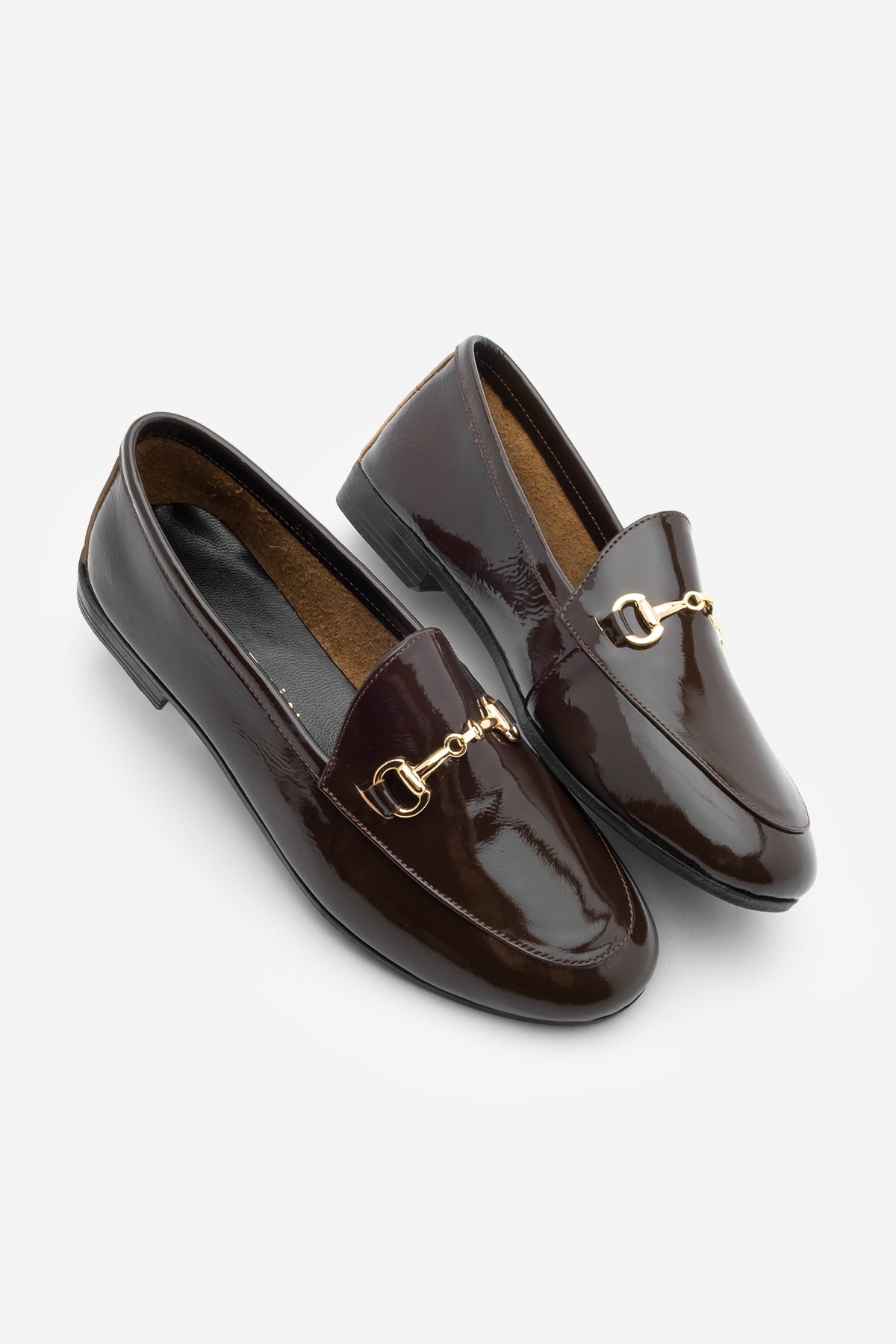 Kadın Hakiki Deri Zincirli Loafer Ayakkabı Tanle - Kahve Rugan