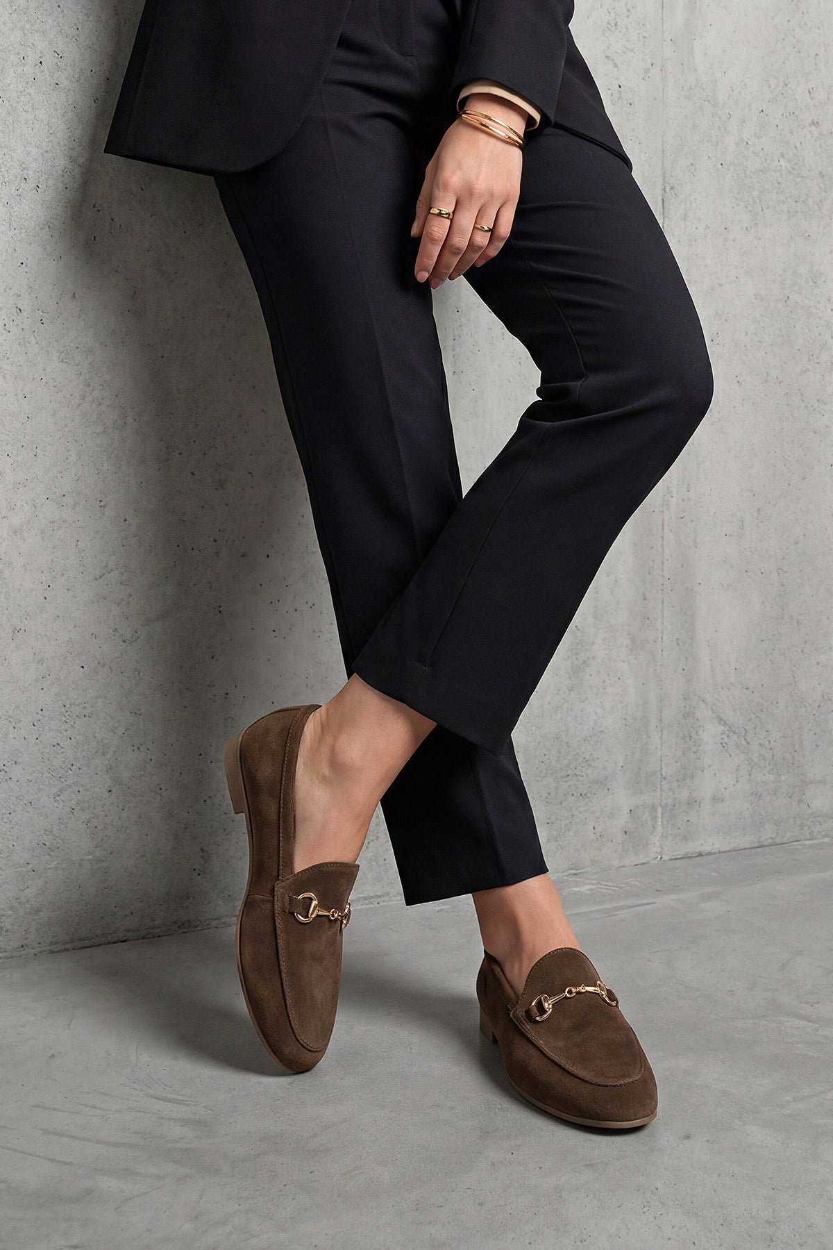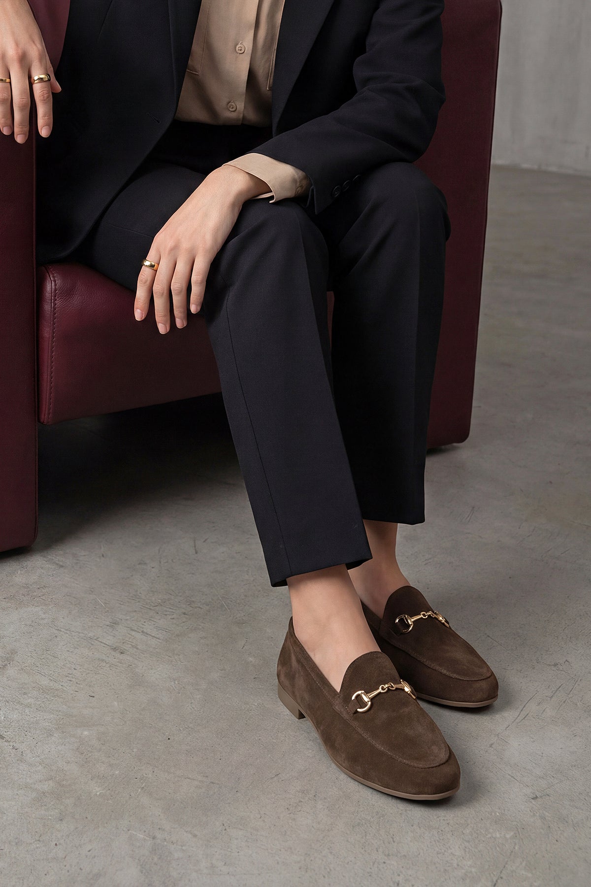 Kadın Hakiki Deri Zincirli Loafer Ayakkabı Tanle - Kahve Süet