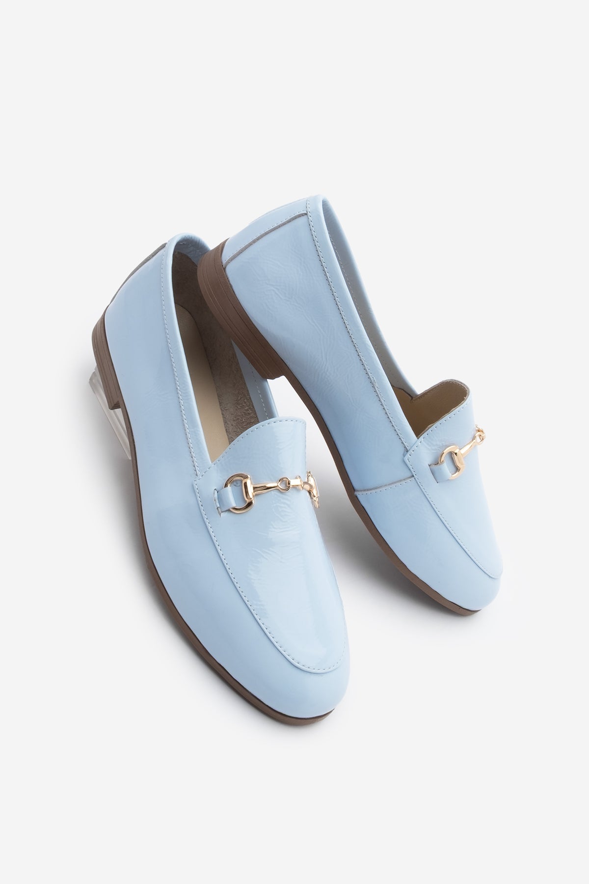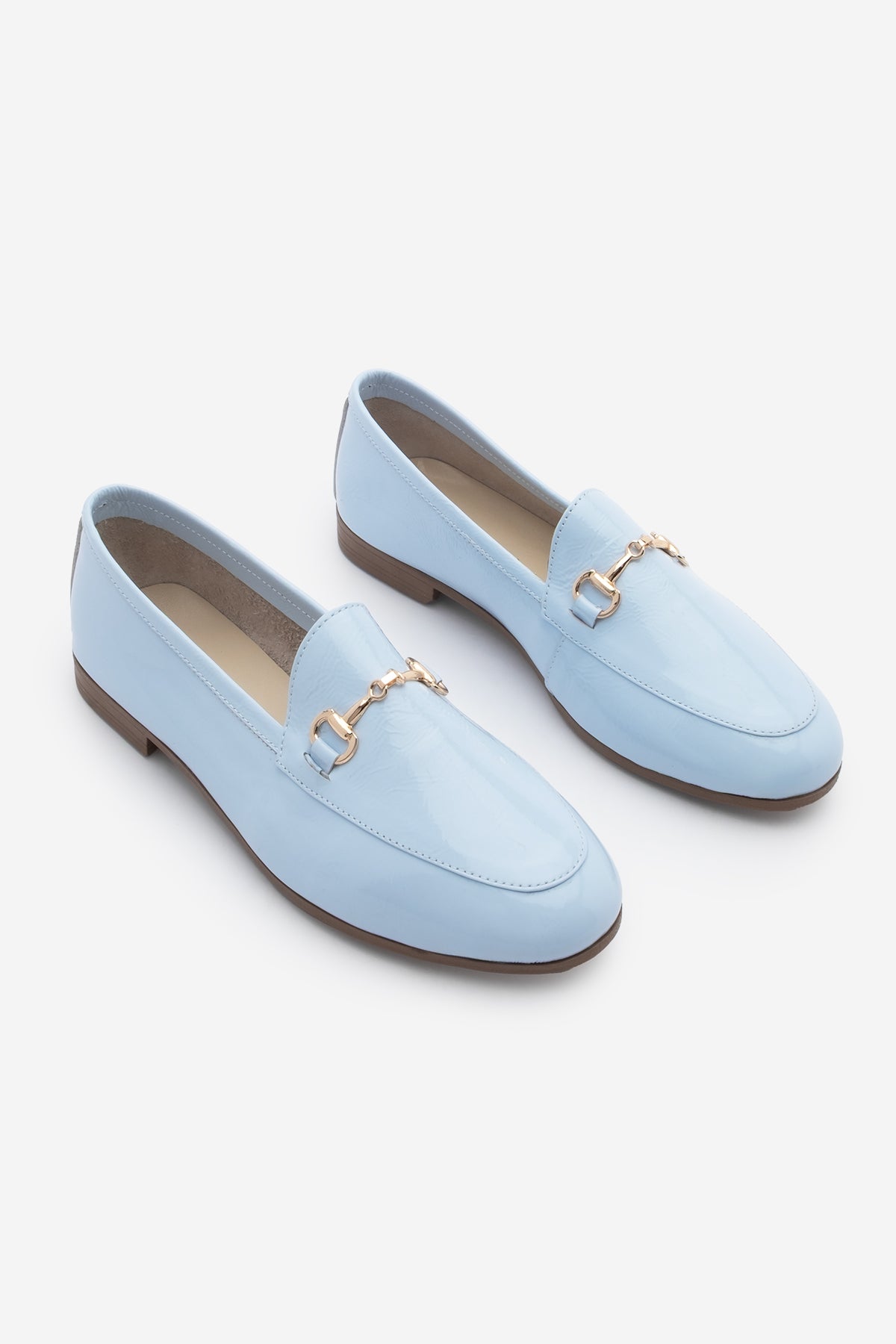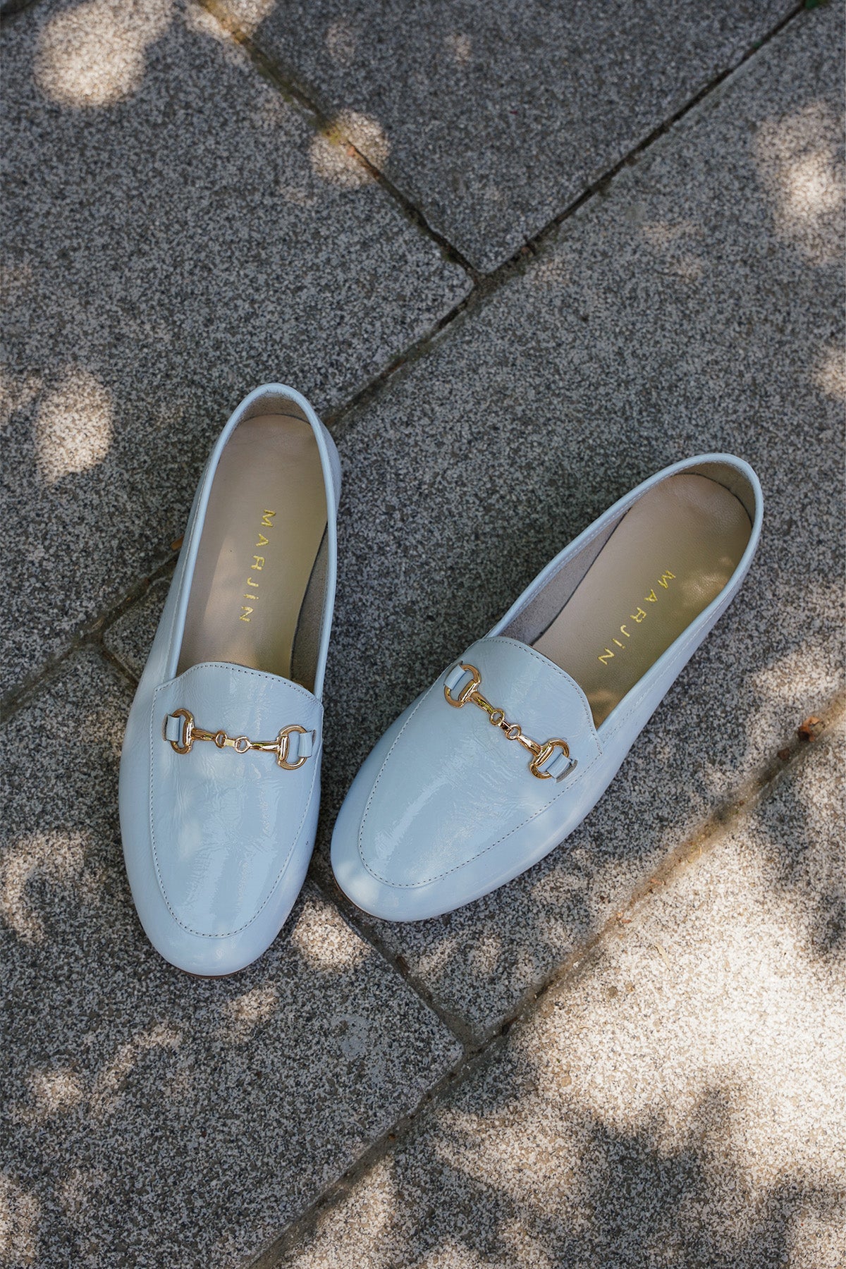 Kadın Hakiki Deri Zincirli Loafer Ayakkabı Tanle - Mavi Rugan