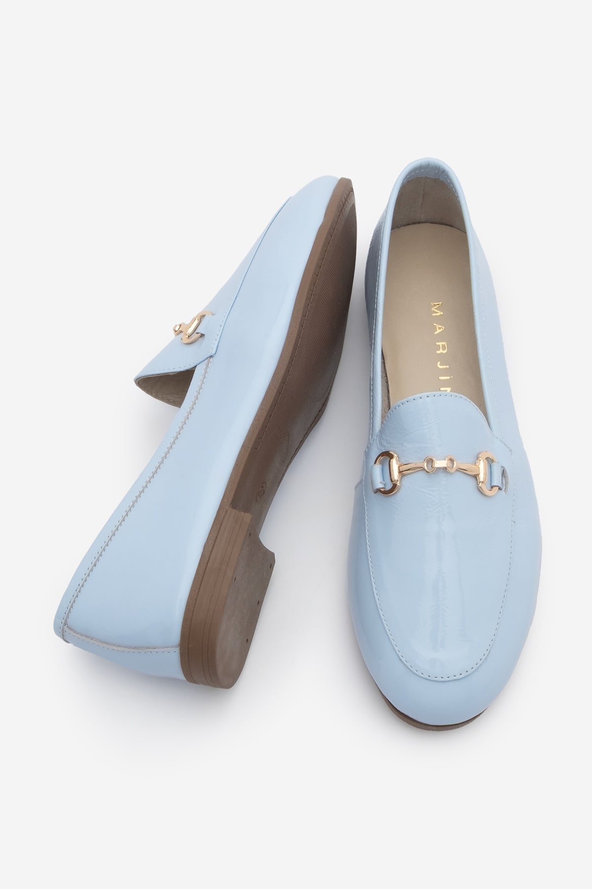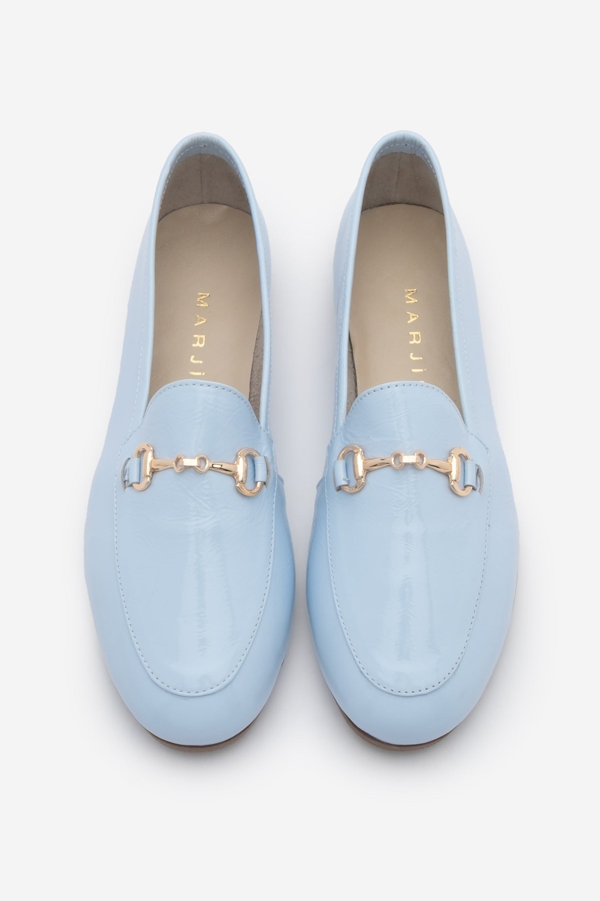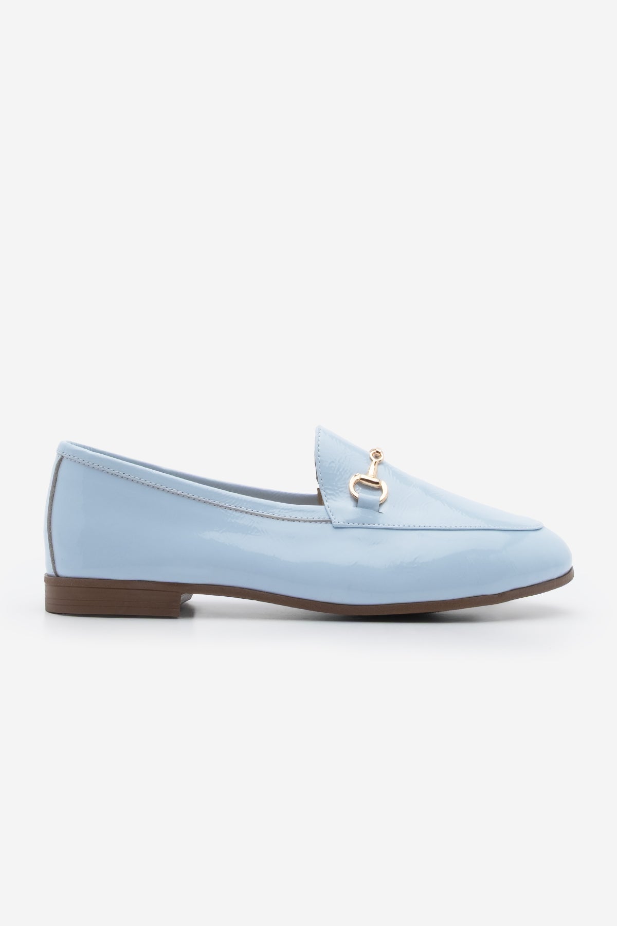 Kadın Hakiki Deri Zincirli Loafer Ayakkabı Tanle - Mavi Rugan