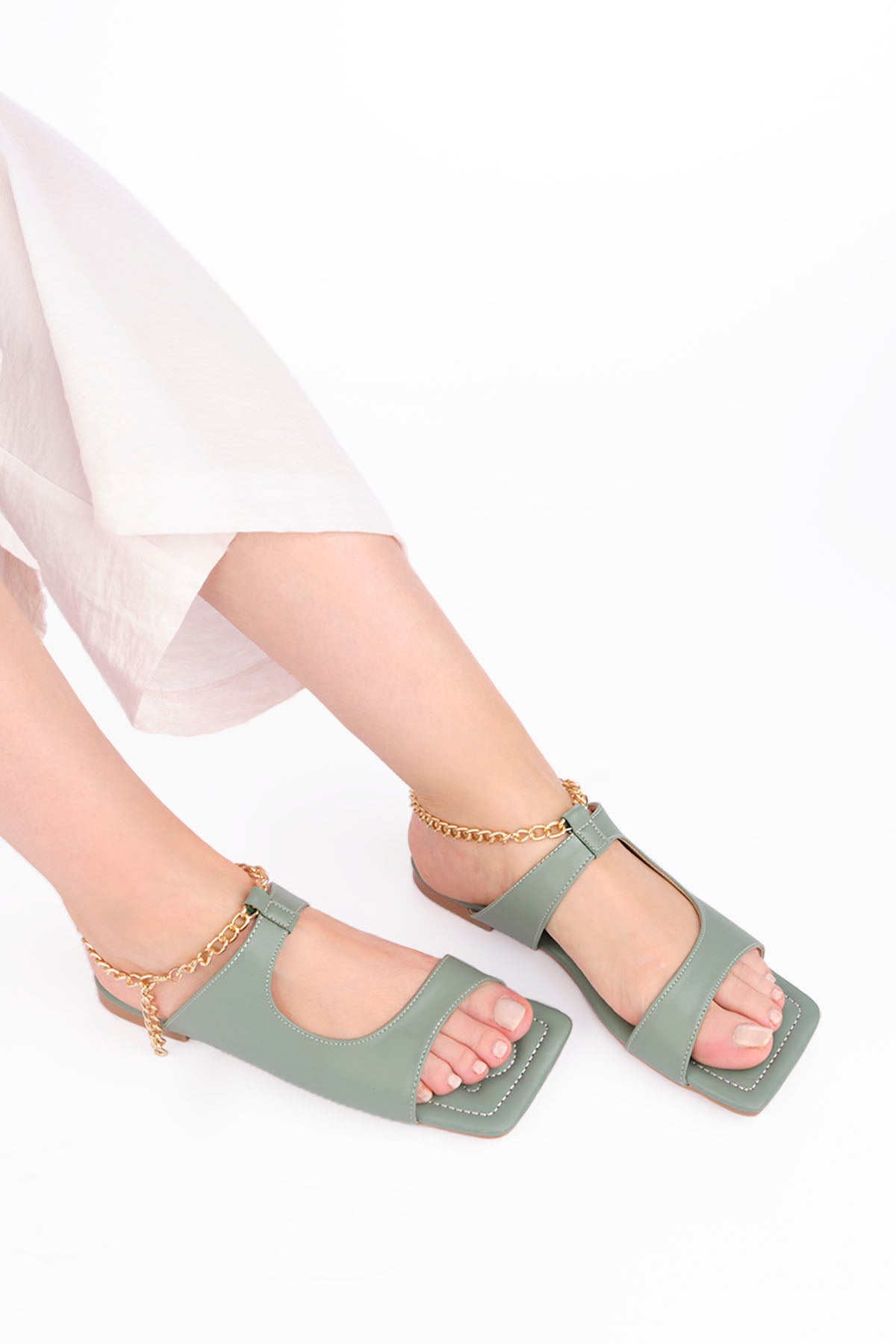 - Kadın Sandalet Yatira Dekolteli bantlarına halhal illüzyonu yaratan altın renkli zincirin eşlik etmesiyle yeni sezonun en ikonik modellerinden olan bu sandalet sokak modasına, ofis şıklığınıza, özel günlerinize yepyeni bir soluk getirecek. Siyah, bej ve yeşil renkleri ile stoklarda yer alan bu sandalete online alışverişlerinize özel indirim fırsatlarından yararlanarak hemen sahip olabilirsiniz.