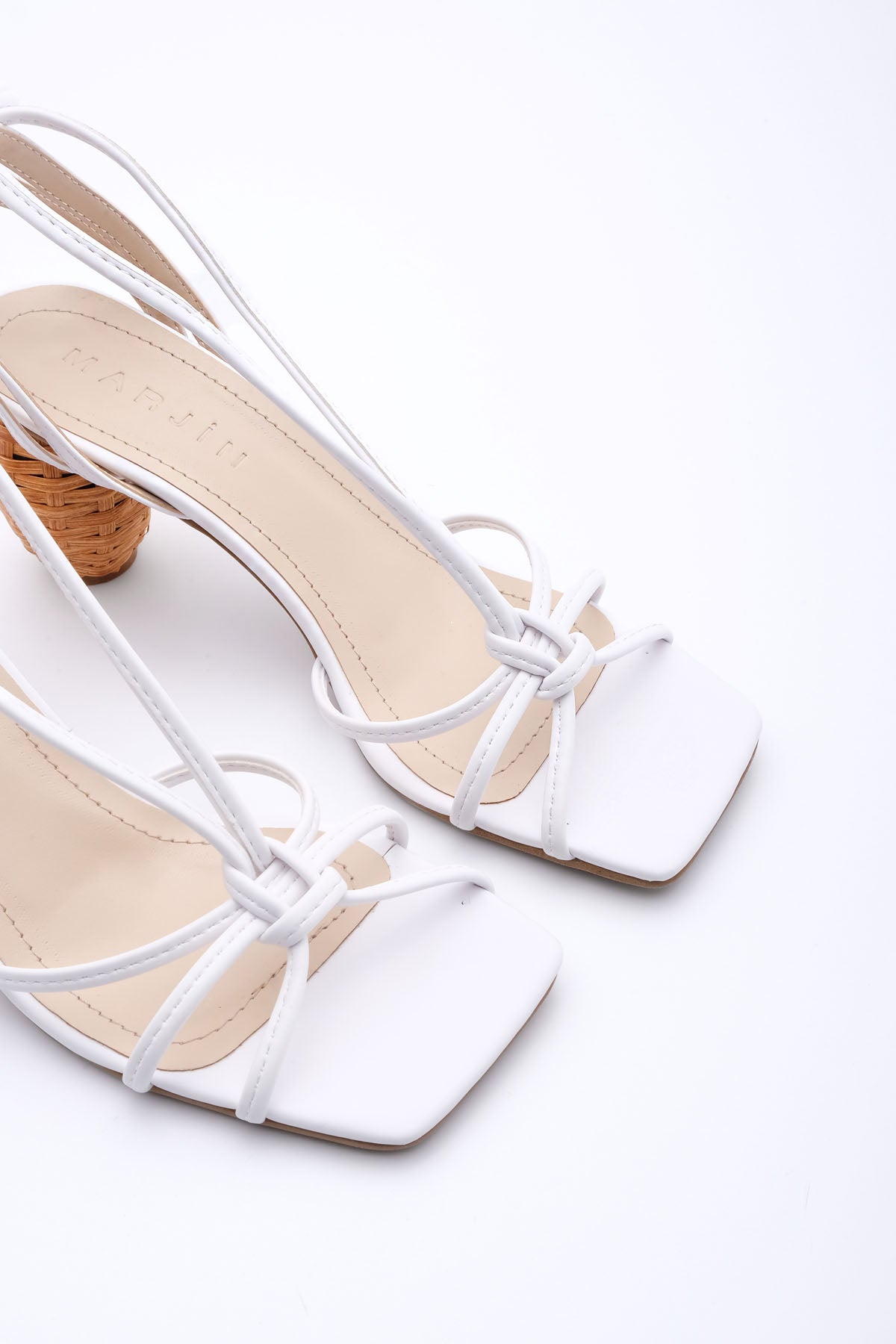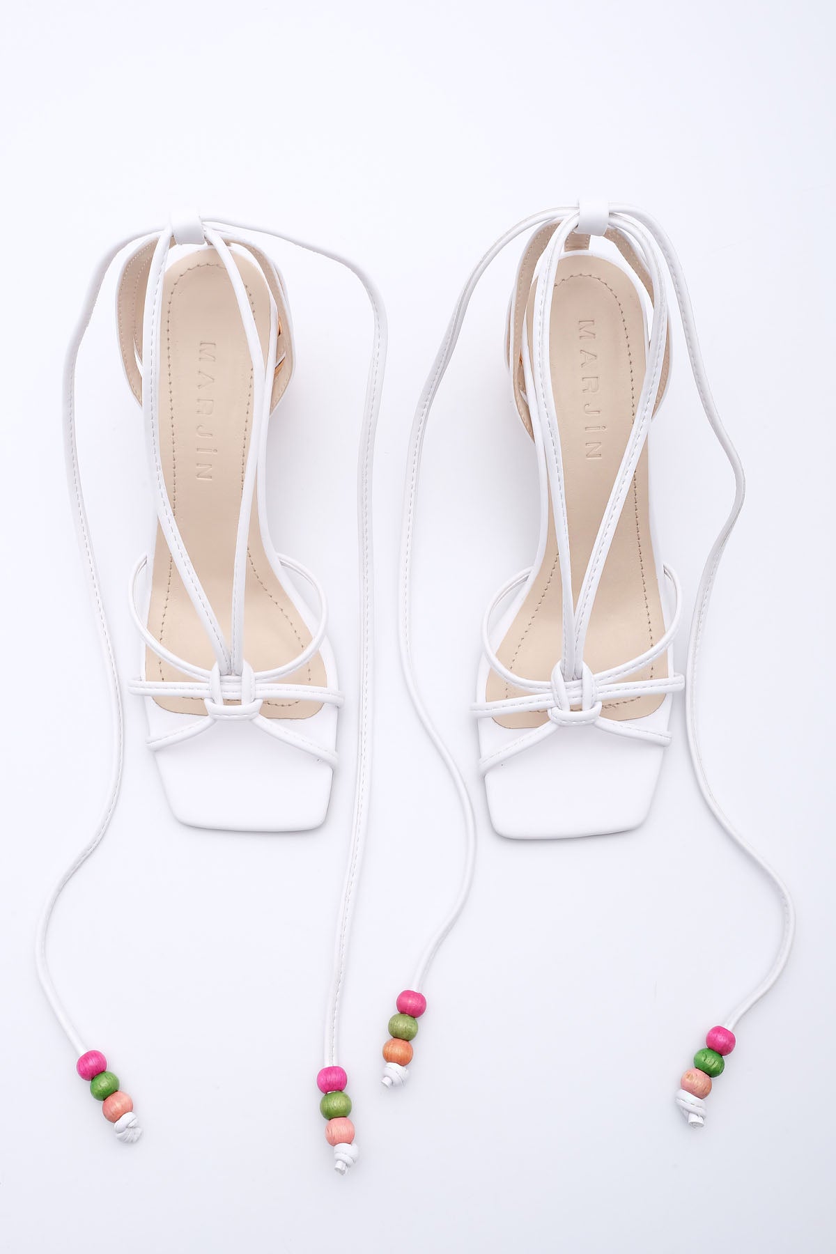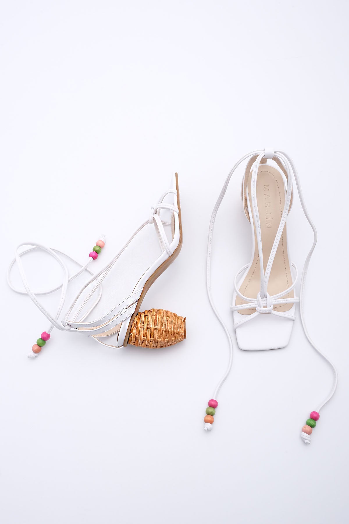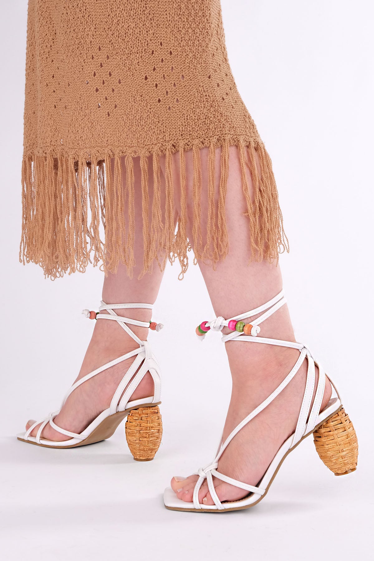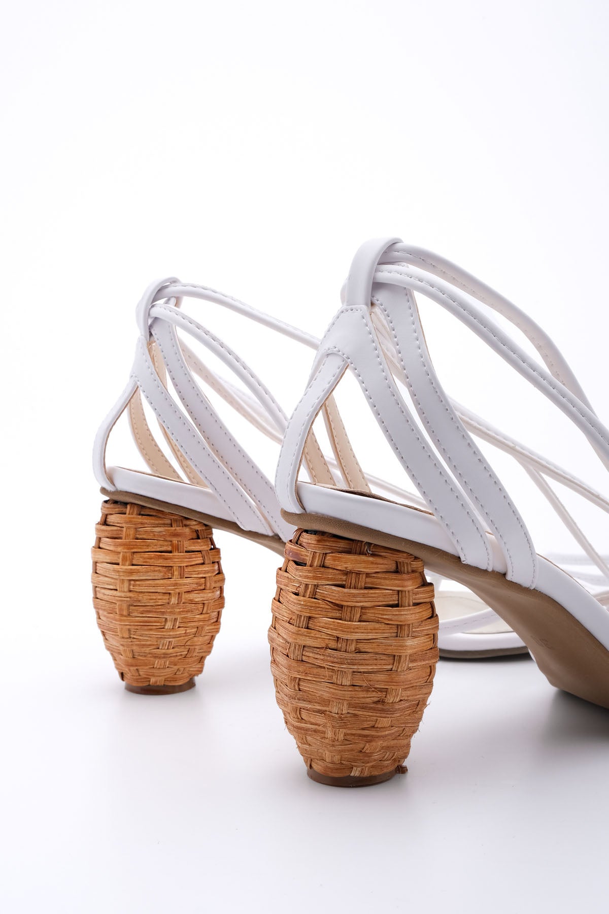 Kadın İpli Topuklu Sandalet Cukve - Beyaz