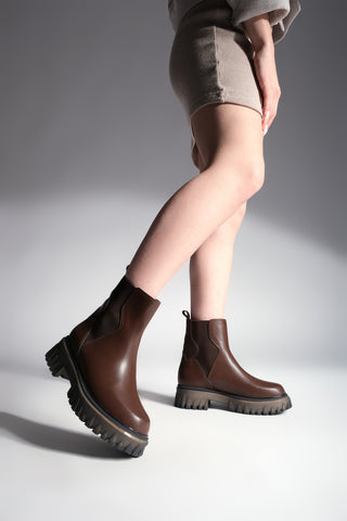 Kadın Küt Burun Topuklu Bot Sivet - Taba Süet