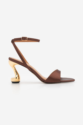 Kadın Metalik Altın Ökçe Klasik Topuklu Sandalet Lumera - Kahve Saten