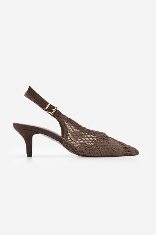 Kadın Stiletto Sivri Burun Fileli El Örgüsü Klasik Topuklu Ayakkabı Berzen - Kahve Hasır