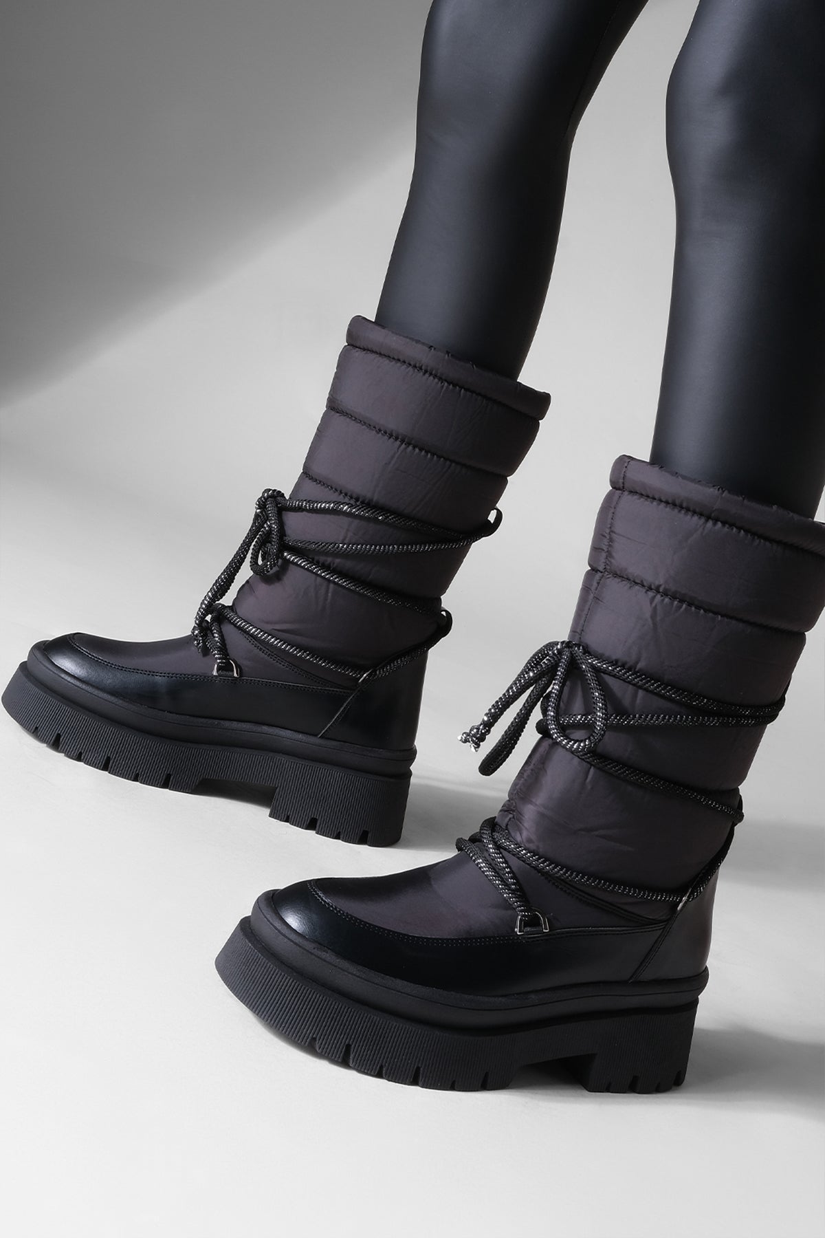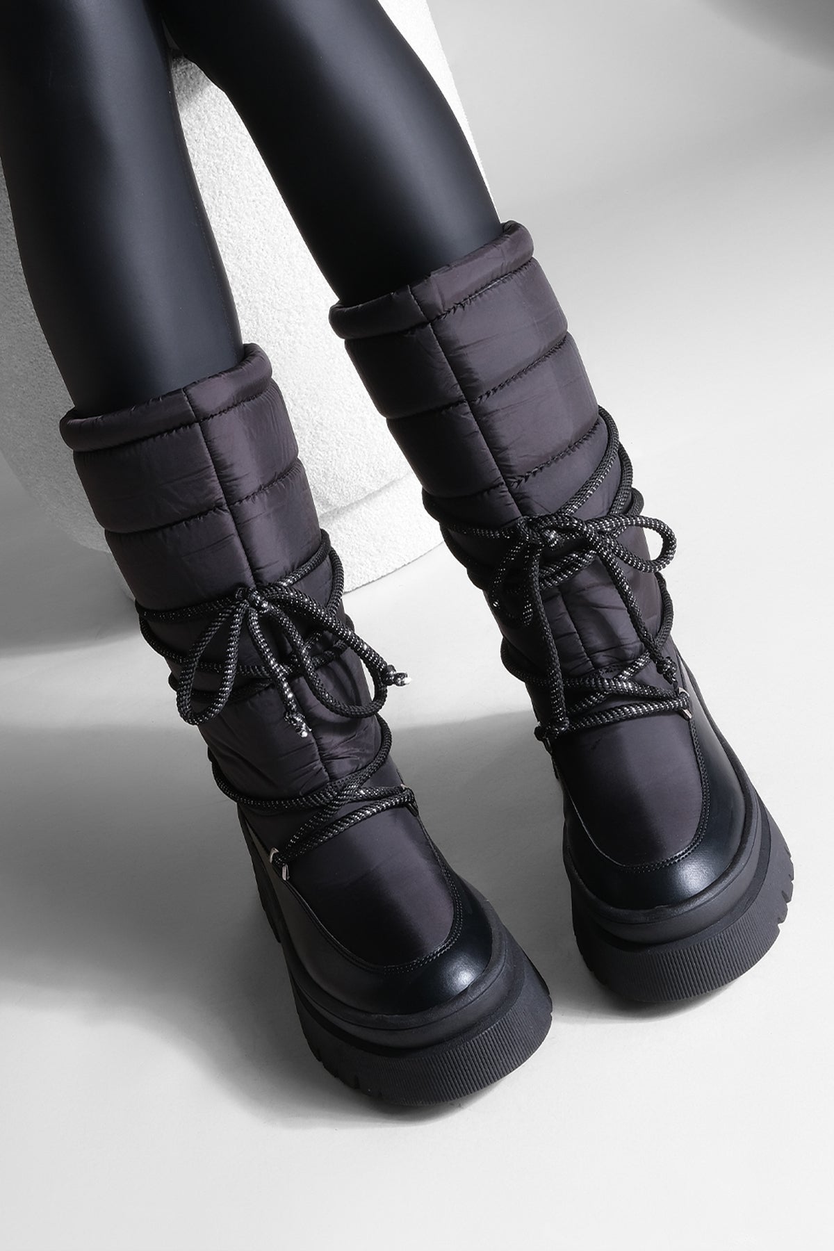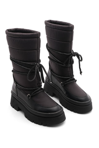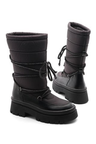 Kadın Kalın Taban Günlük Çizme Boren - Siyah