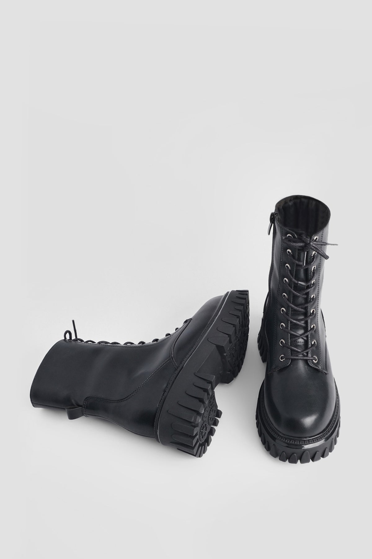 Kadın Kalın Taban Günlük Çizme Boren - Siyah