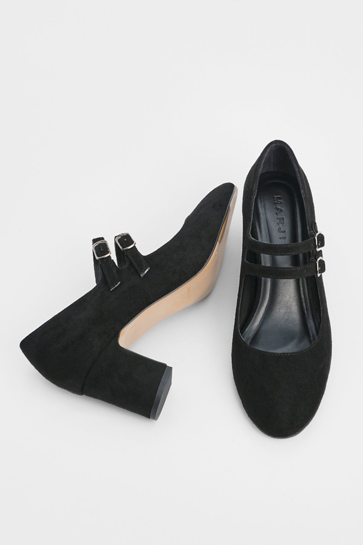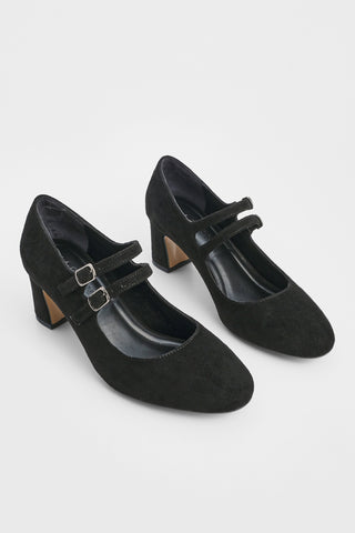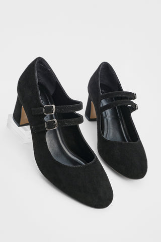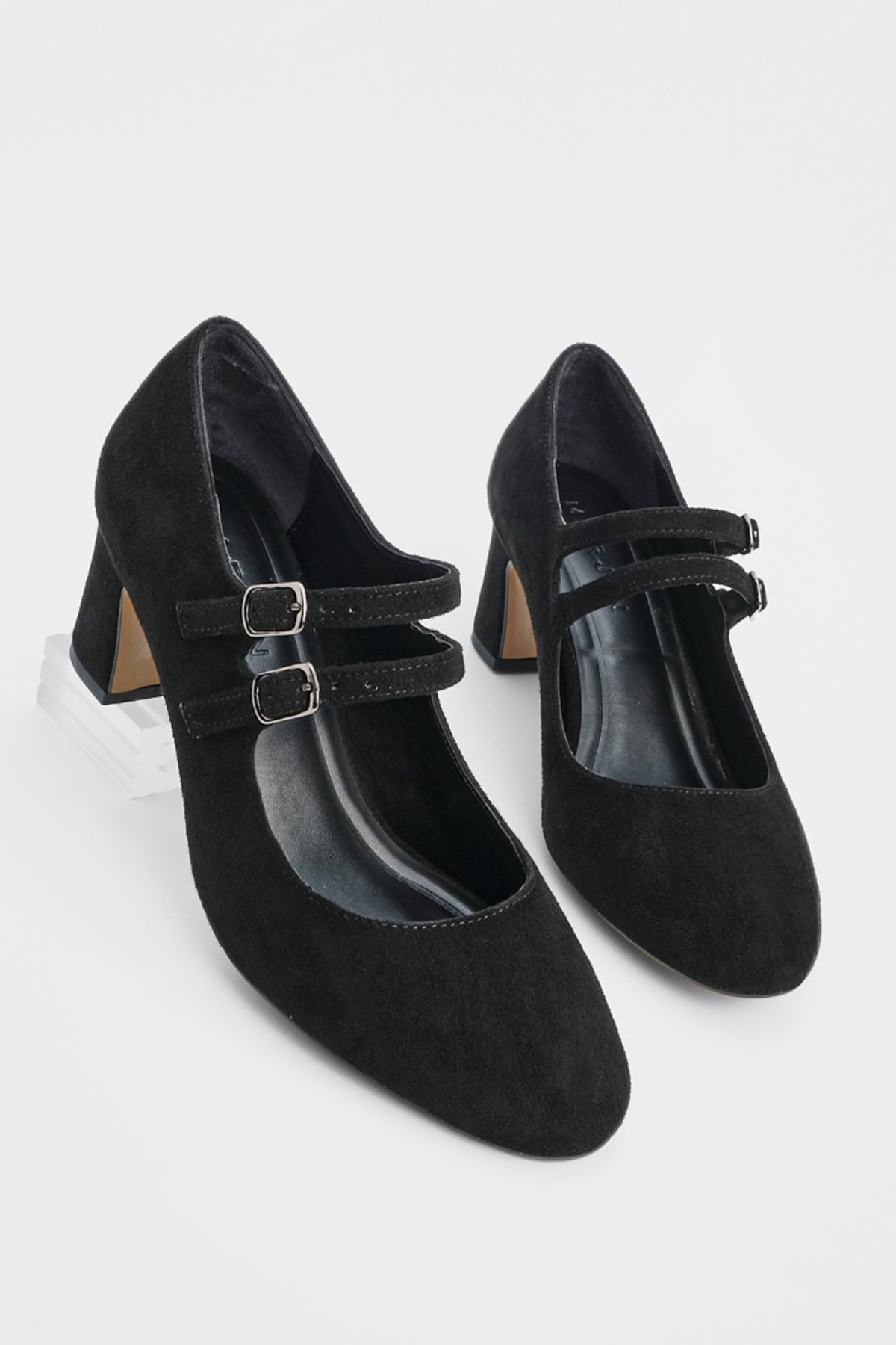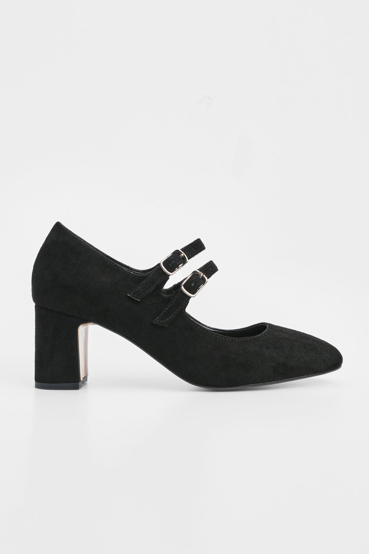 Kadın Kalın Topuk Klasik Topuklu Ayakkabı Funte - Siyah Süet