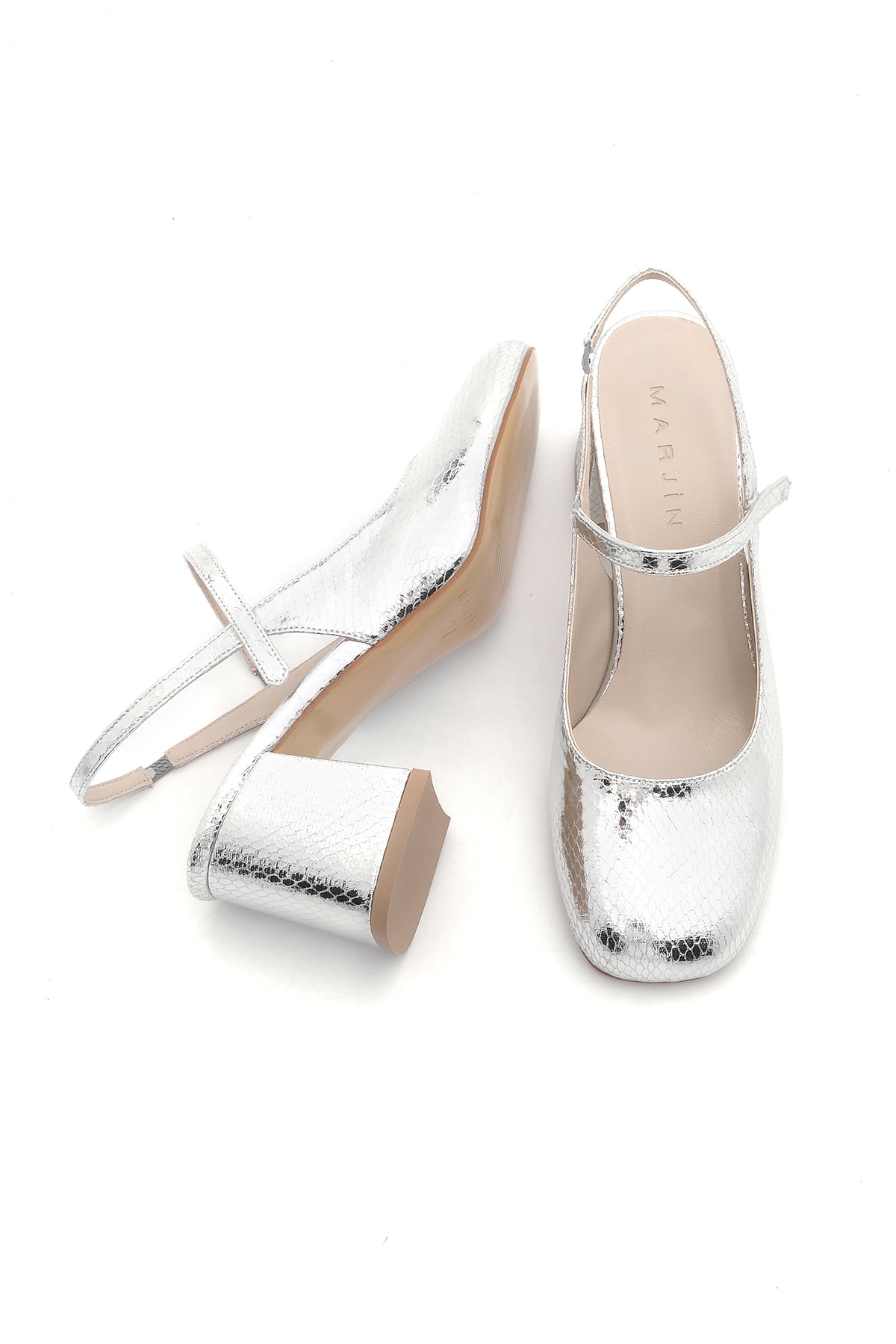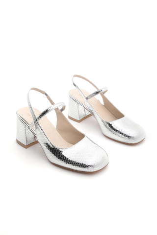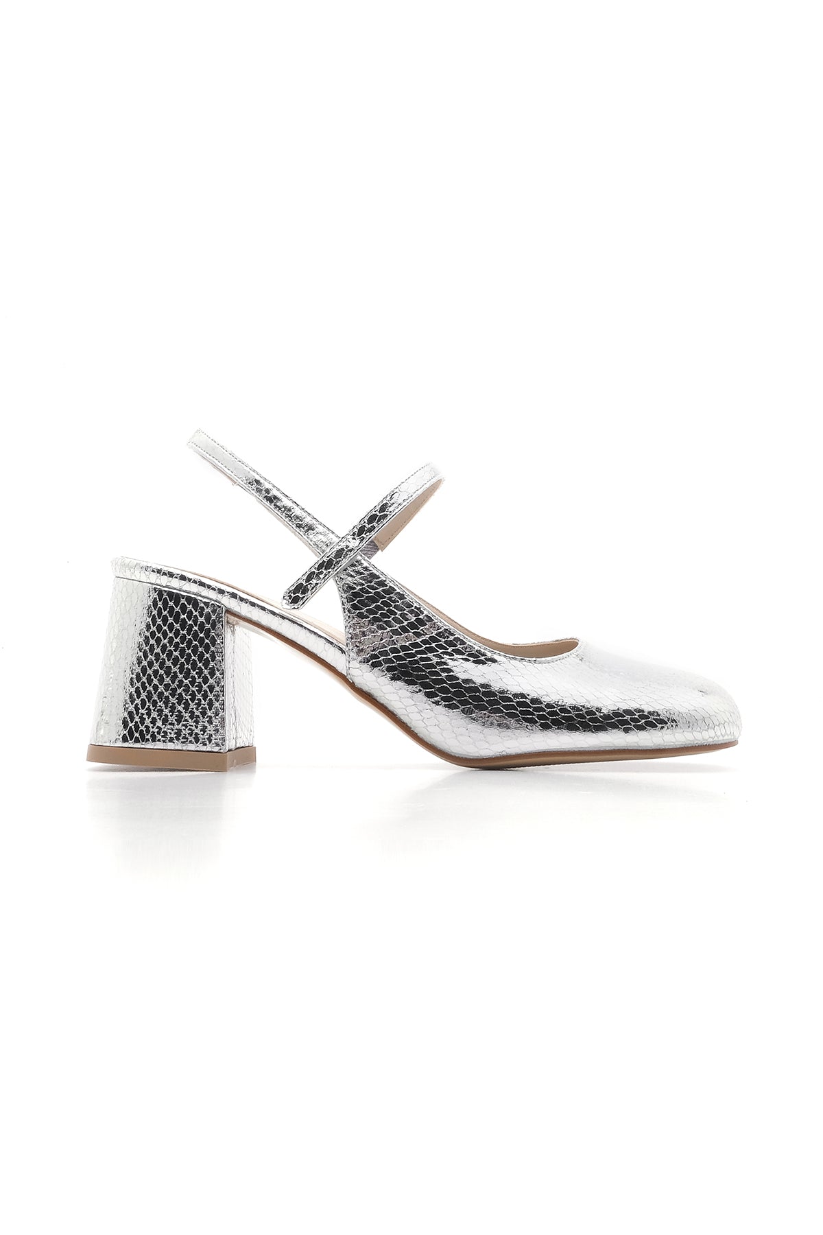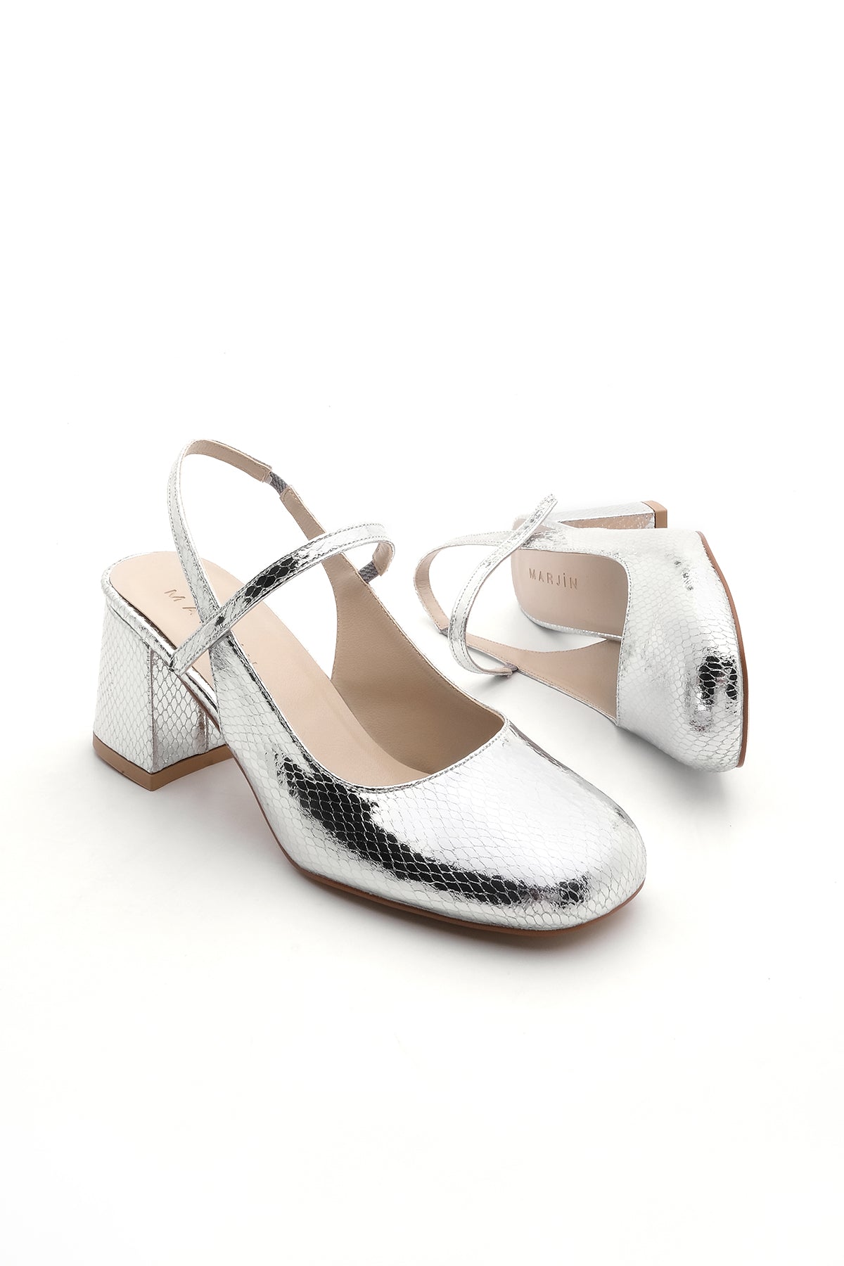 Kadın Kalın Topuk Klasik Topuklu Ayakkabı Nesve - Gümüş