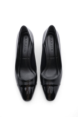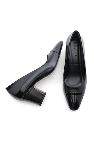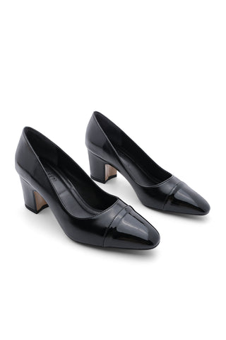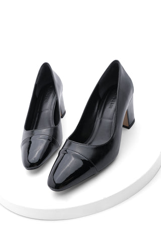Kadın Kalın Topuk Klasik Topuklu Ayakkabı Soles - Siyah Rugan