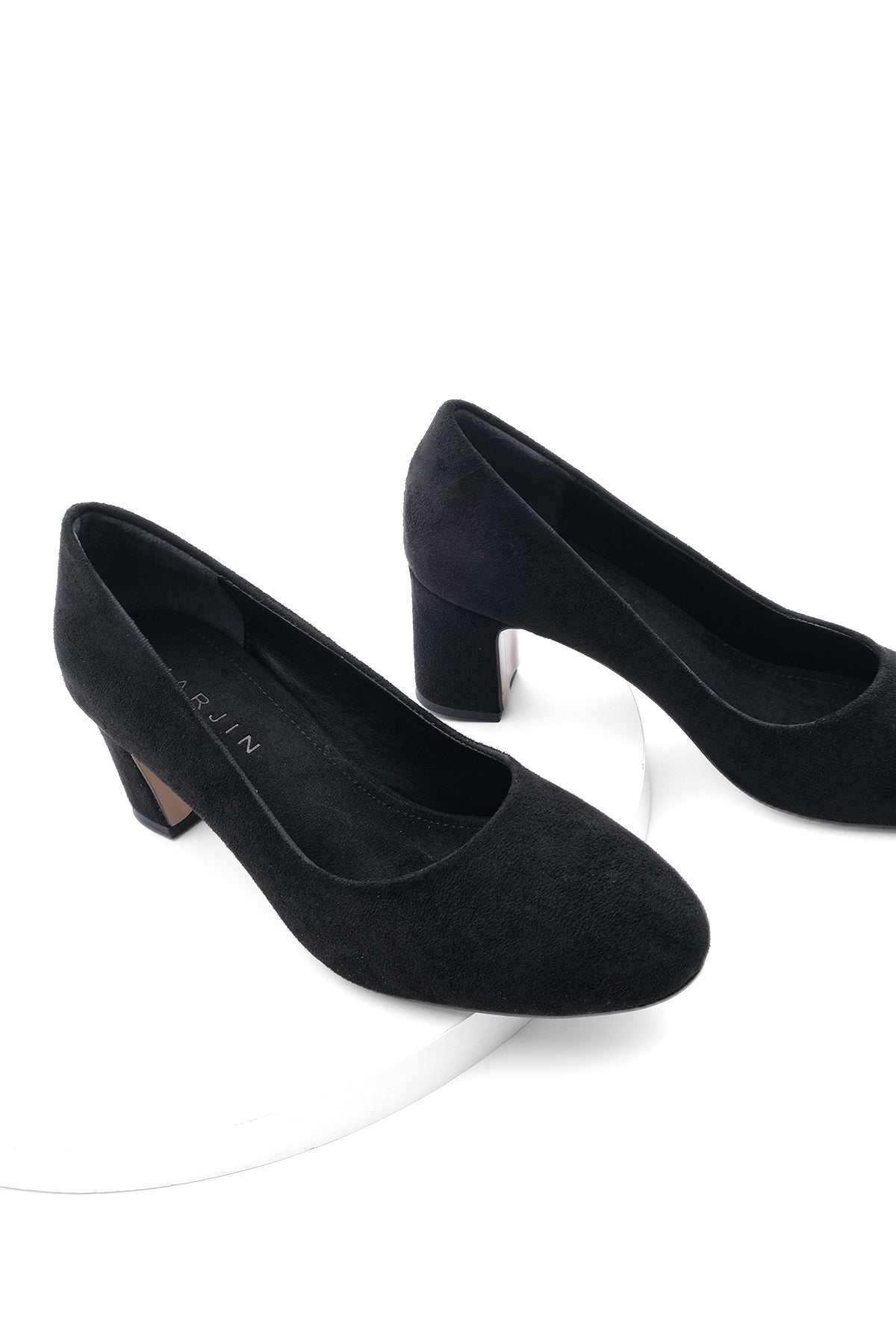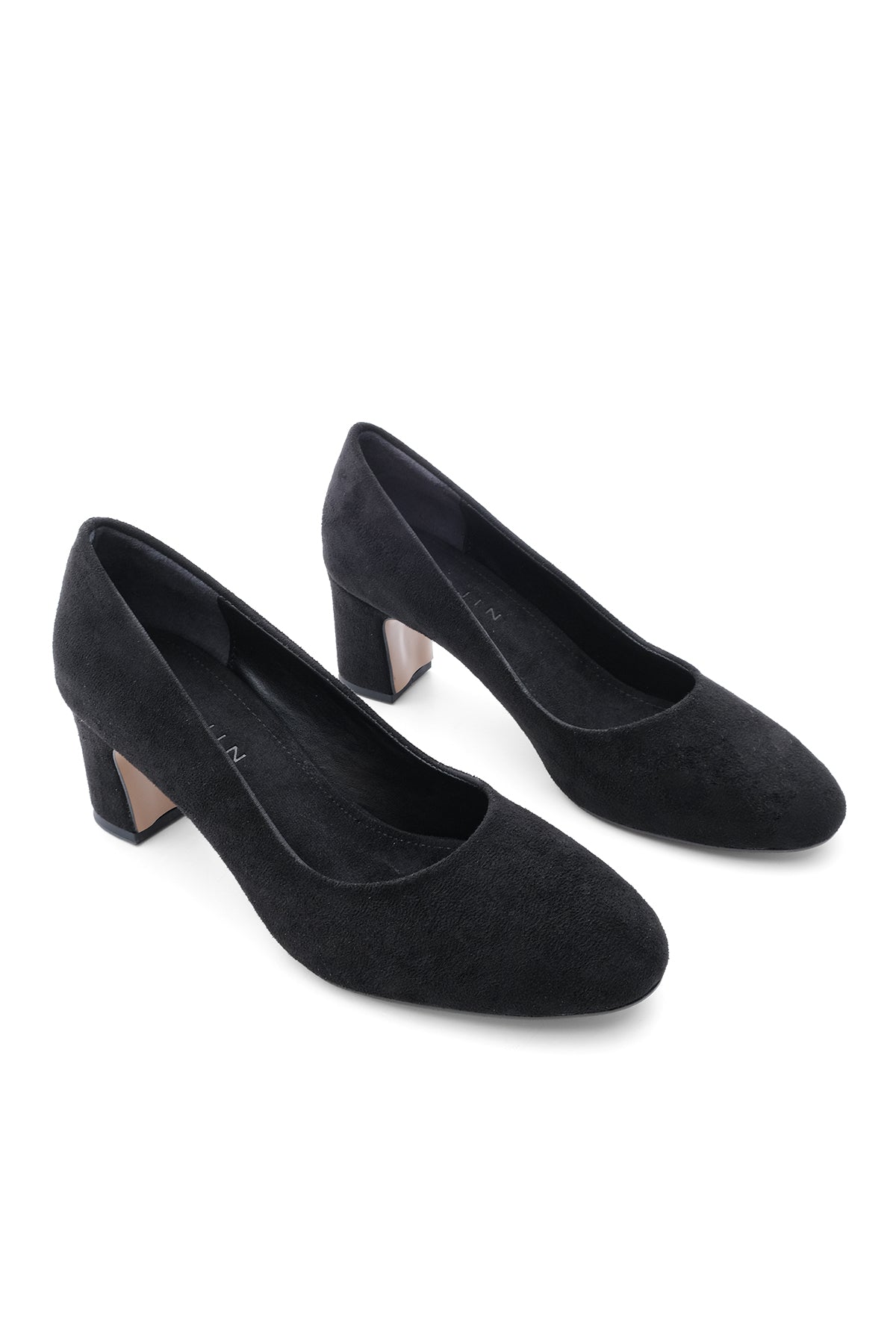 Kadın Kalın Topuk Klasik Topuklu Ayakkabı Torisa - Siyah Süet