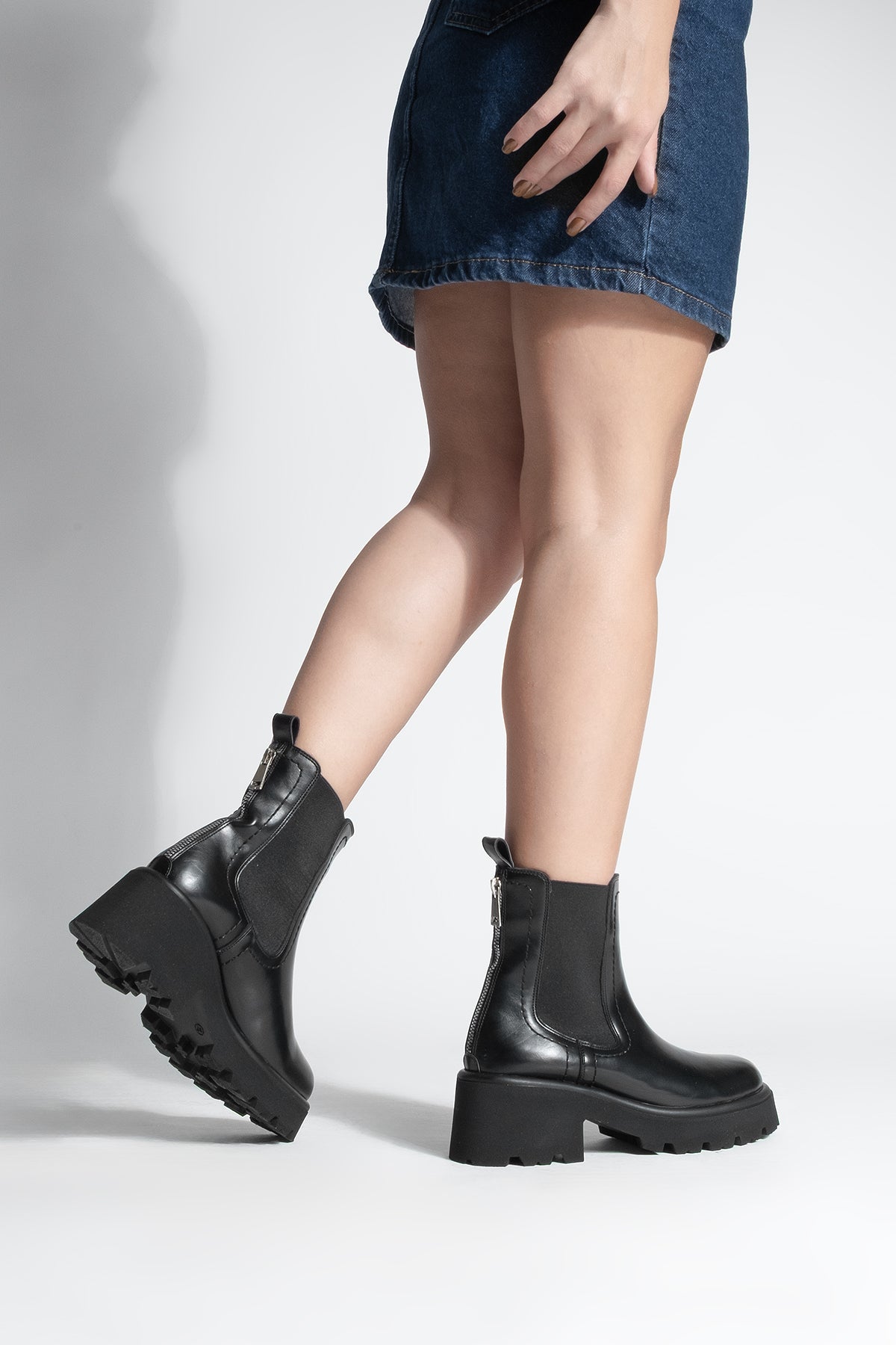Kadın Kalın Topuklu Günlük Bot Fenros - Siyah
