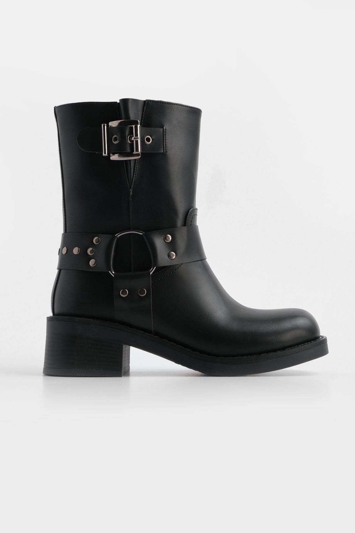Kadın Kalın Taban Günlük Çizme Boren - Siyah