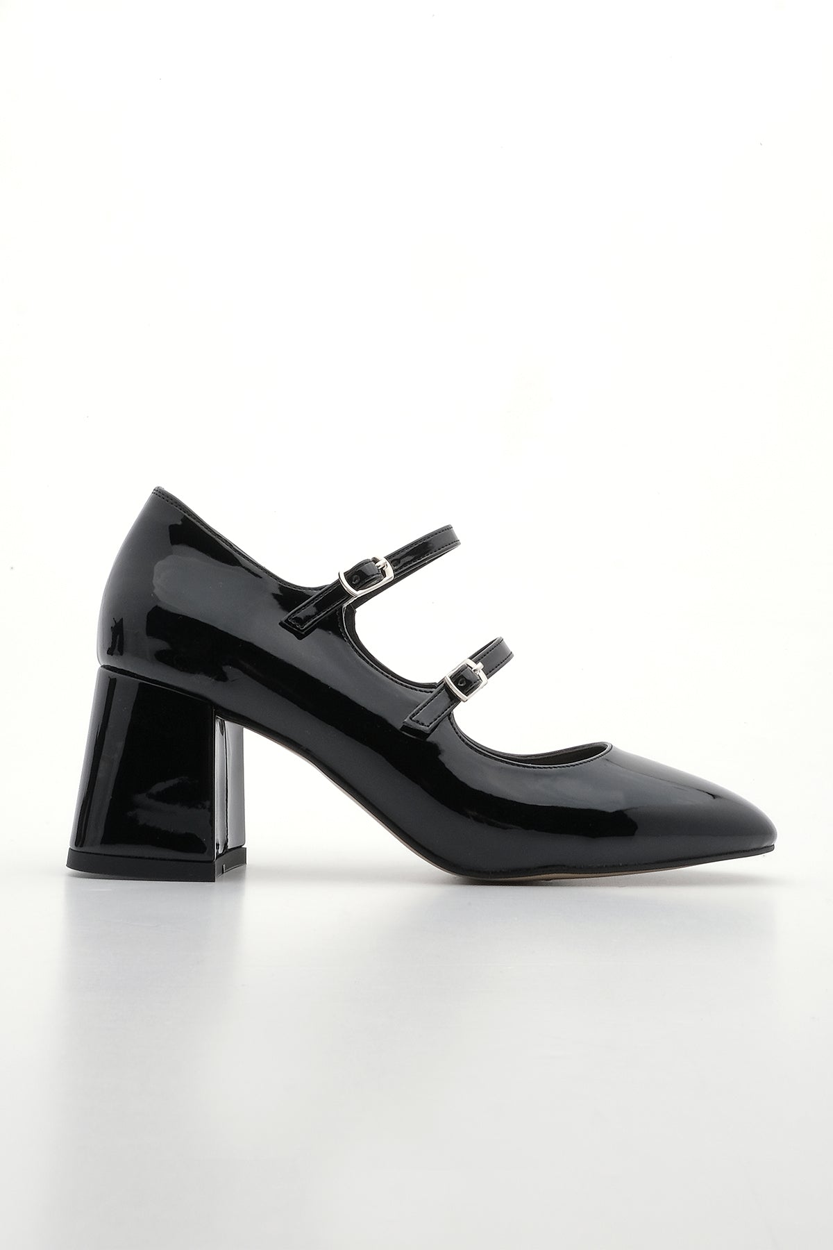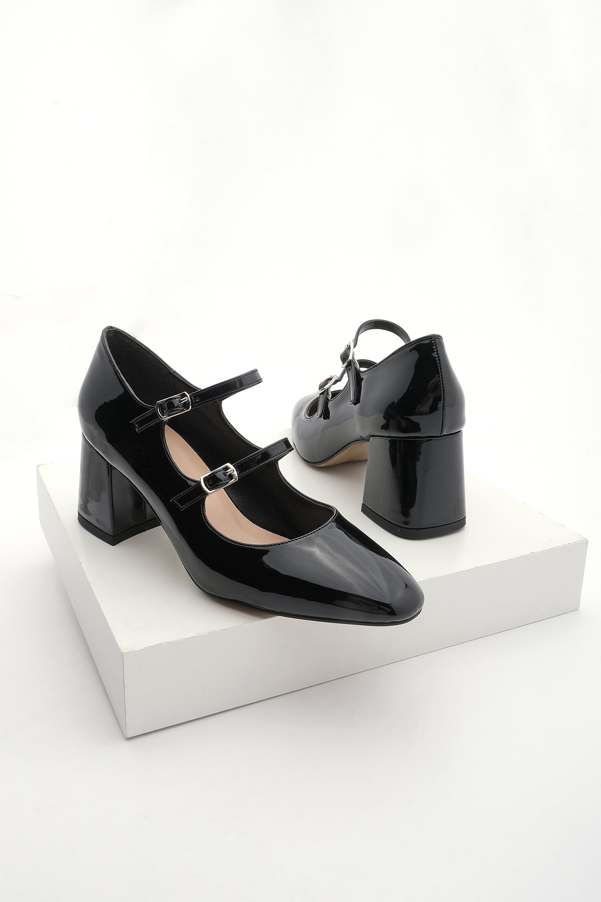 Kadın Klasik Topuklu Ayakkabı Asney - Siyah Rugan