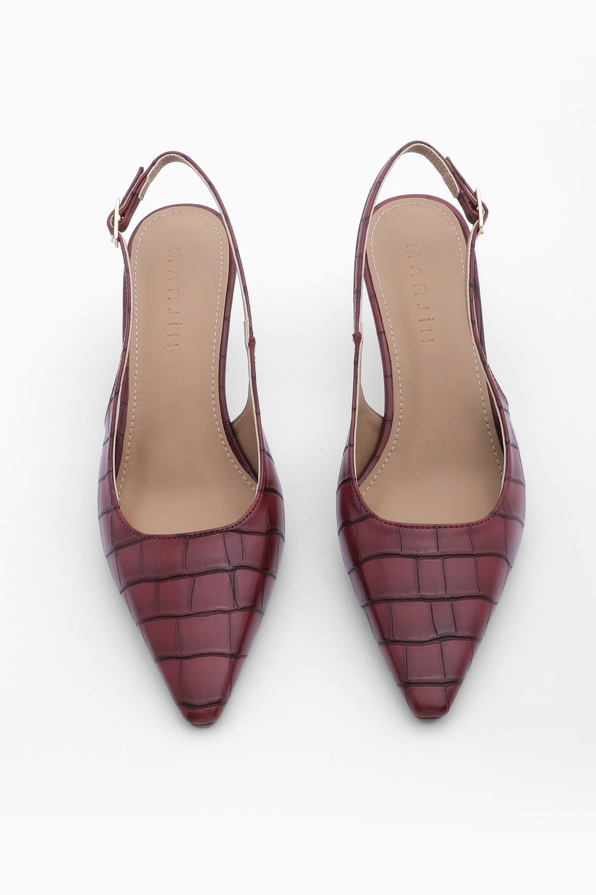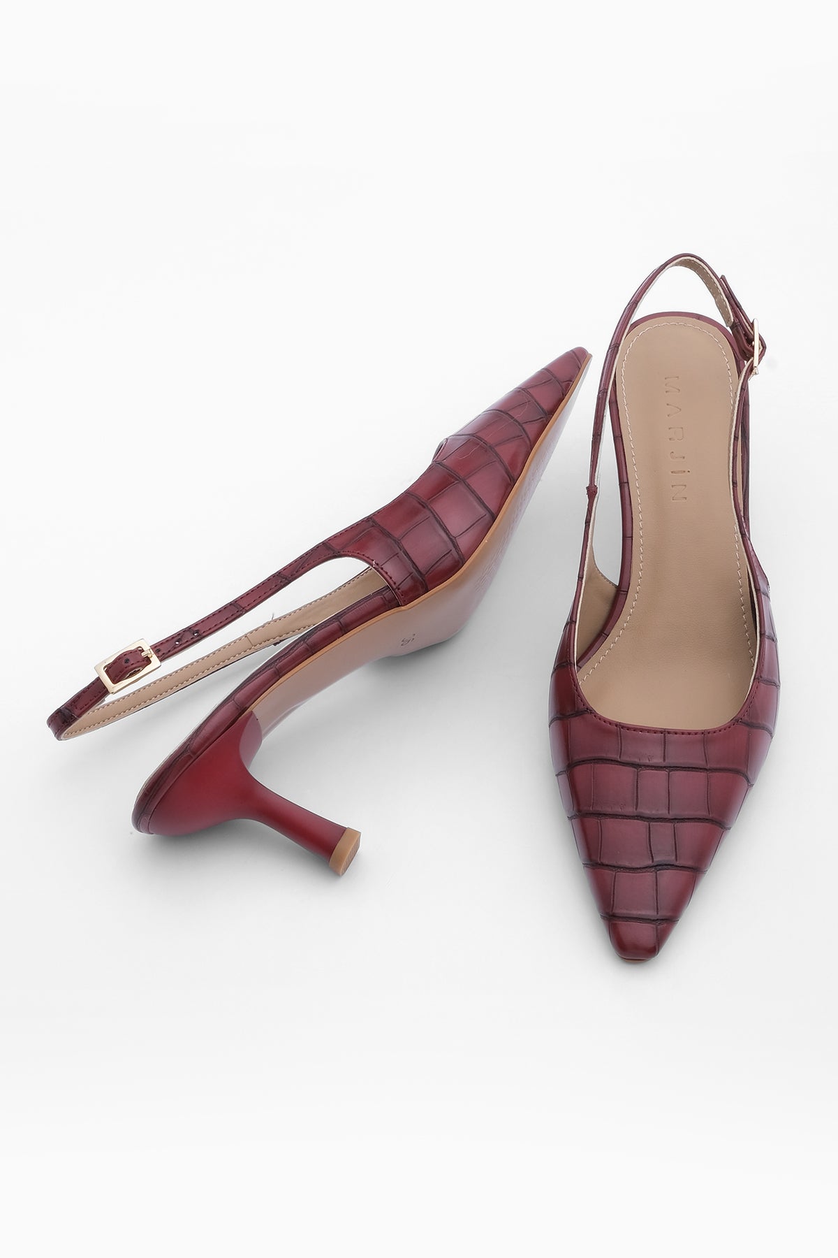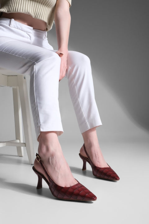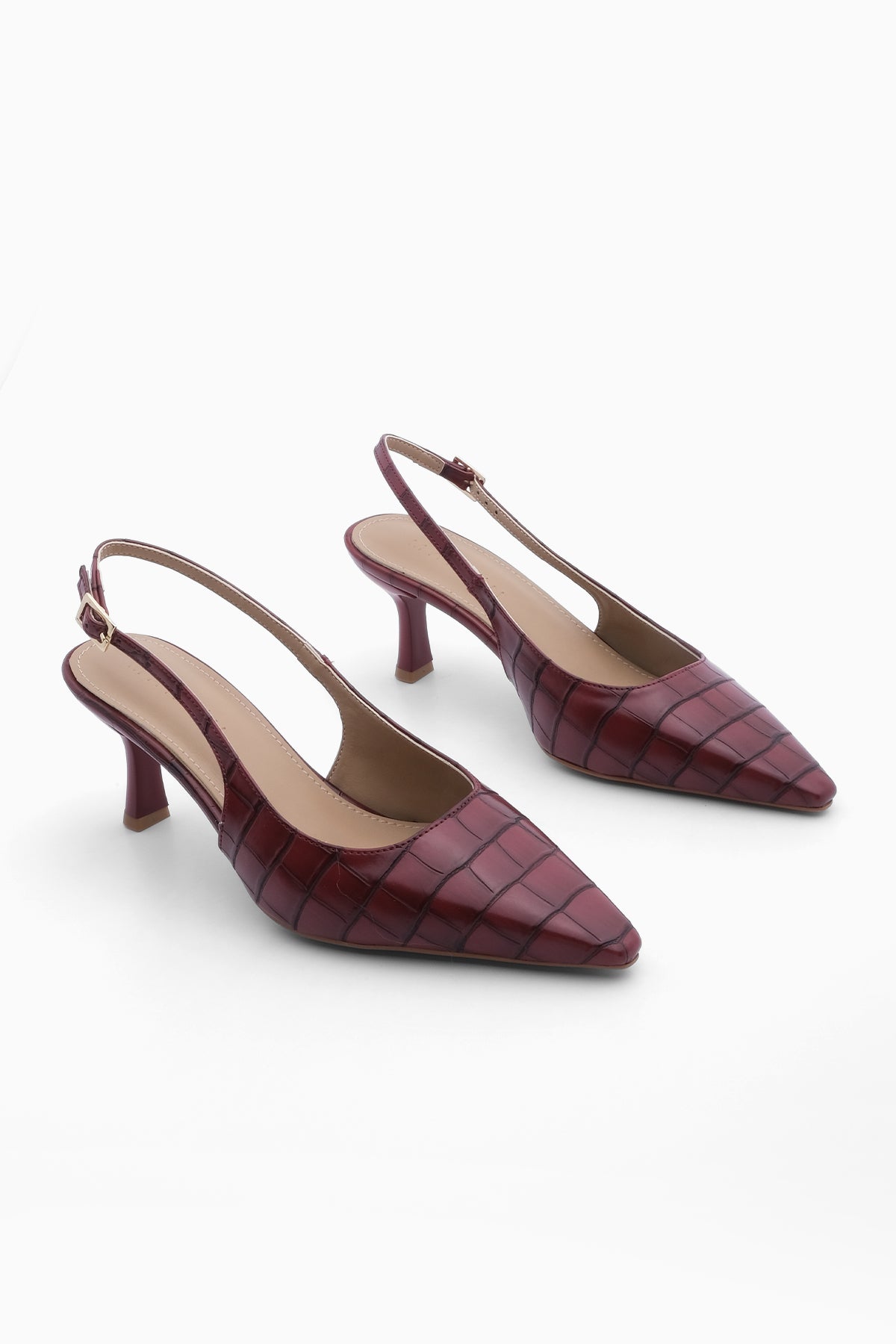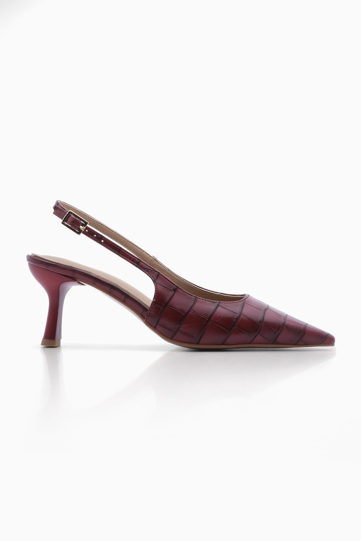 Kadın Klasik Topuklu Ayakkabı Fanle - Bordo Croco