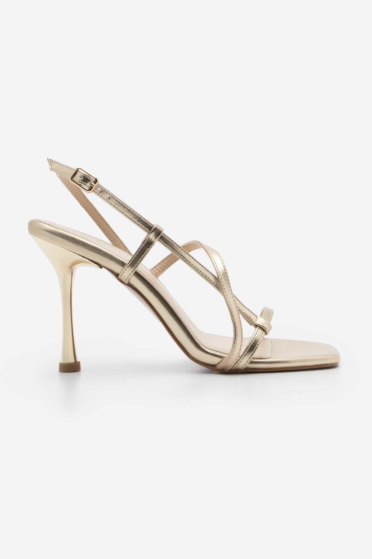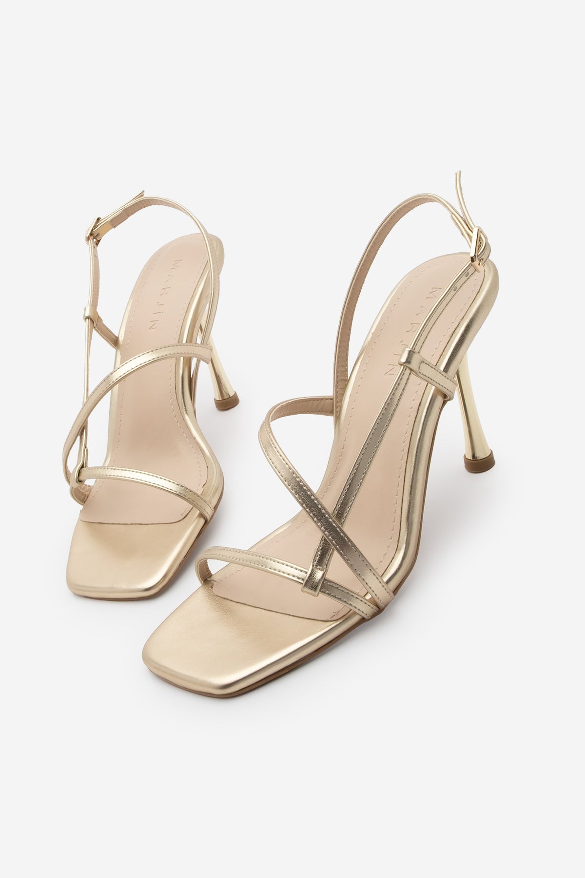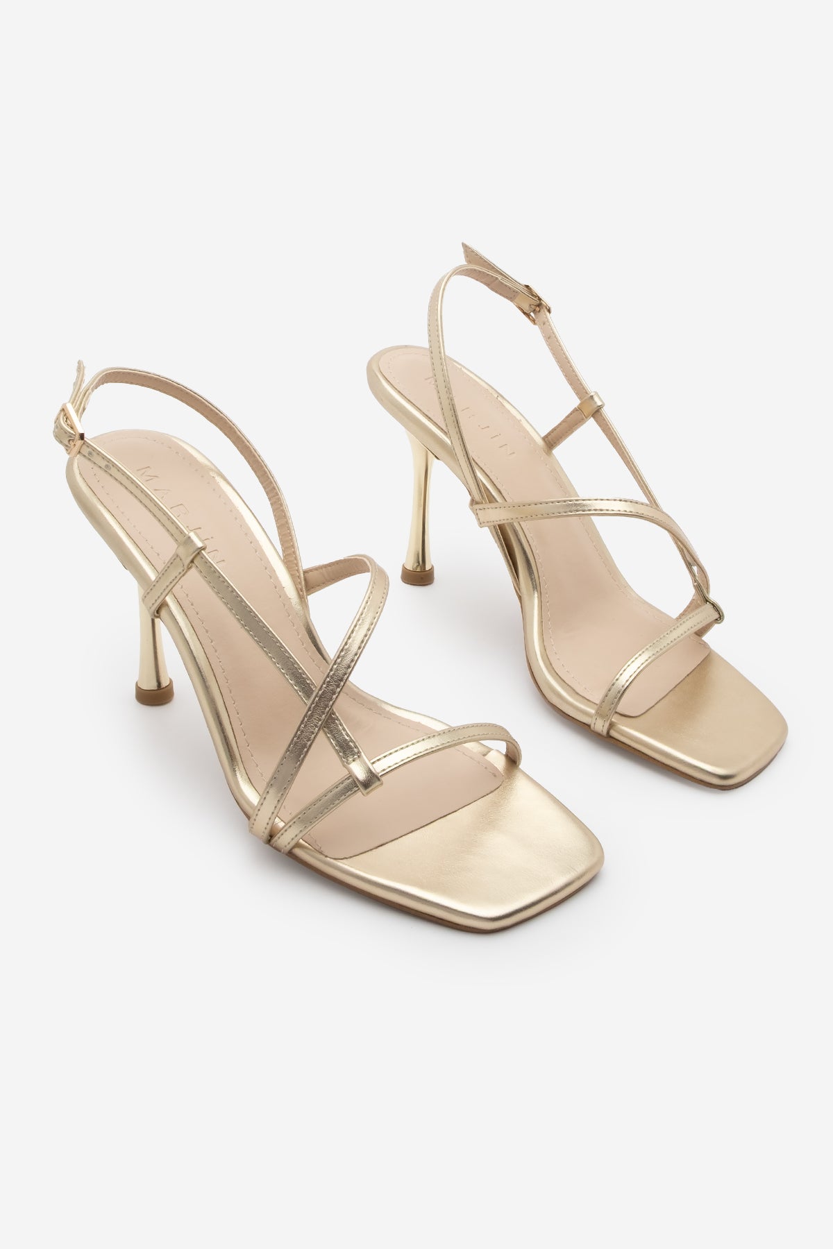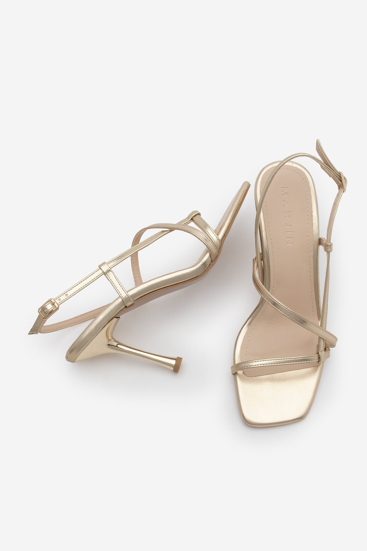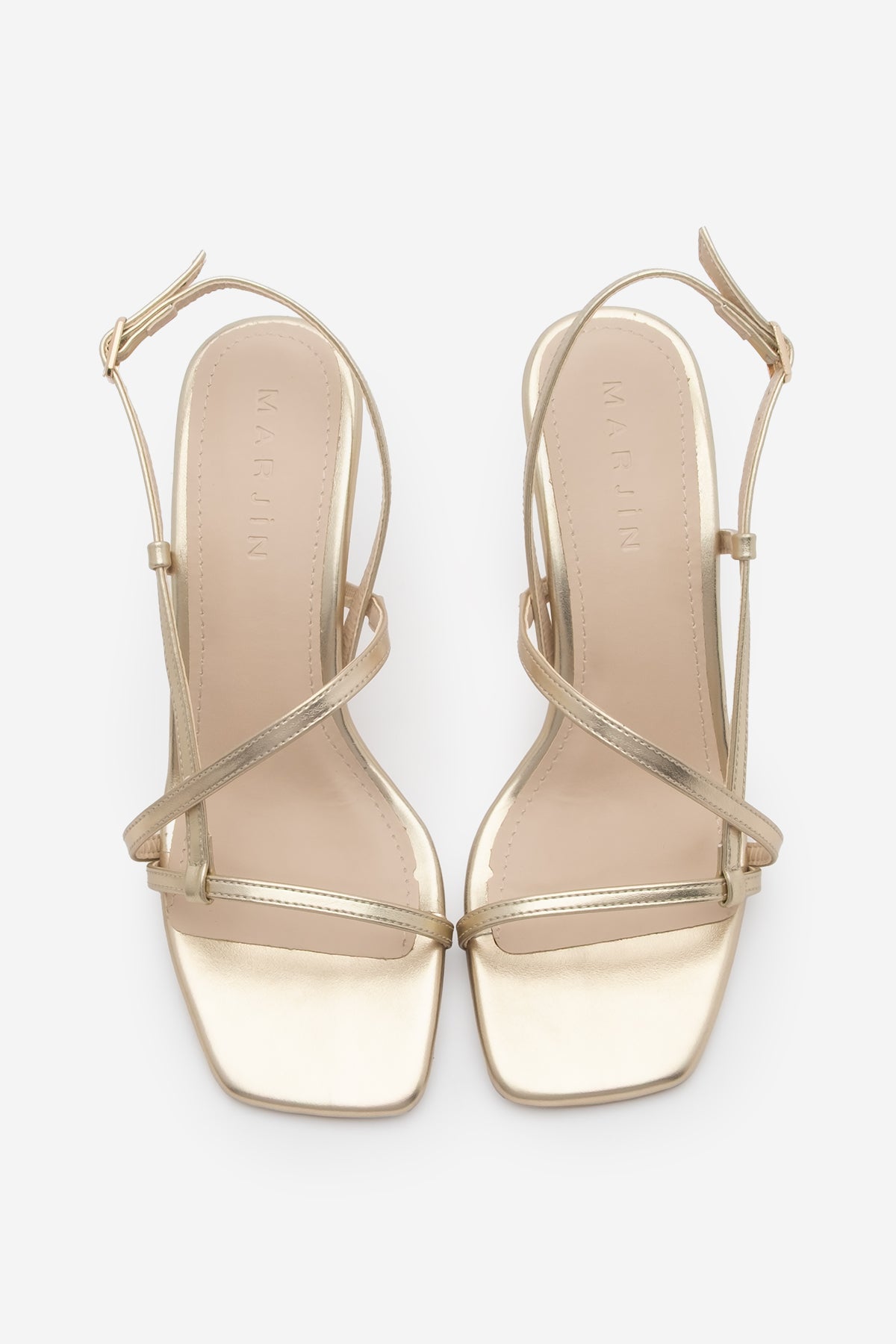 Kadın Küt Burun Bantlı Topuklu Sandalet Yonsa - Altın