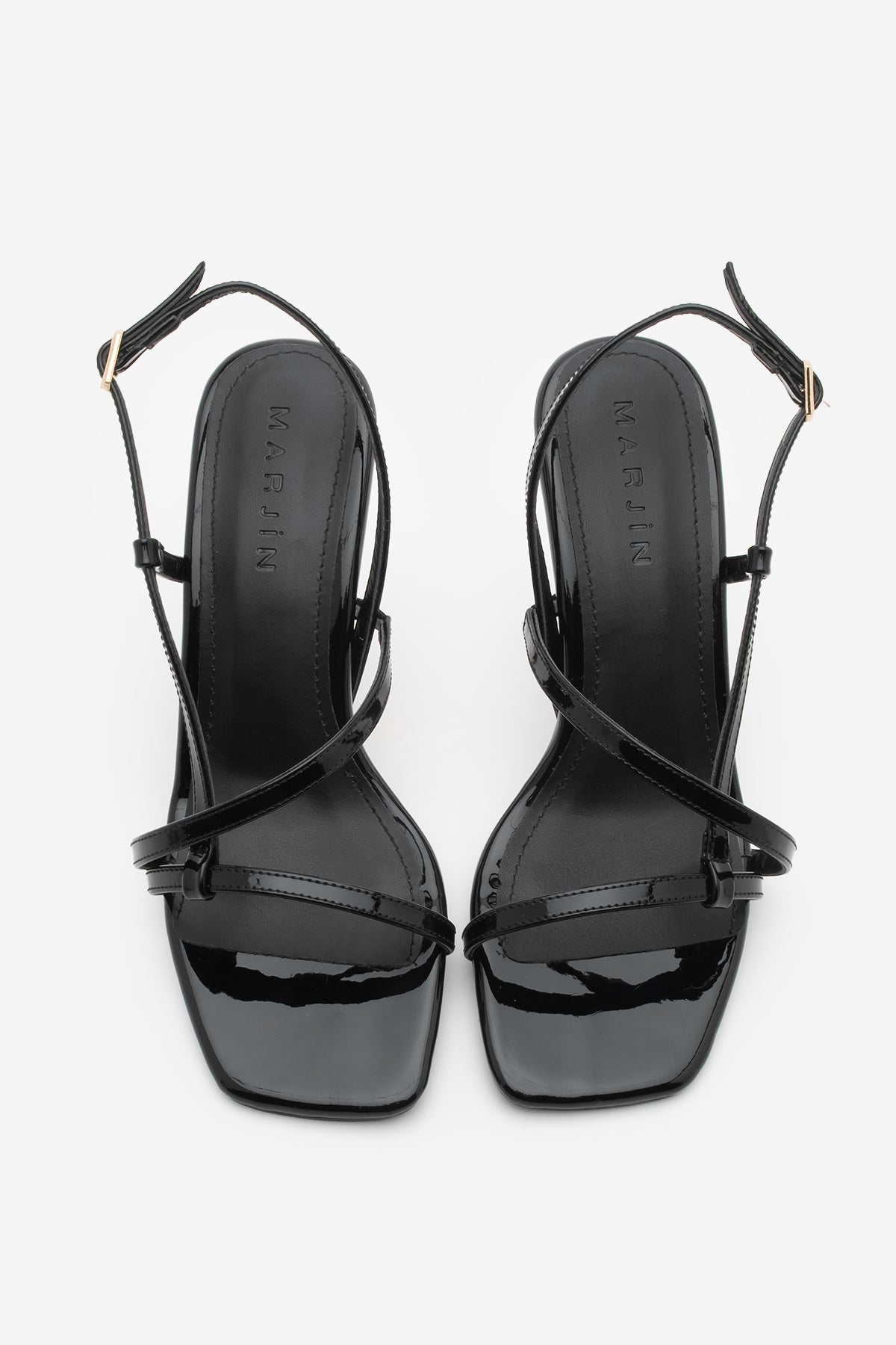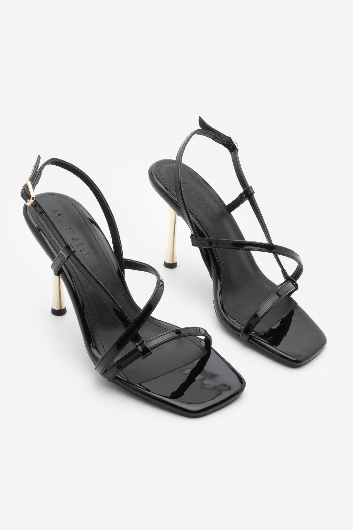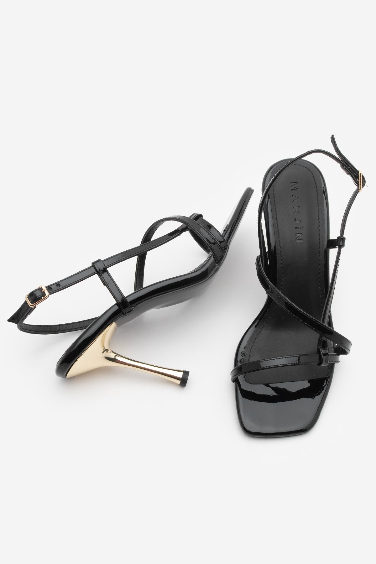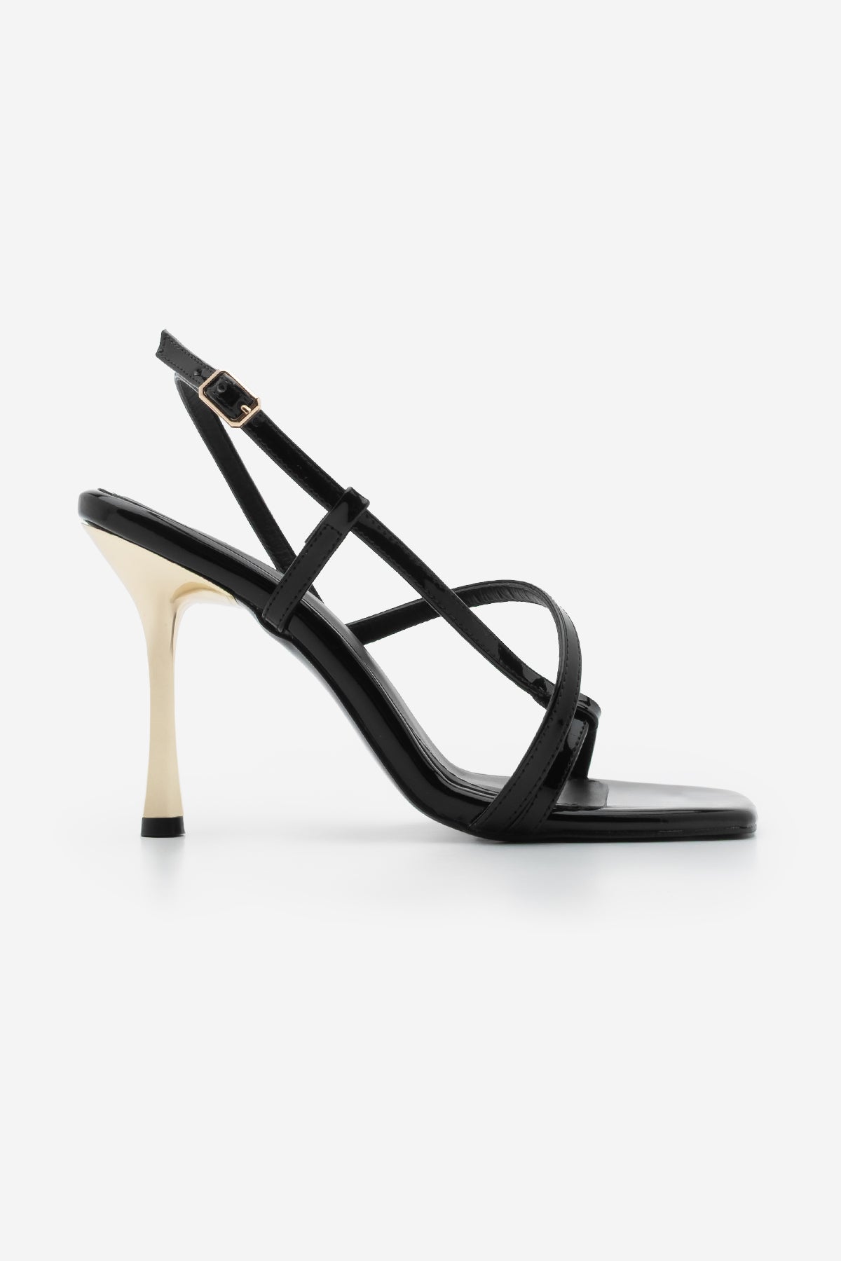 Kadın Küt Burun Bantlı Topuklu Sandalet Yonsa - Siyah Rugan