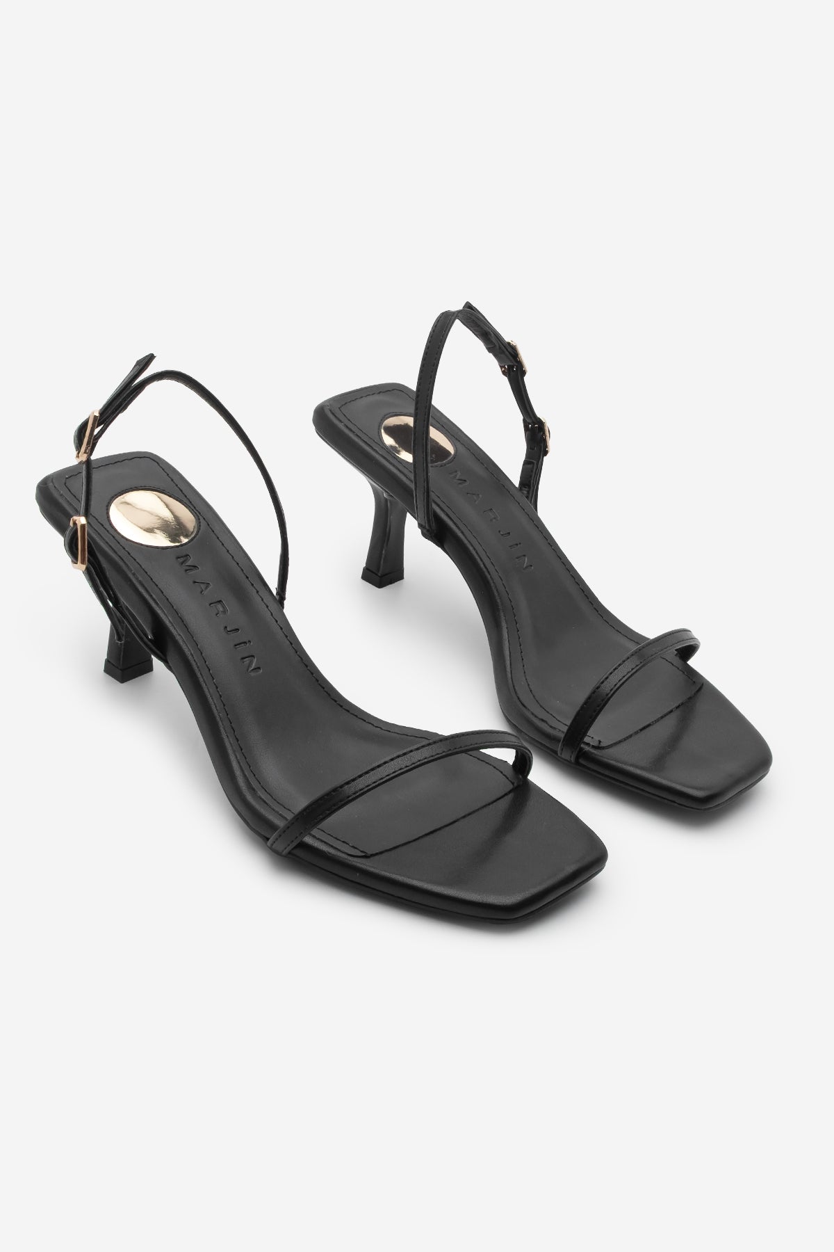 Kadın Küt Burun Topuklu Sandalet Retila - Siyah