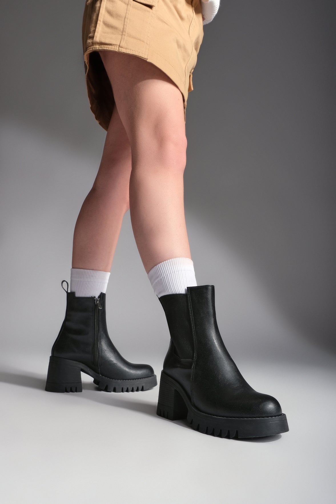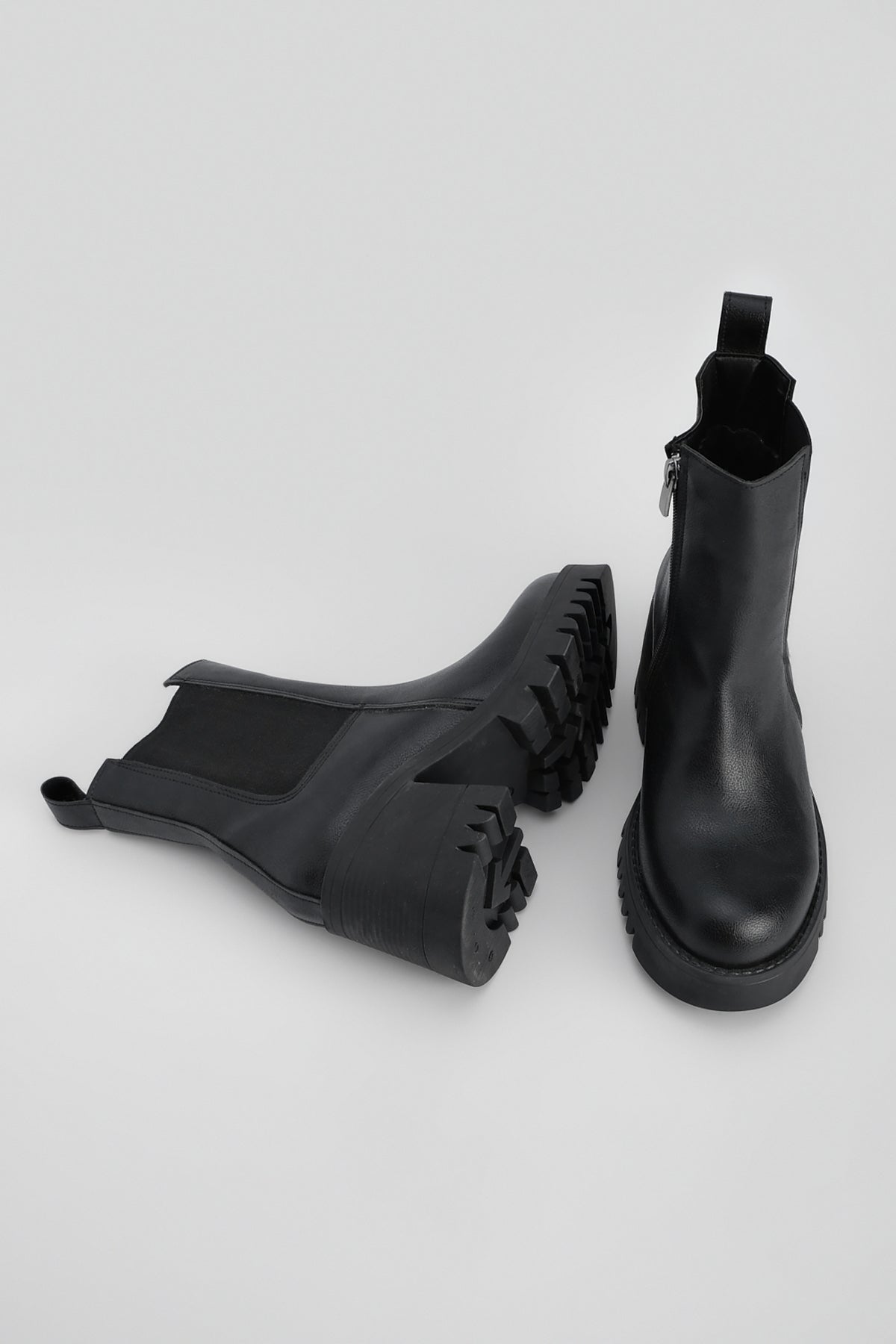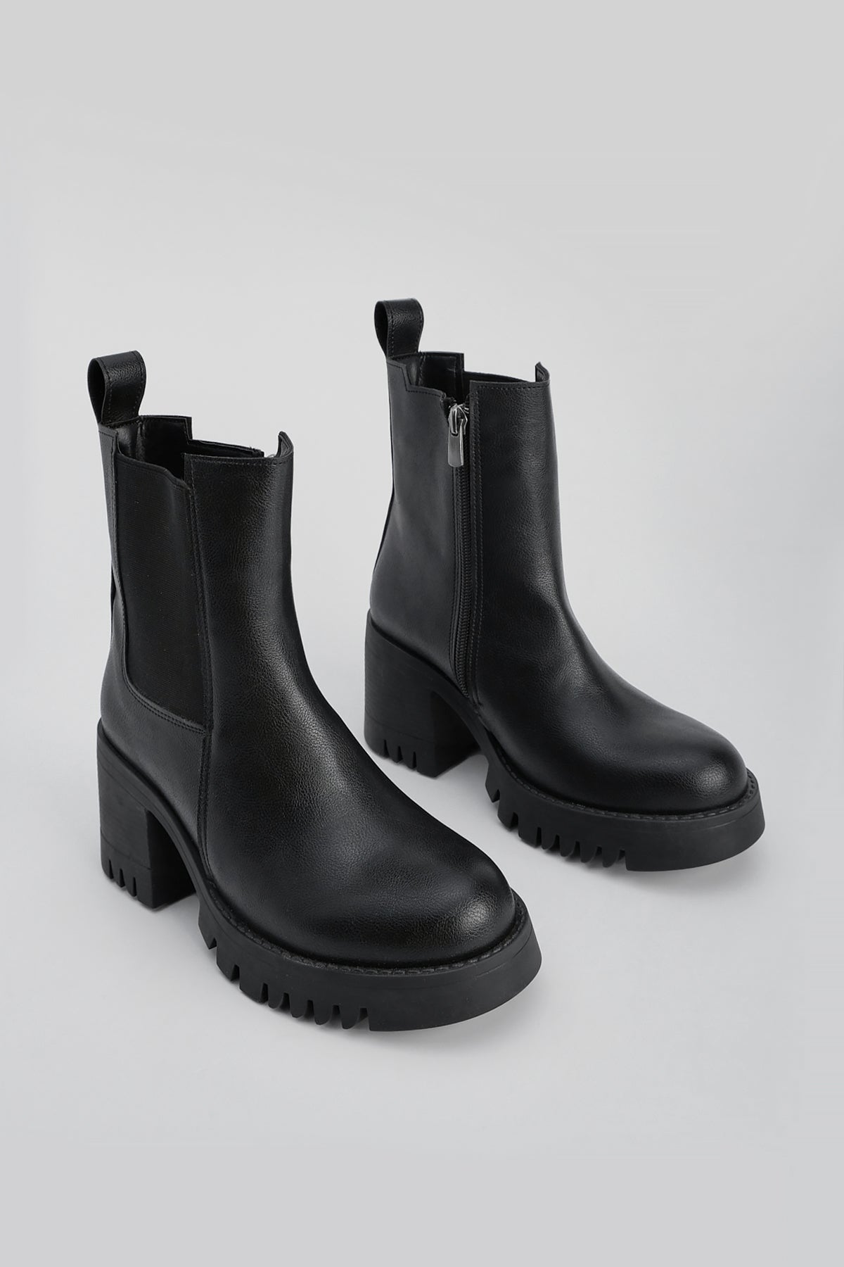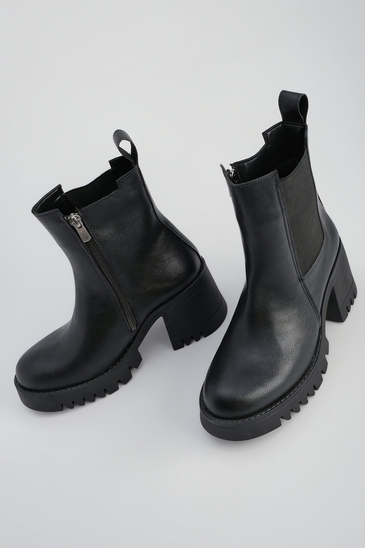 Kadın Lastikli Fermuarlı Topuklu Bot Tımbes - Siyah