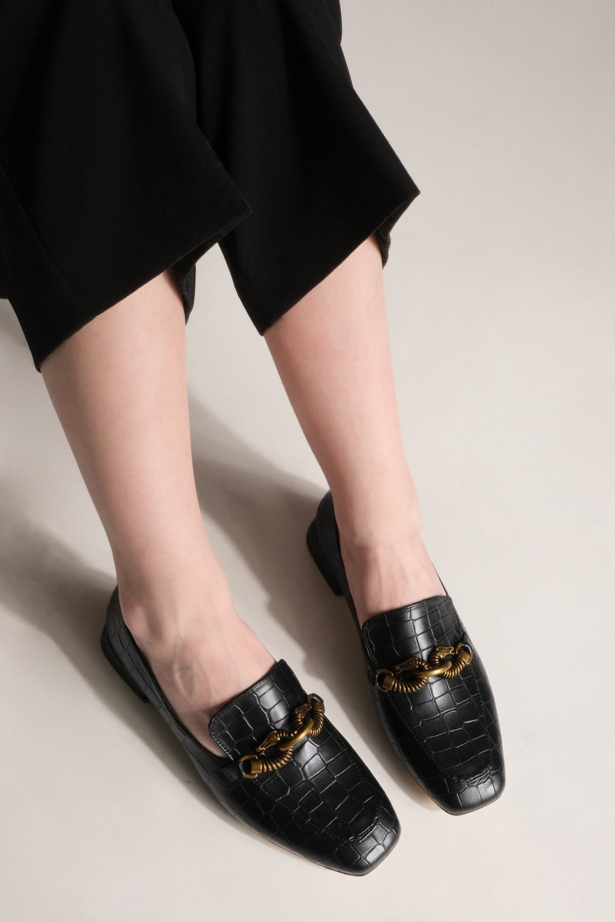 Kadın Loafer Günlük Ayakkabı Alva - Siyah Croco