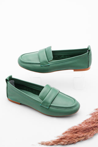 Kadın Loafer Hakiki Deri Günlük Ayakkabı Token - Yeşil