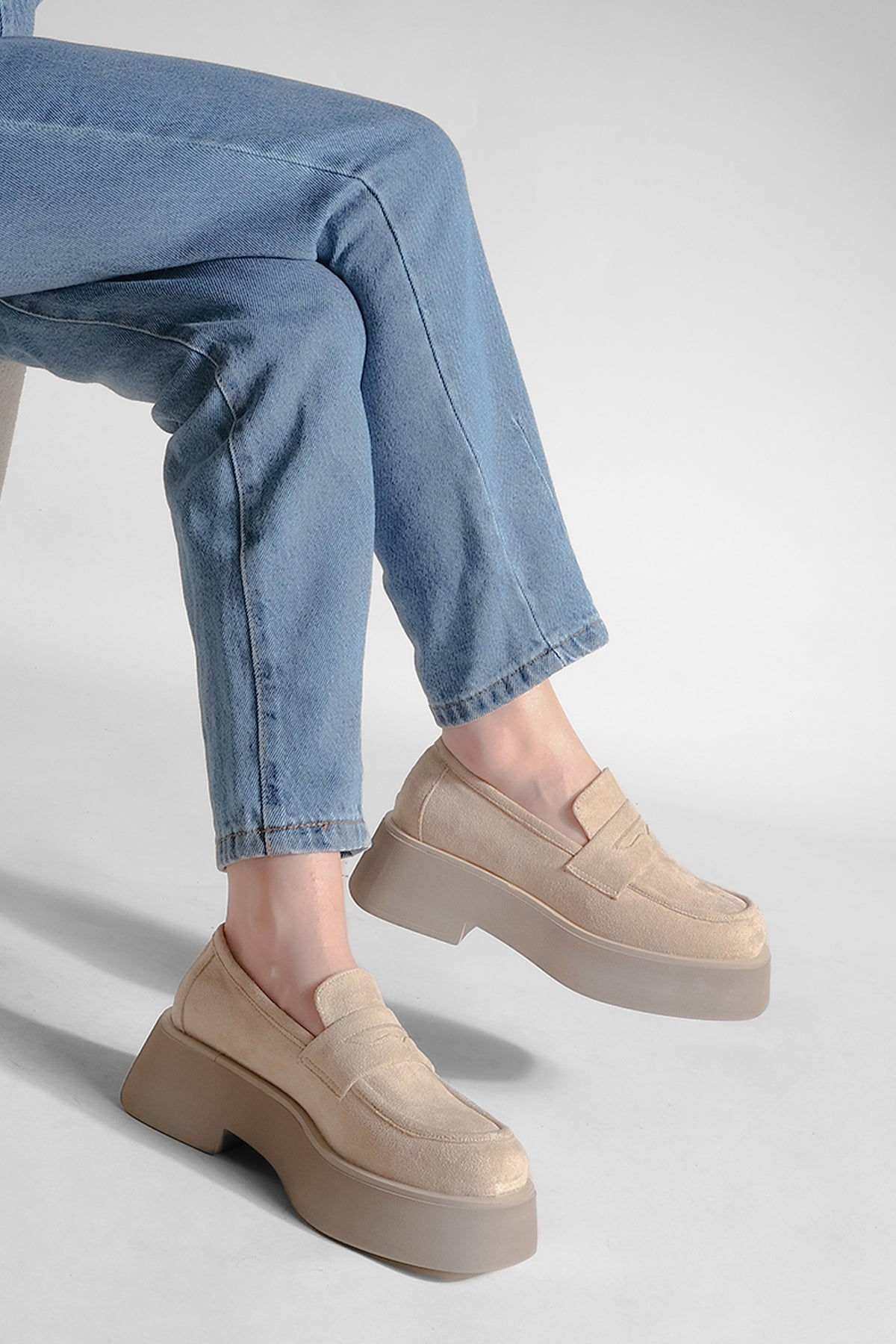 Kadın Loafer Günlük Ayakkabı Rotez - Bej Süet