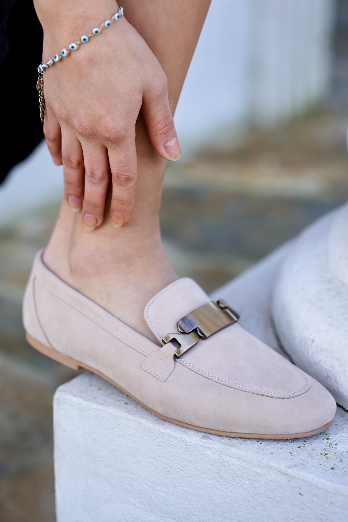 Kadın Loafer Tokalı Günlük Ayakkabı Forez - Bej Süet