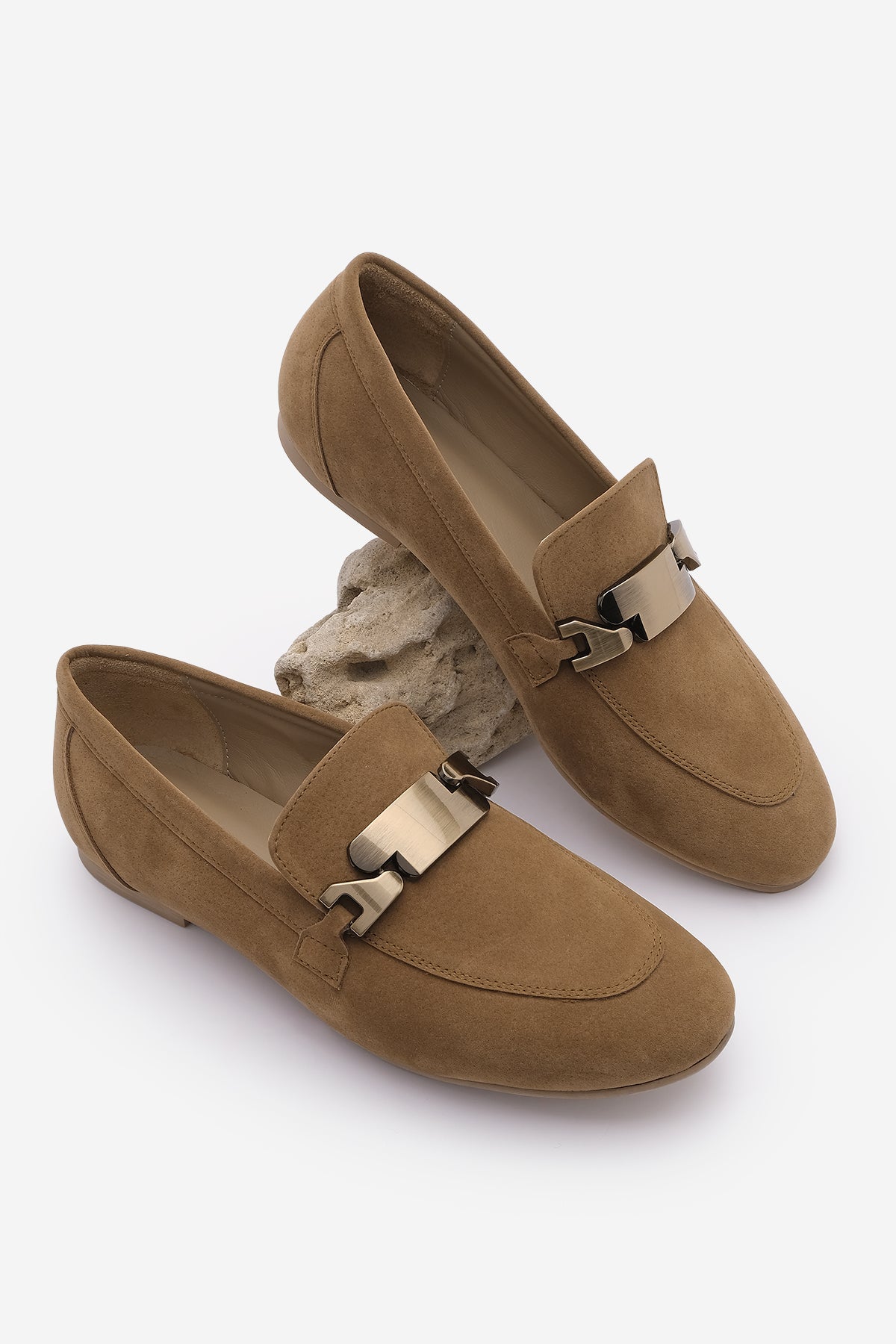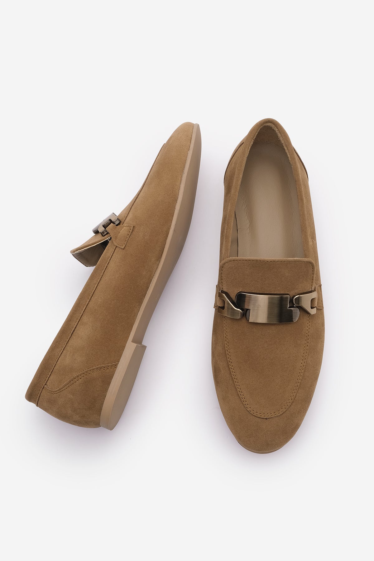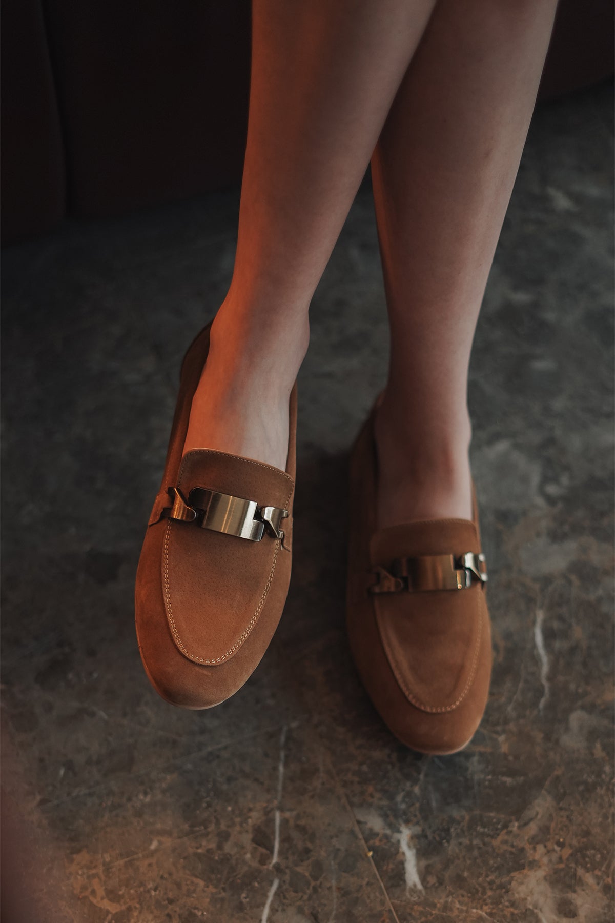 Kadın Loafer Tokalı Günlük Ayakkabı Forez - Taba Süet