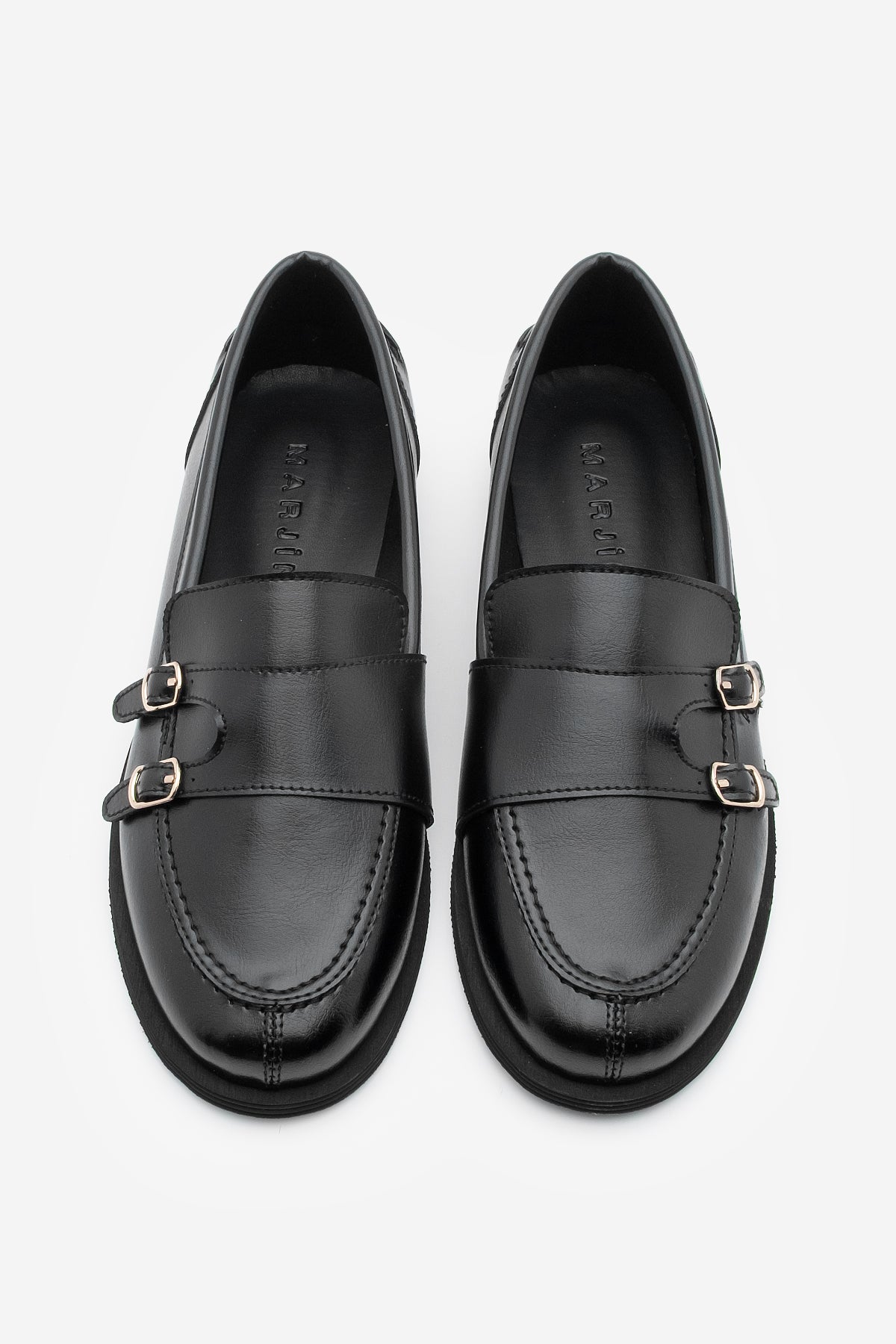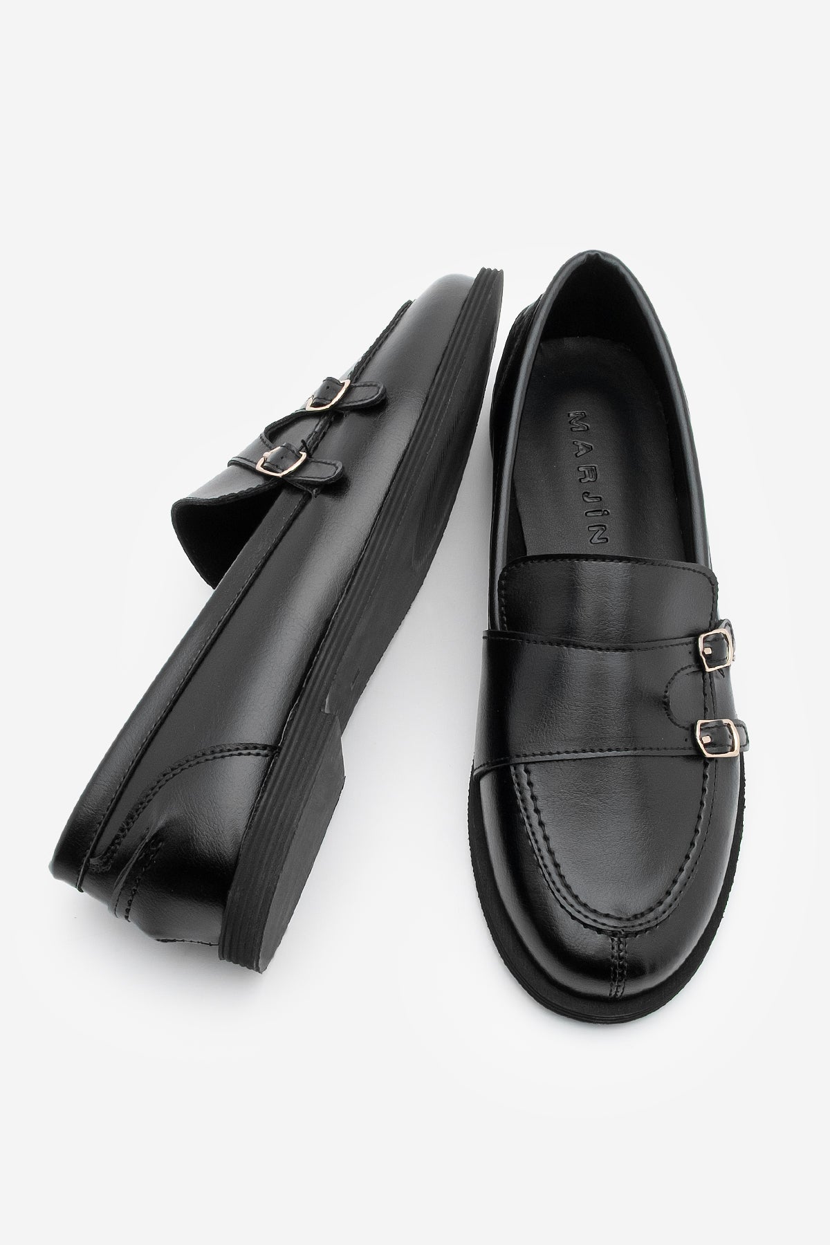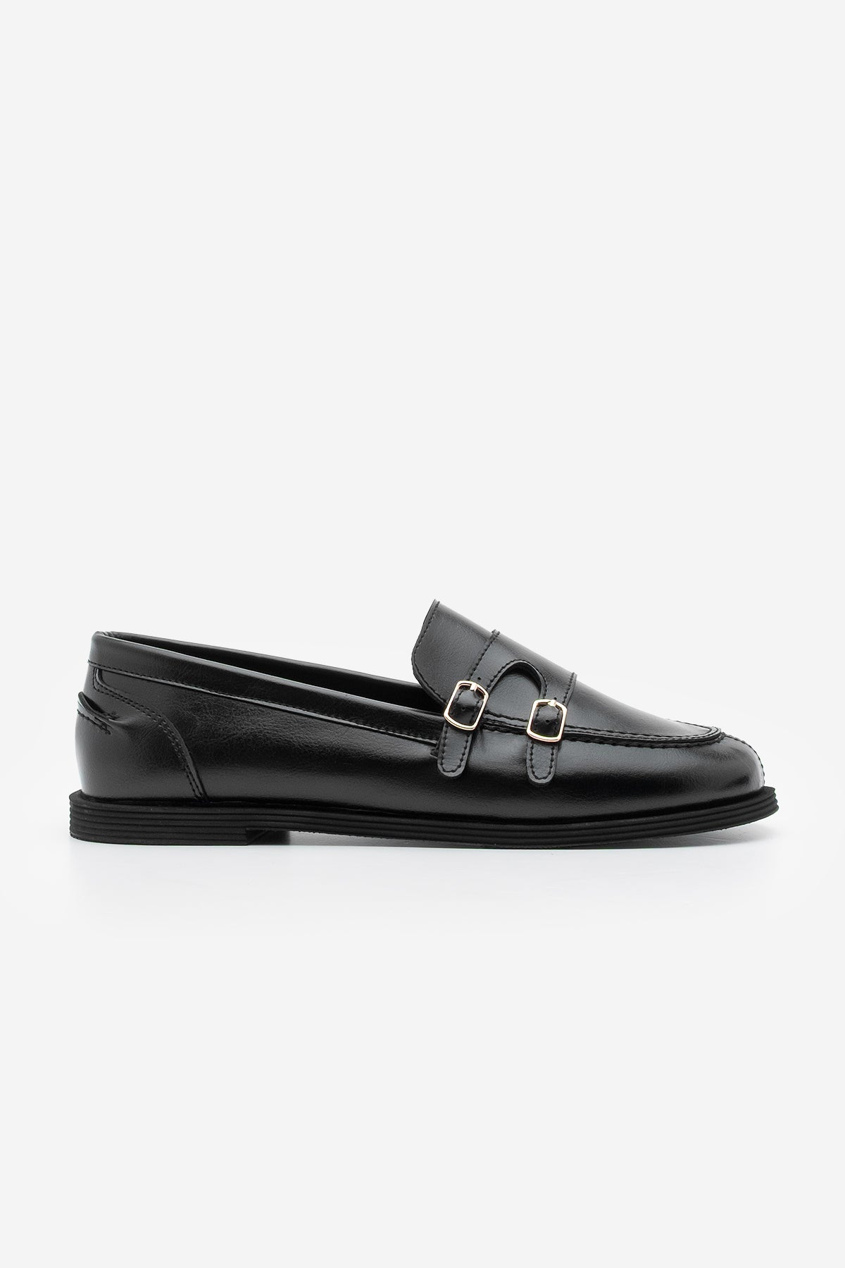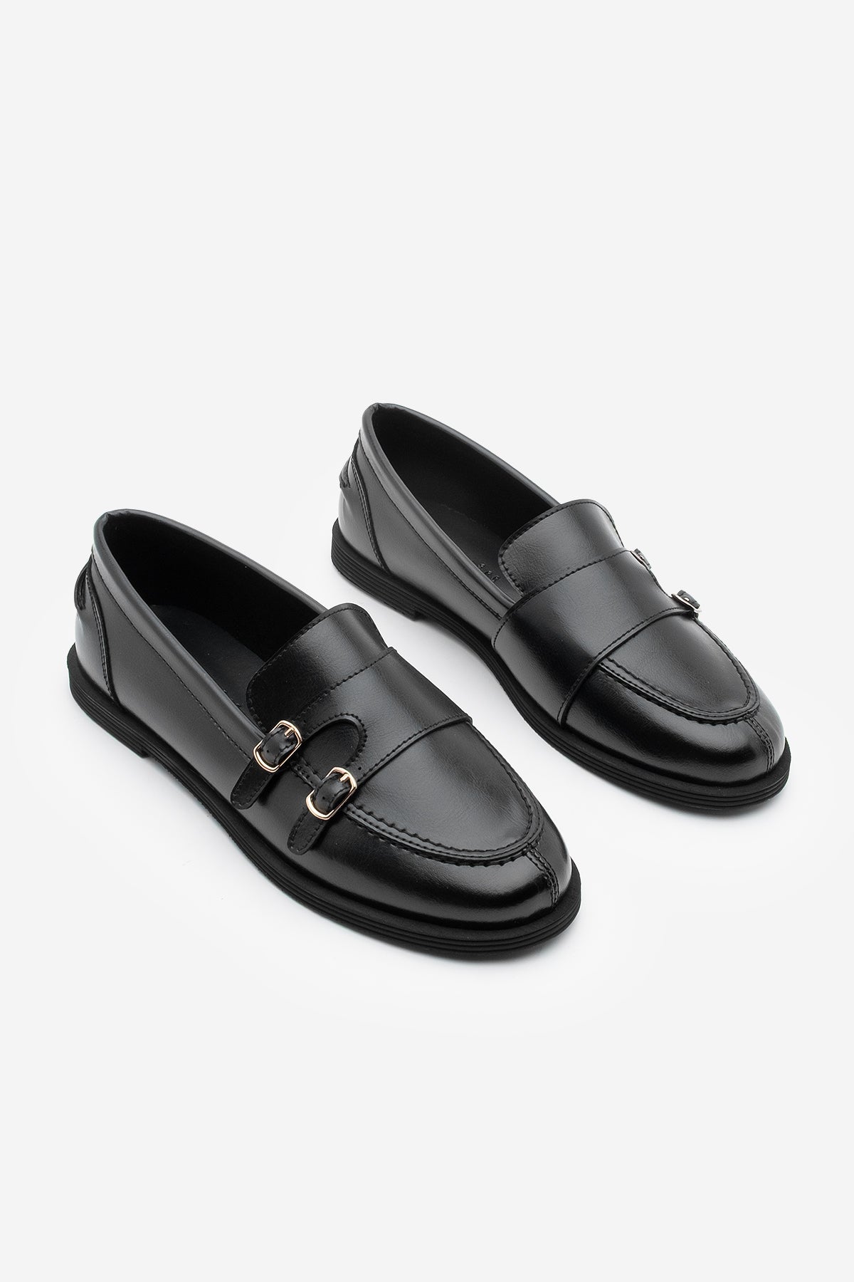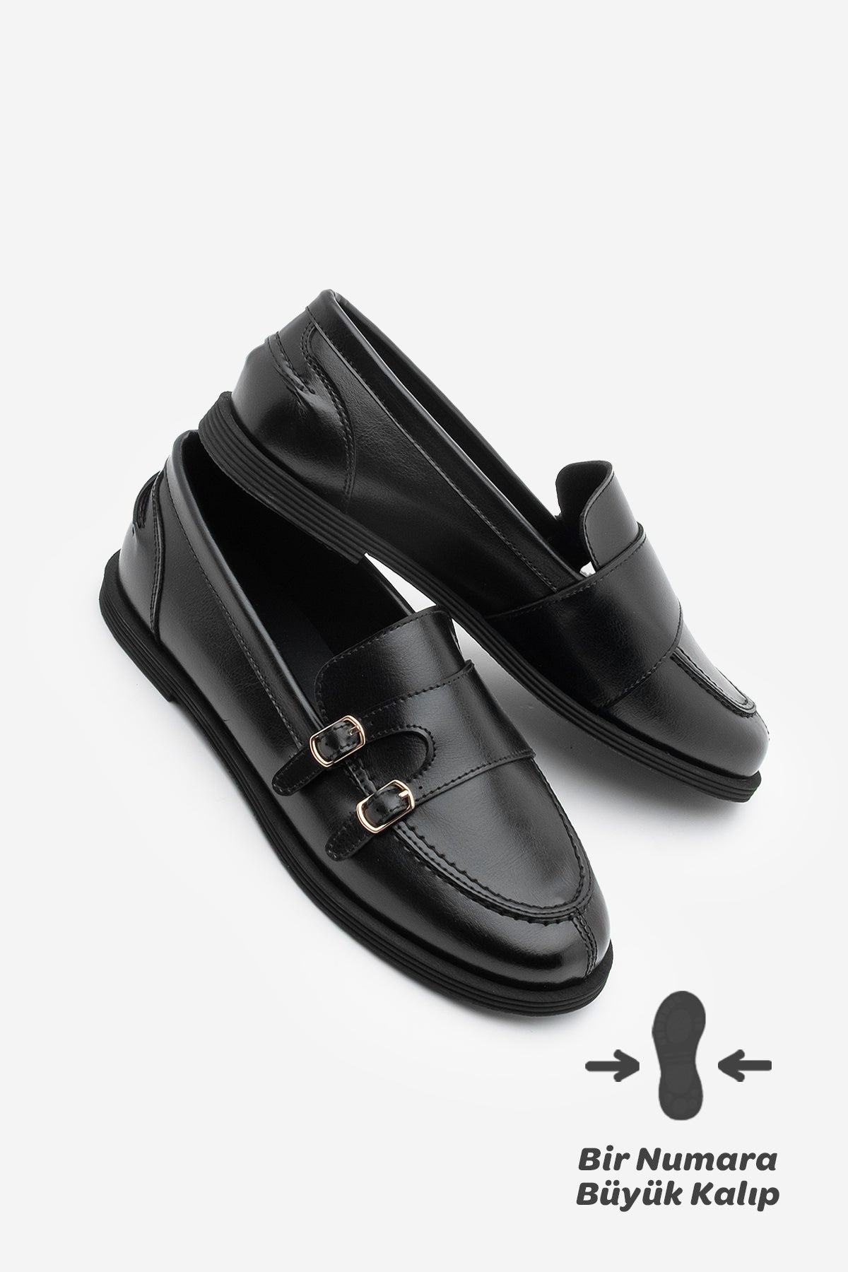 Kadın Loafer Tokalı Çift Bantlı Günlük Ayakkabı Ovora - Siyah