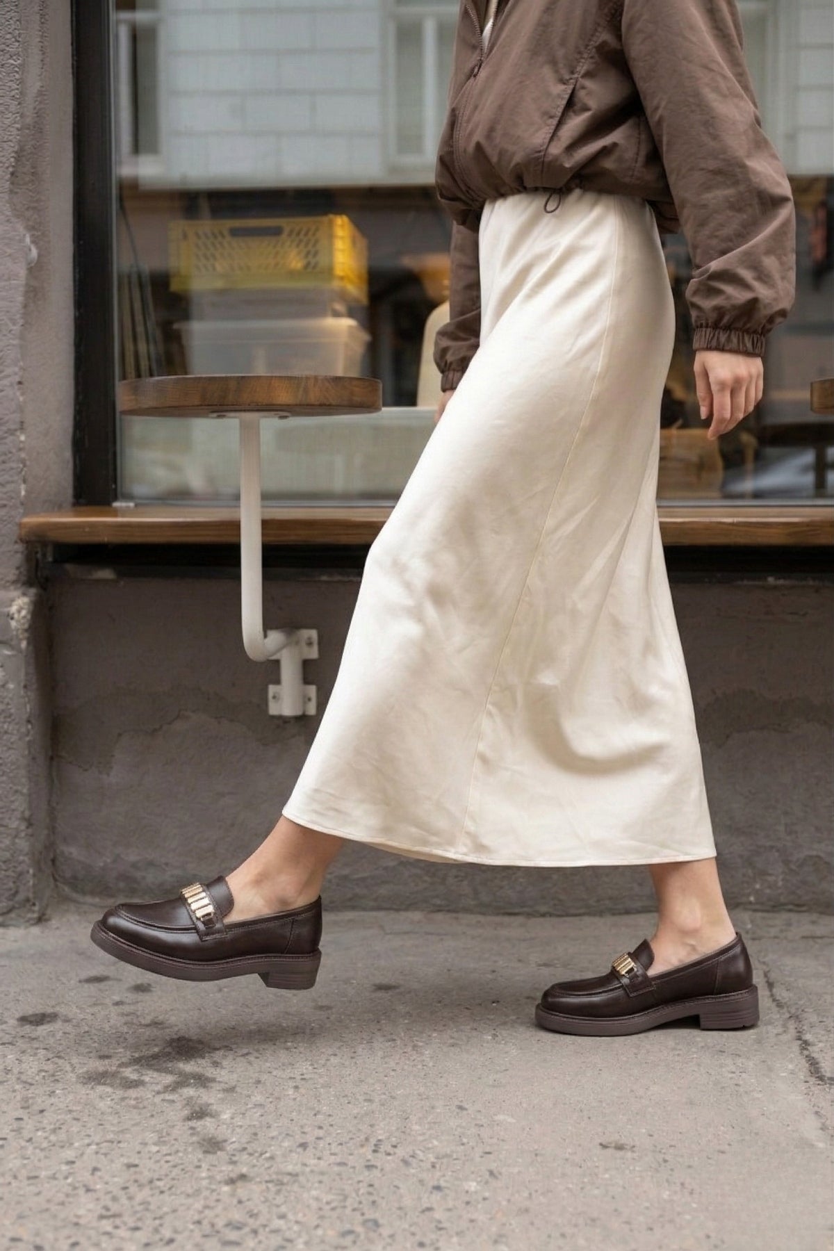 Kadın Loafer Tokalı Günlük Ayakkabı Vilyum - Kahve