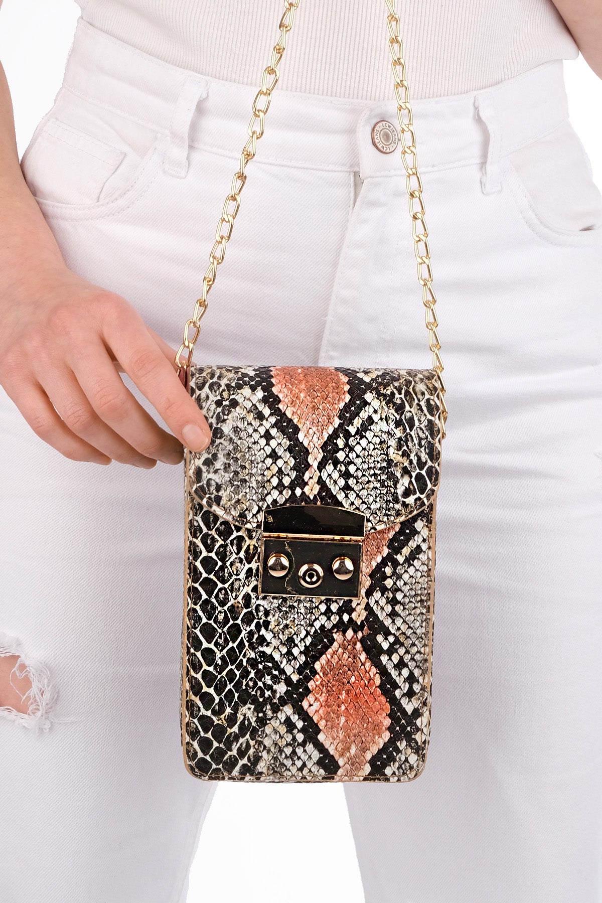Kadın Mini Postacı Çantası Renka - Taba Yılan