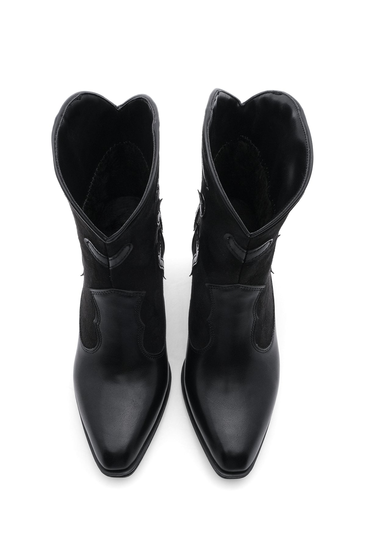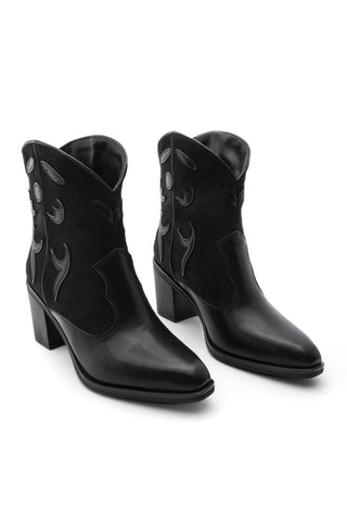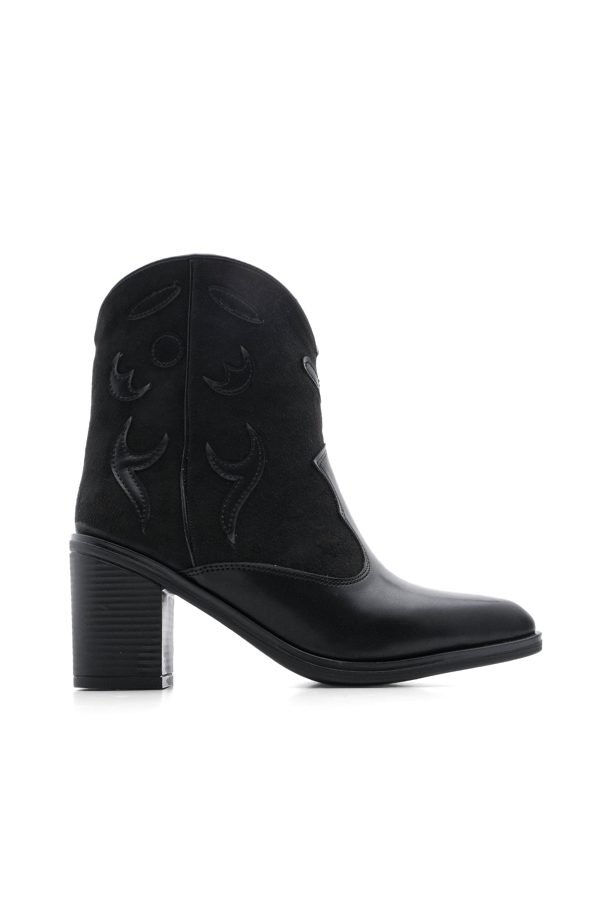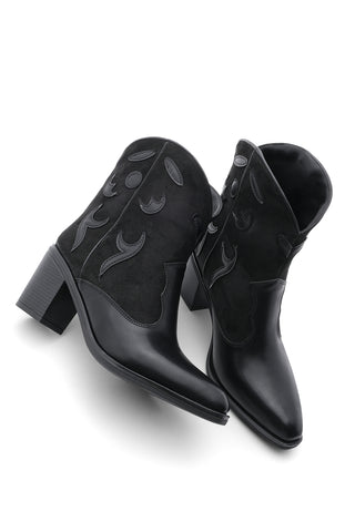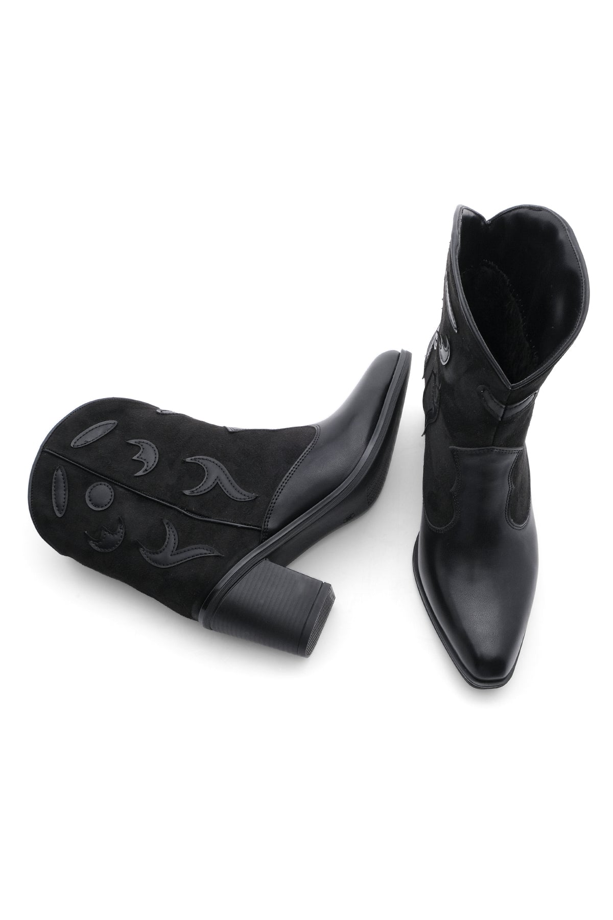 Kadın Nakışlı Süet Western Bot Movis - Siyah