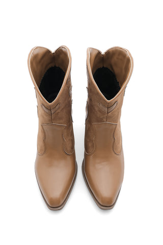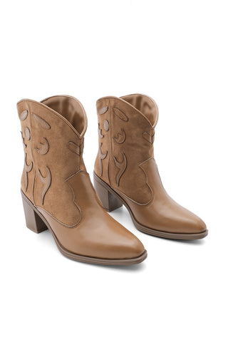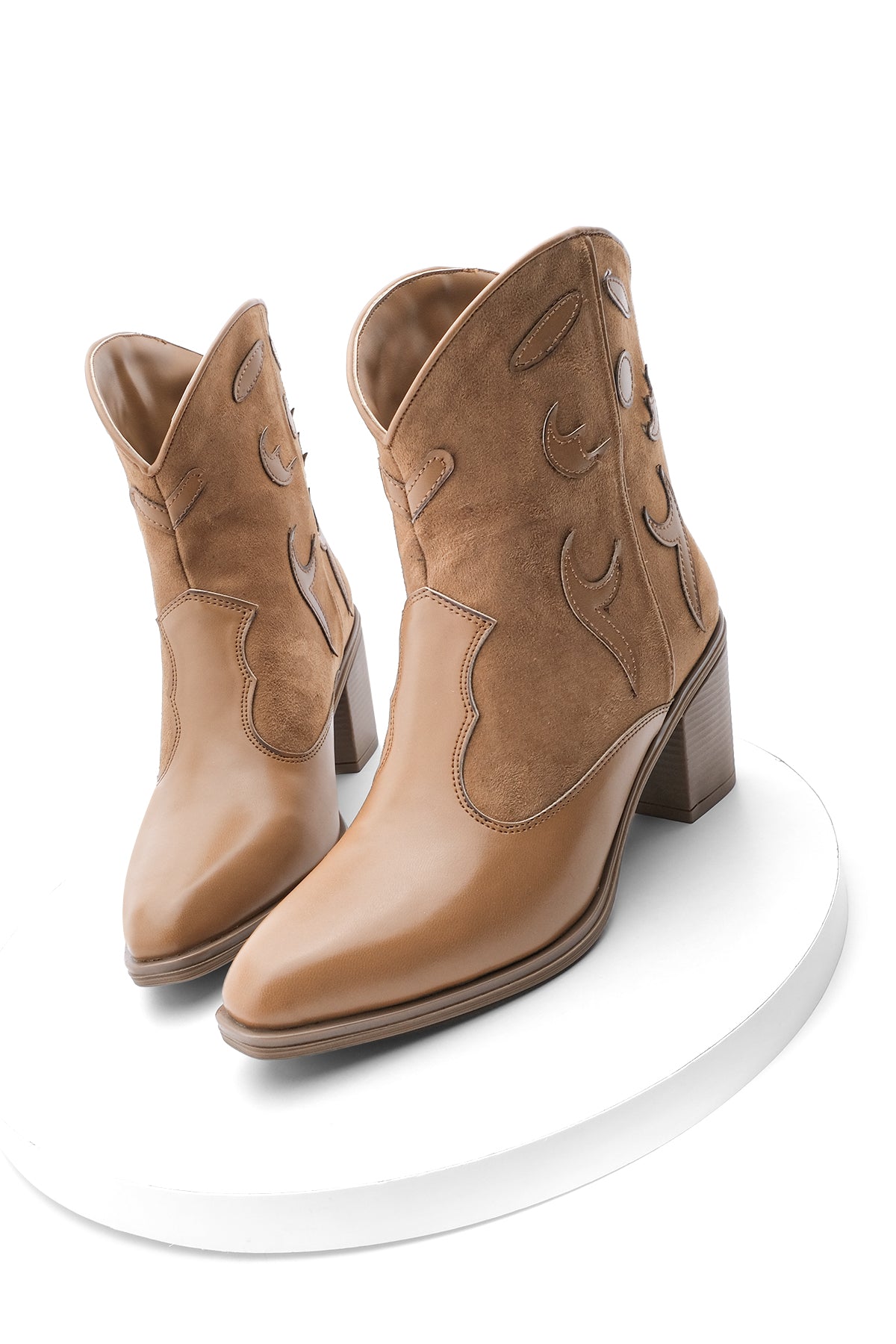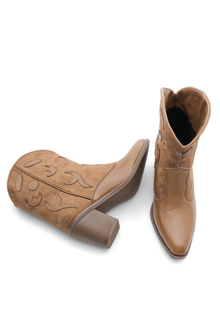 Kadın Nakışlı Süet Western Bot Movis - Taba