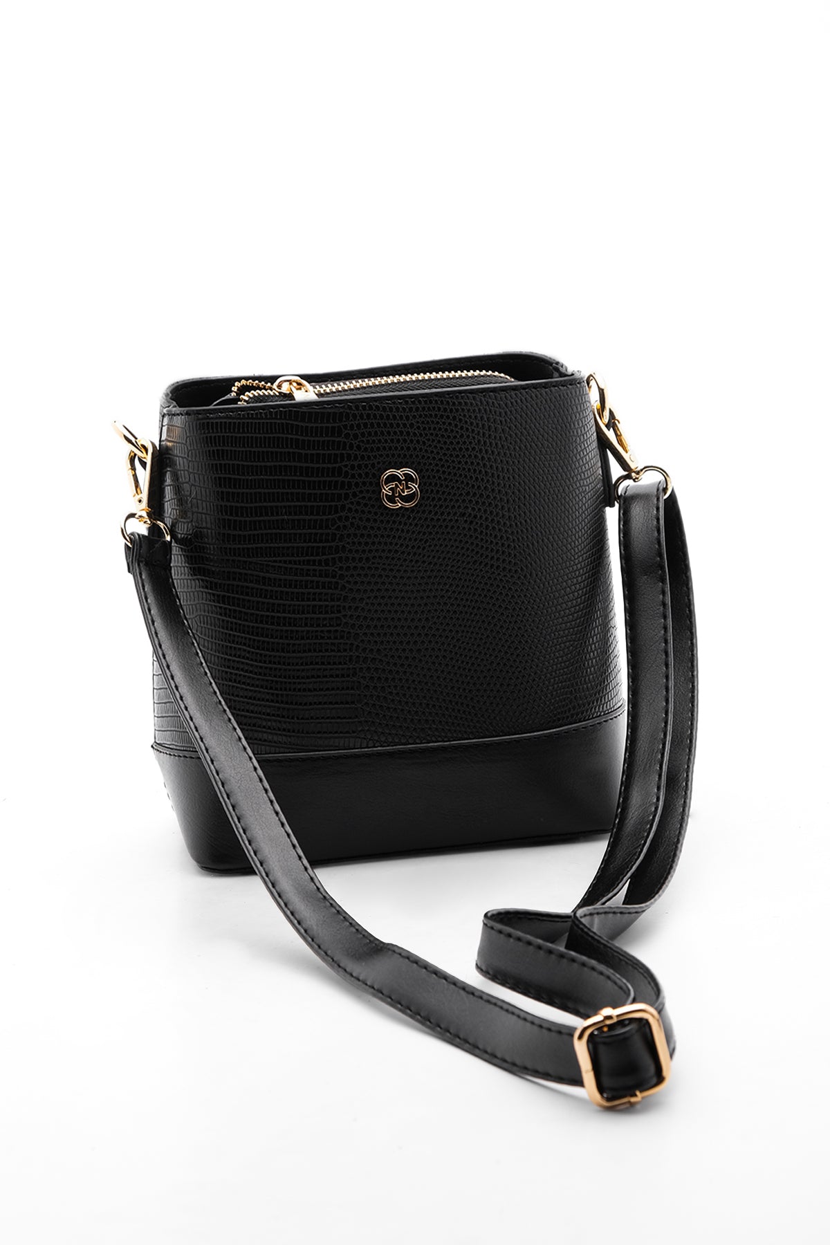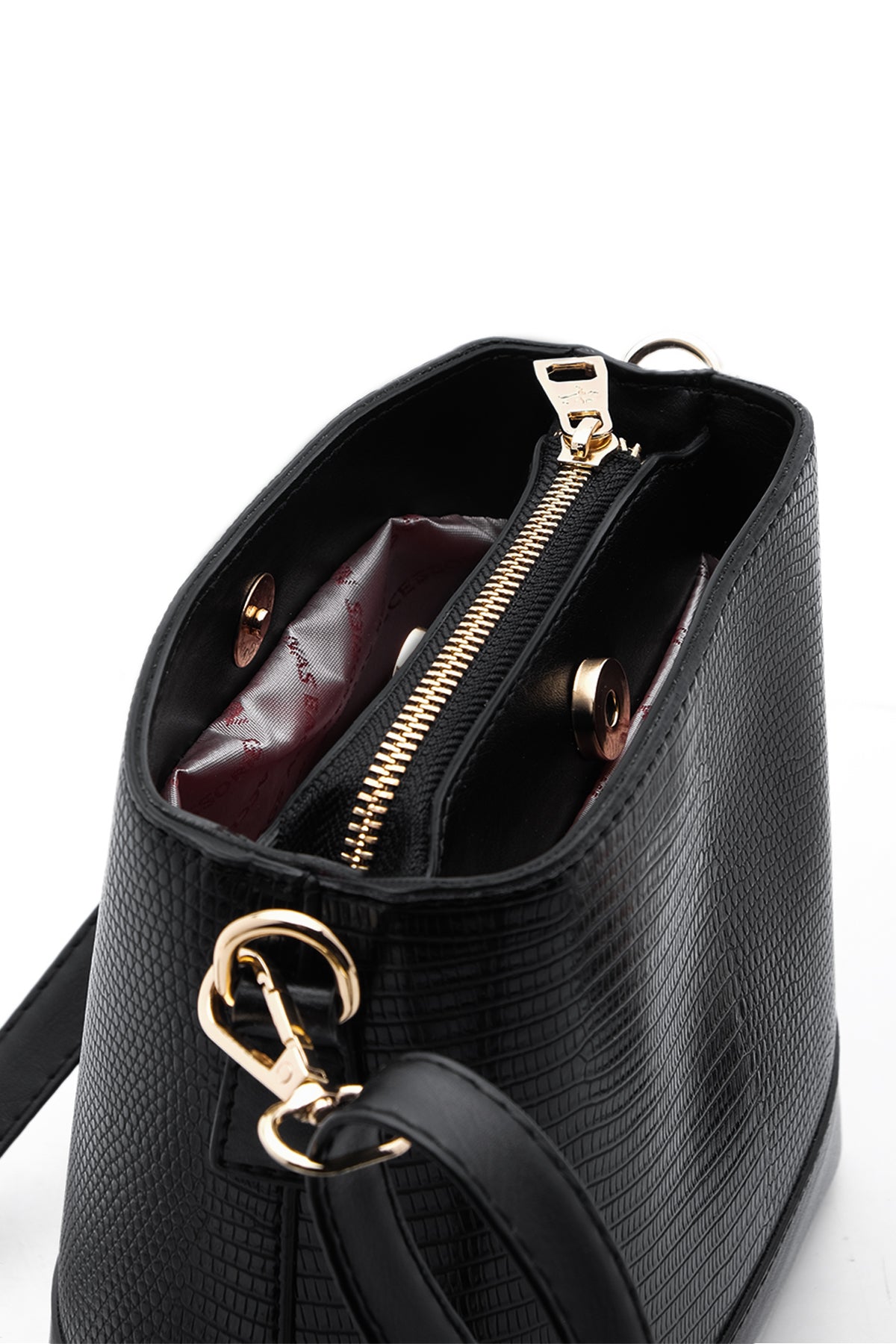 Kadın Omuz Çantası Orta Boy Fustel - Siyah Yılan