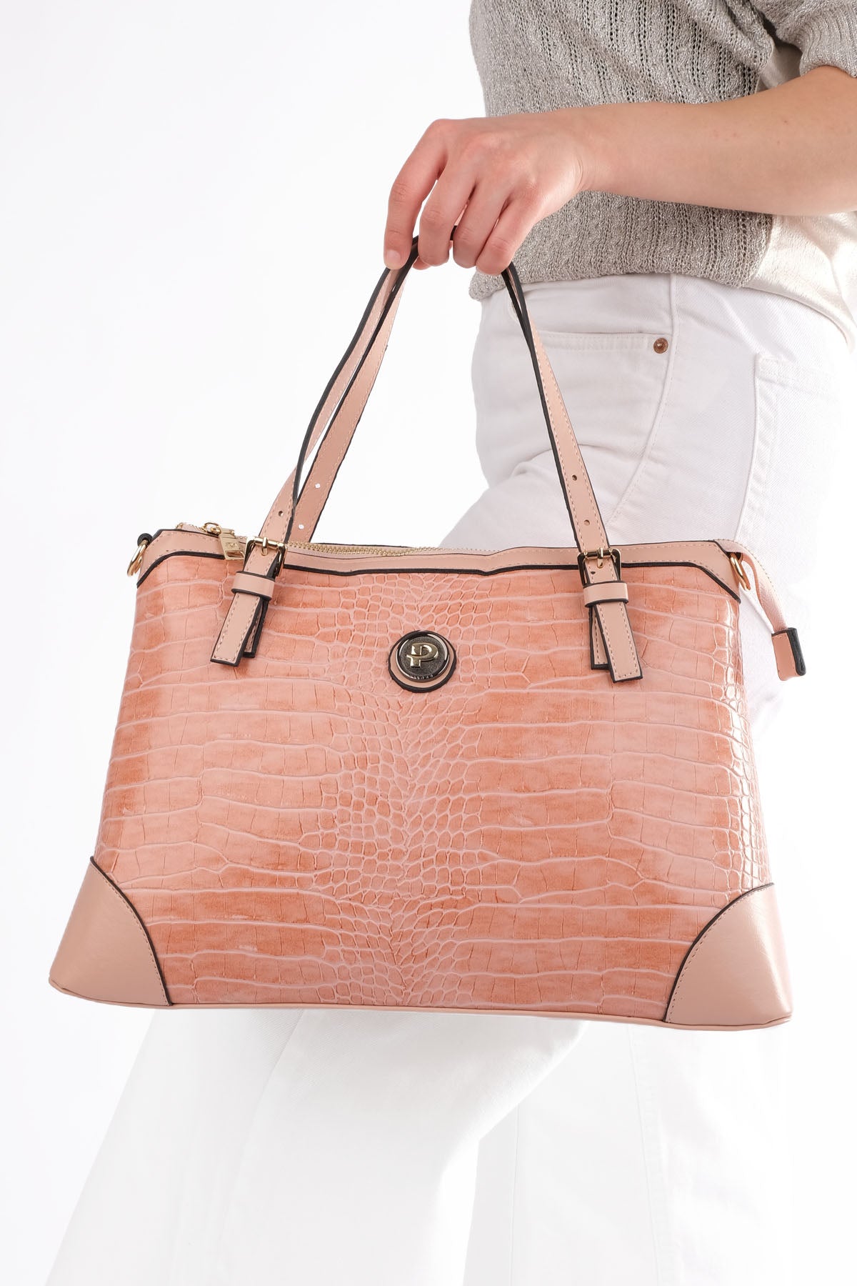 Kadın Omuz Çantası Tabel - Pudra Croco