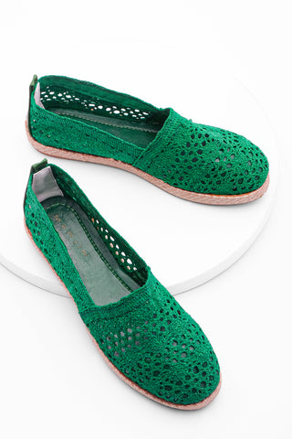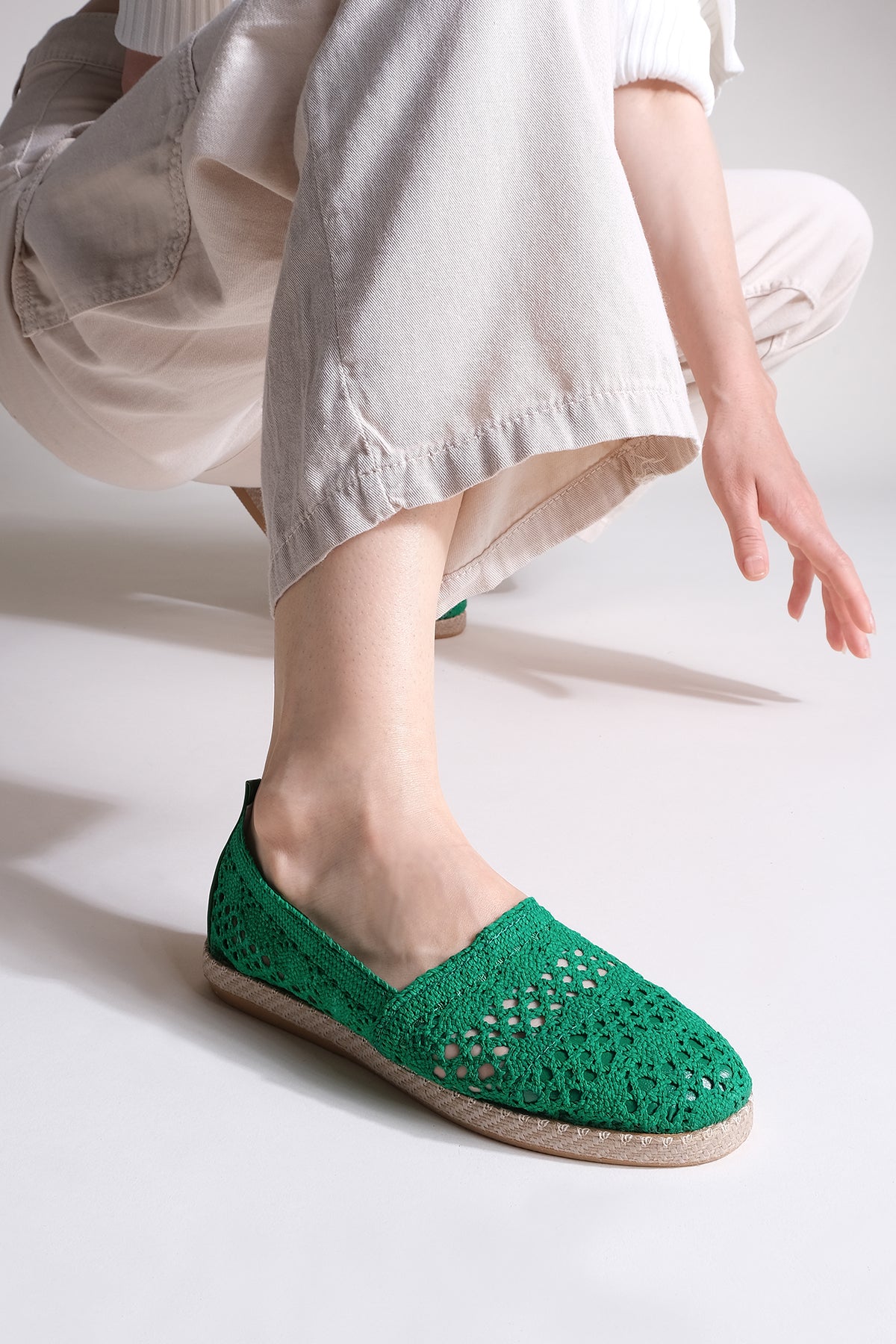 Kadın Örgülü Dantelli Espadril Erlin - Yeşil