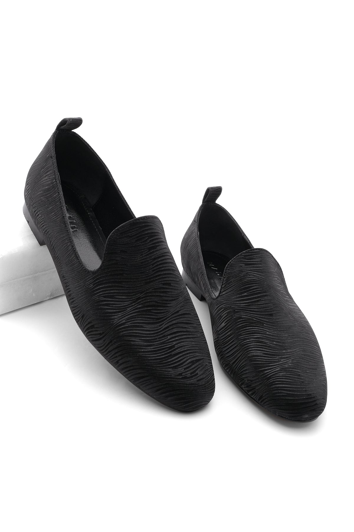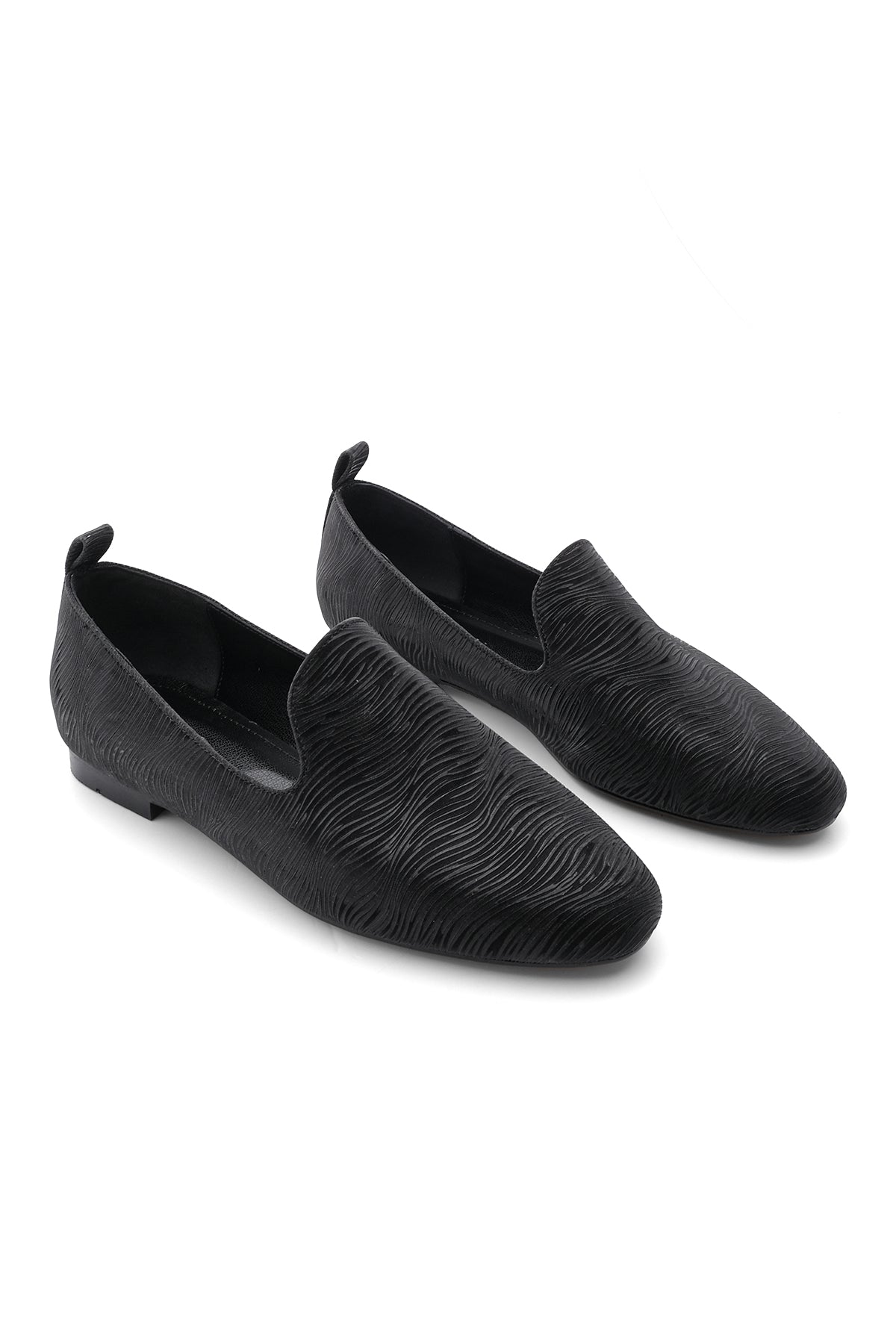 Kadın Oval Burun Desenli Babet Metvay - Siyah