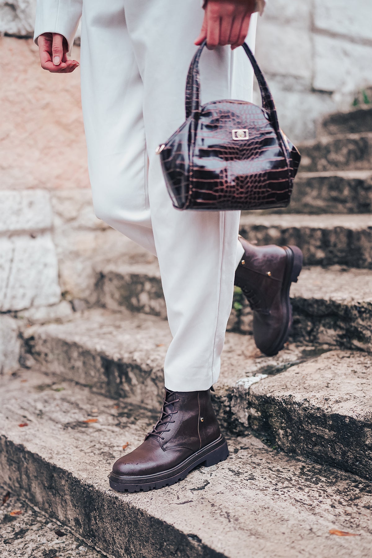Marjin Kadın Kalın Taban Postal Bot Likesta: Zımba detayları ve kalın tabanıyla Likesta posta bot, modern ve şık bir görünüm sunar. Arkadan fermuarlı ve bağcıklı yapısıyla pratik bir kullanım sağlar. Siyah ve kahve renk seçenekleriyle her kombine uyum sağlayan bu bot, rahat tabanıyla gün boyu konfor ve trend bir stil arayan kadınlar için tasarlandı.