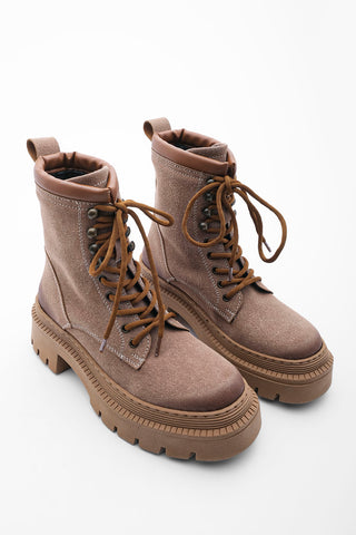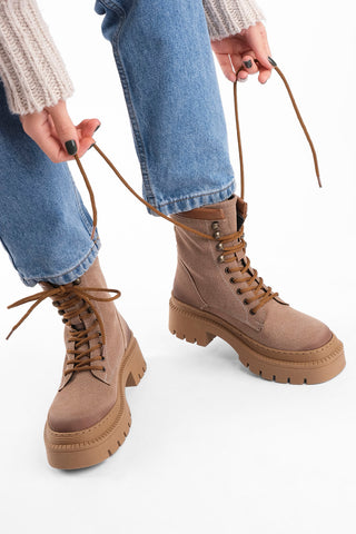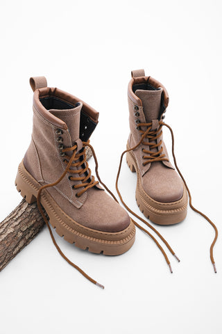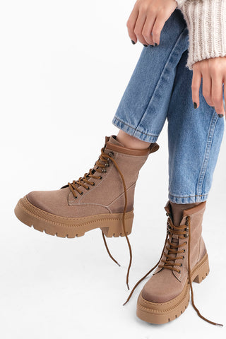 Kadın Postal Bot Kalın Taban Zevina - Bej Süet