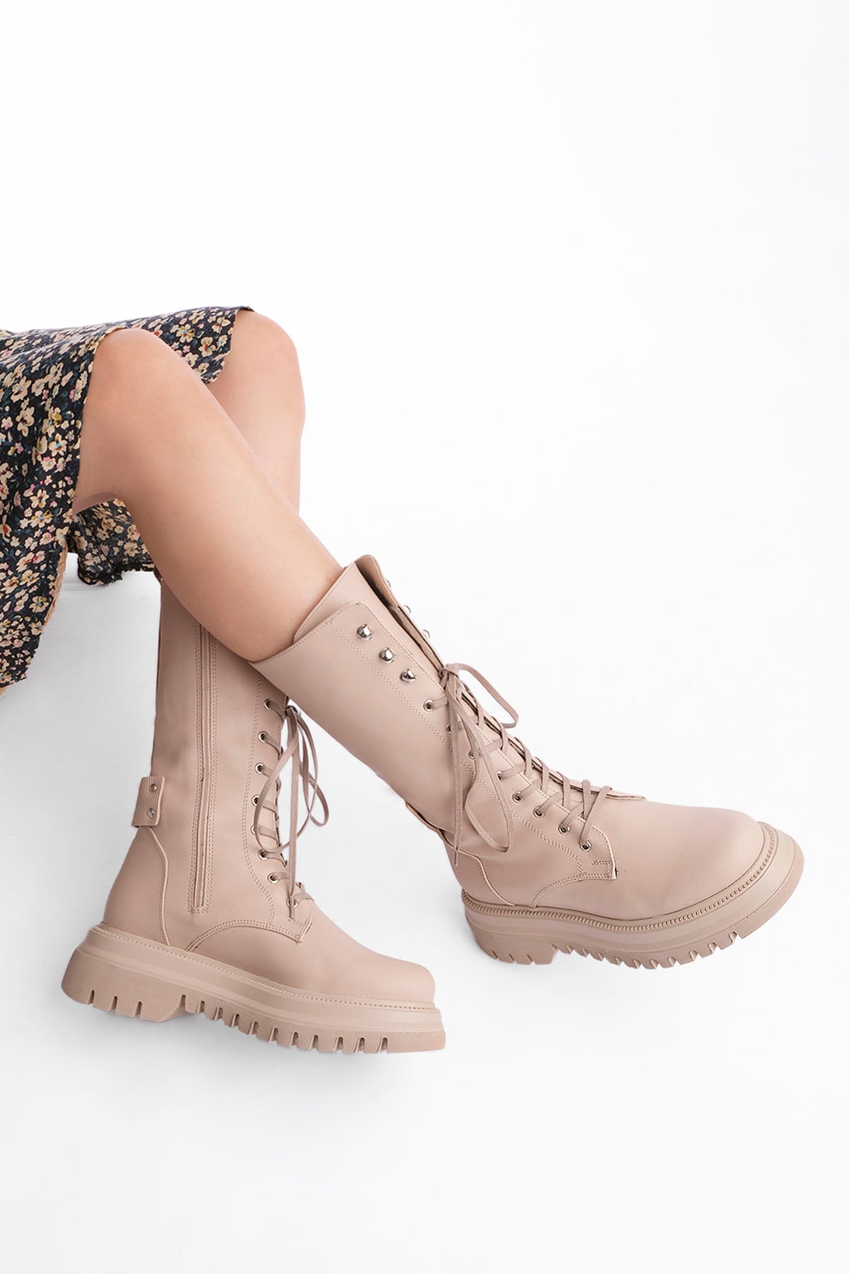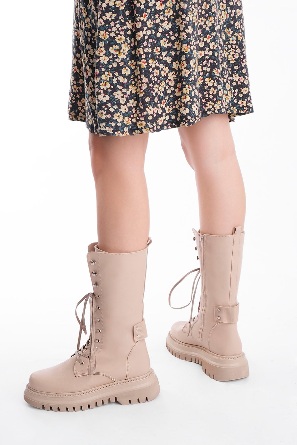Kadın Kalın Taban Günlük Çizme Boren - Siyah