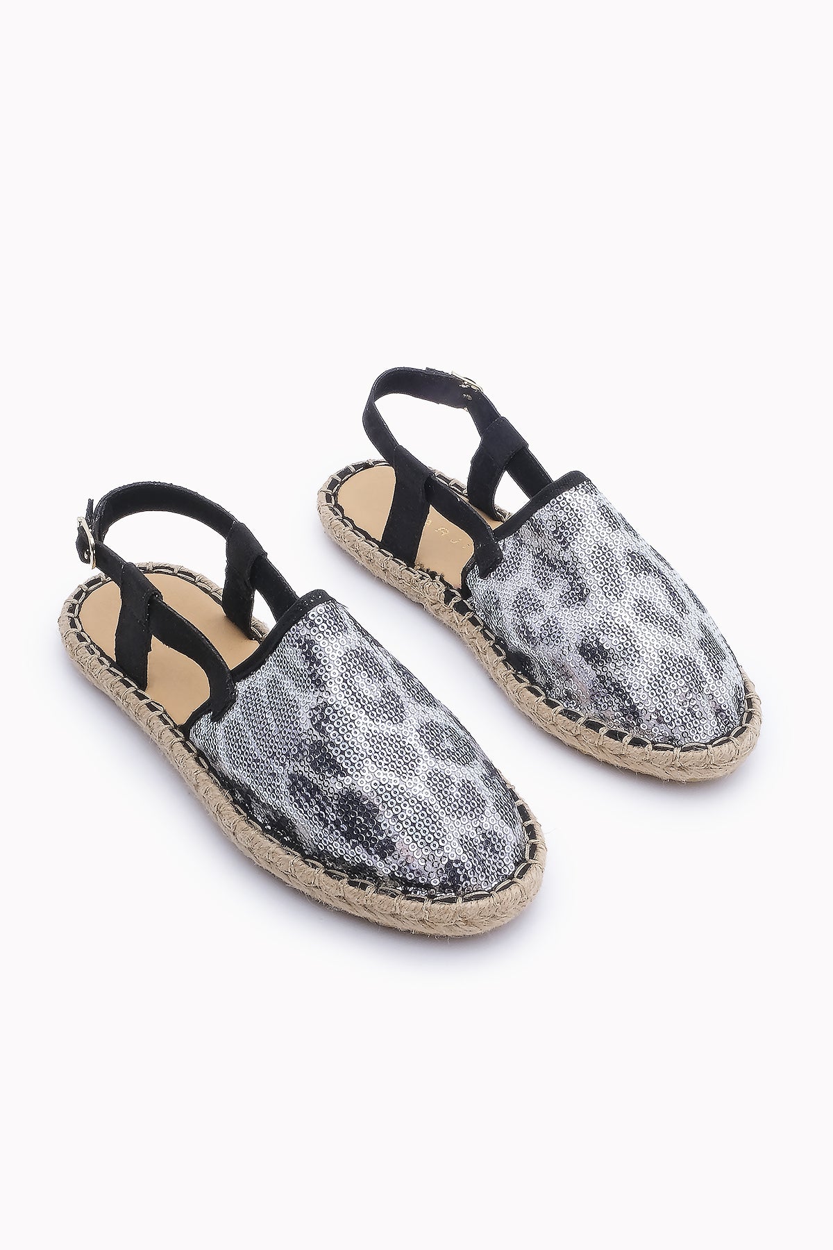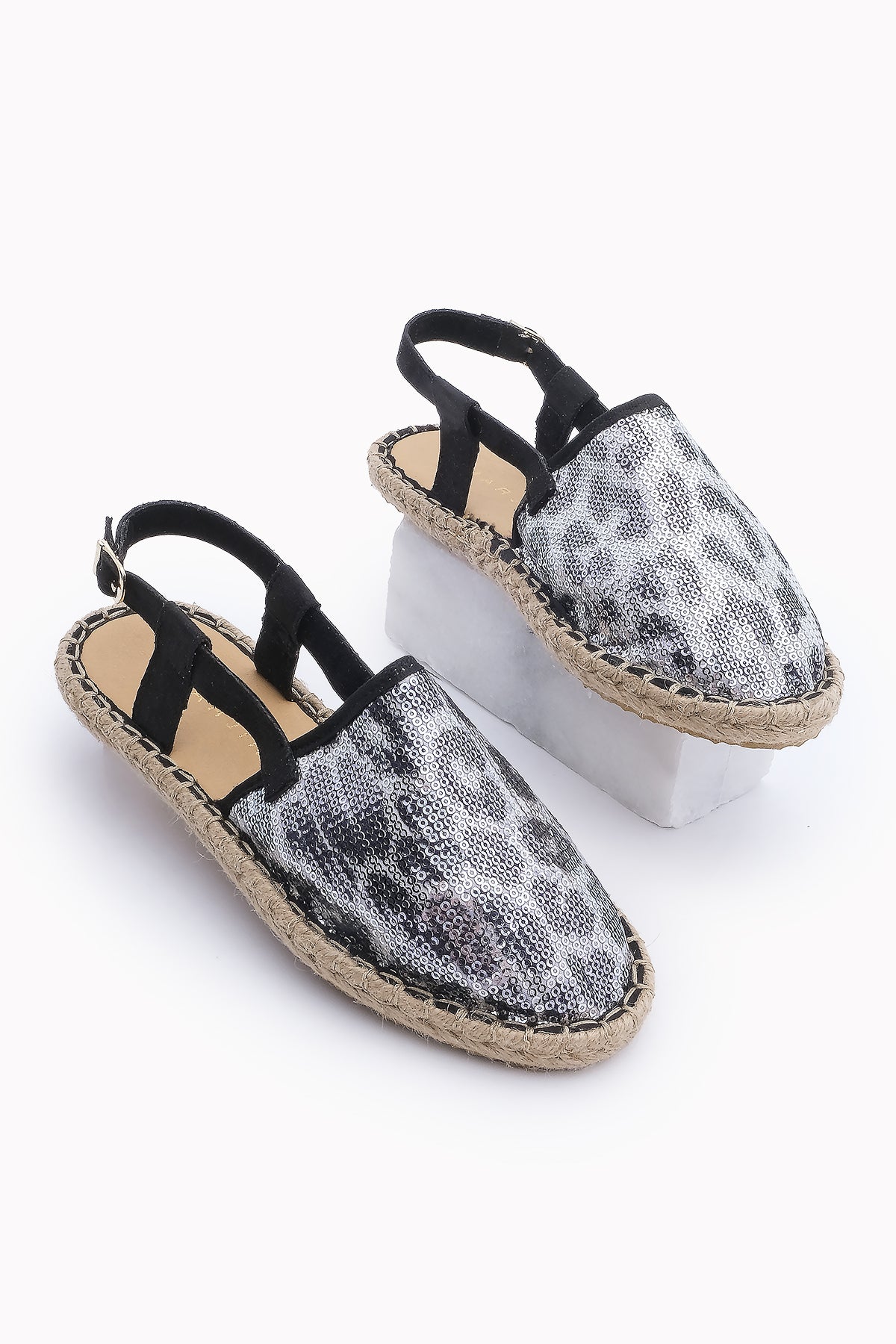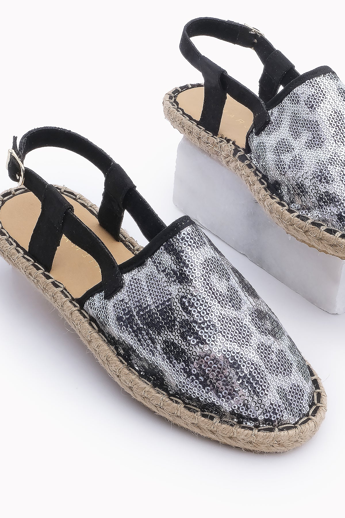Kadın Pullu Leopar Günlük Jüt Espadril Sandalet Dolva - Gümüş